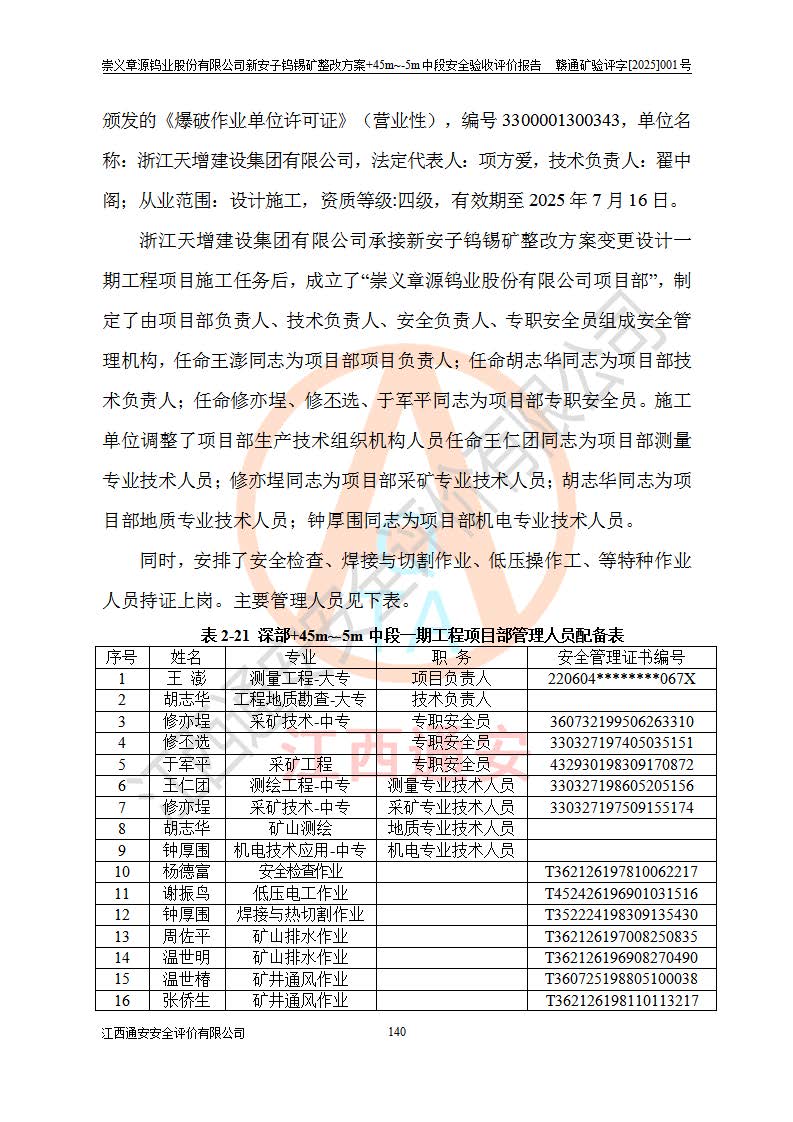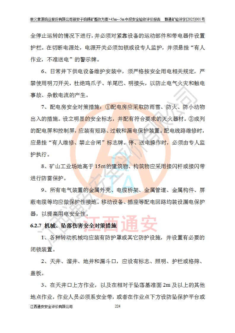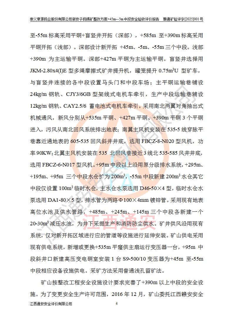 项目名称 | 崇义章源钨业股份有限公司新安子钨锡矿地下开采整改方案深部+45m~-5m中段(一期)安全验收评价报告 | ||||