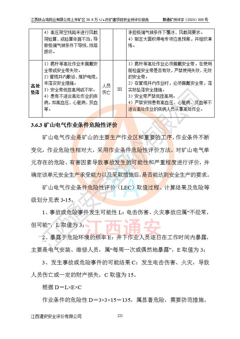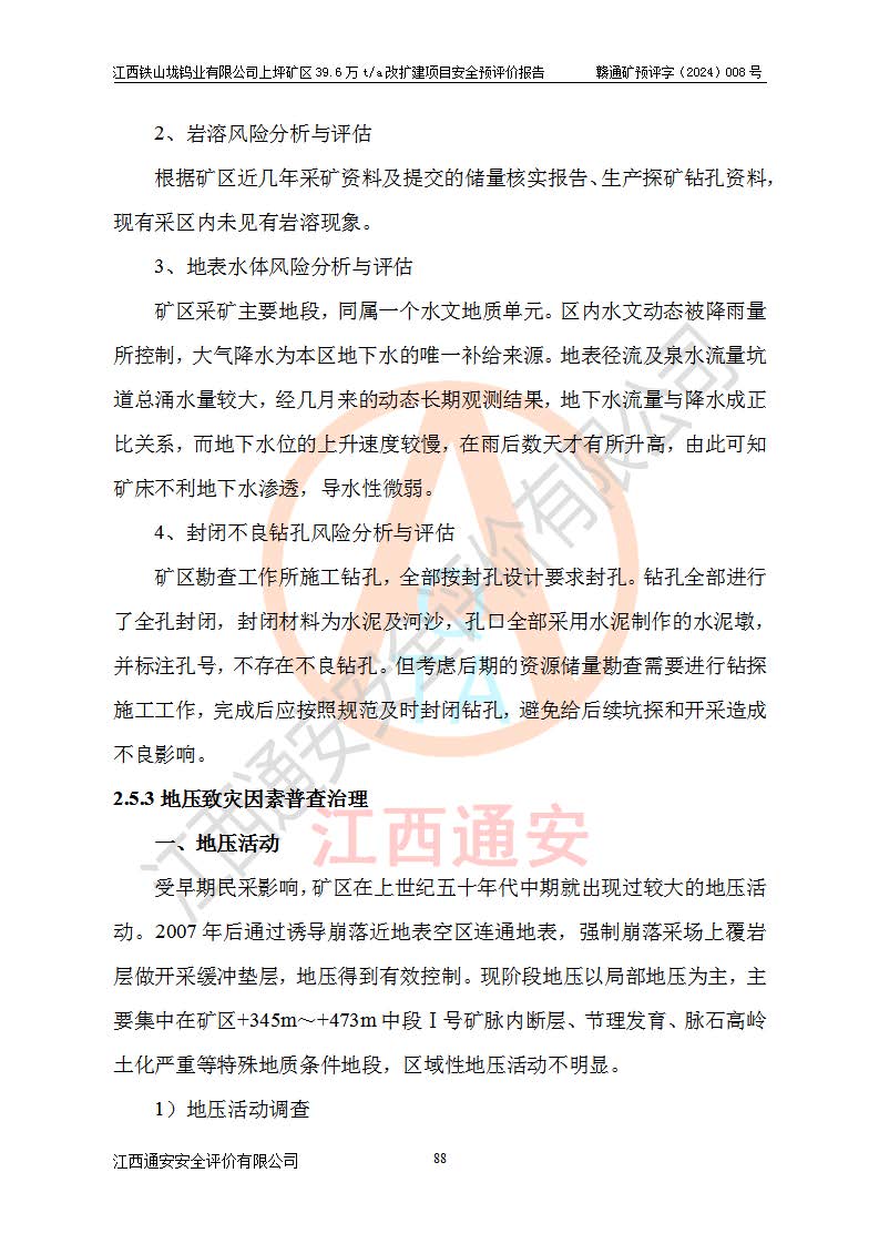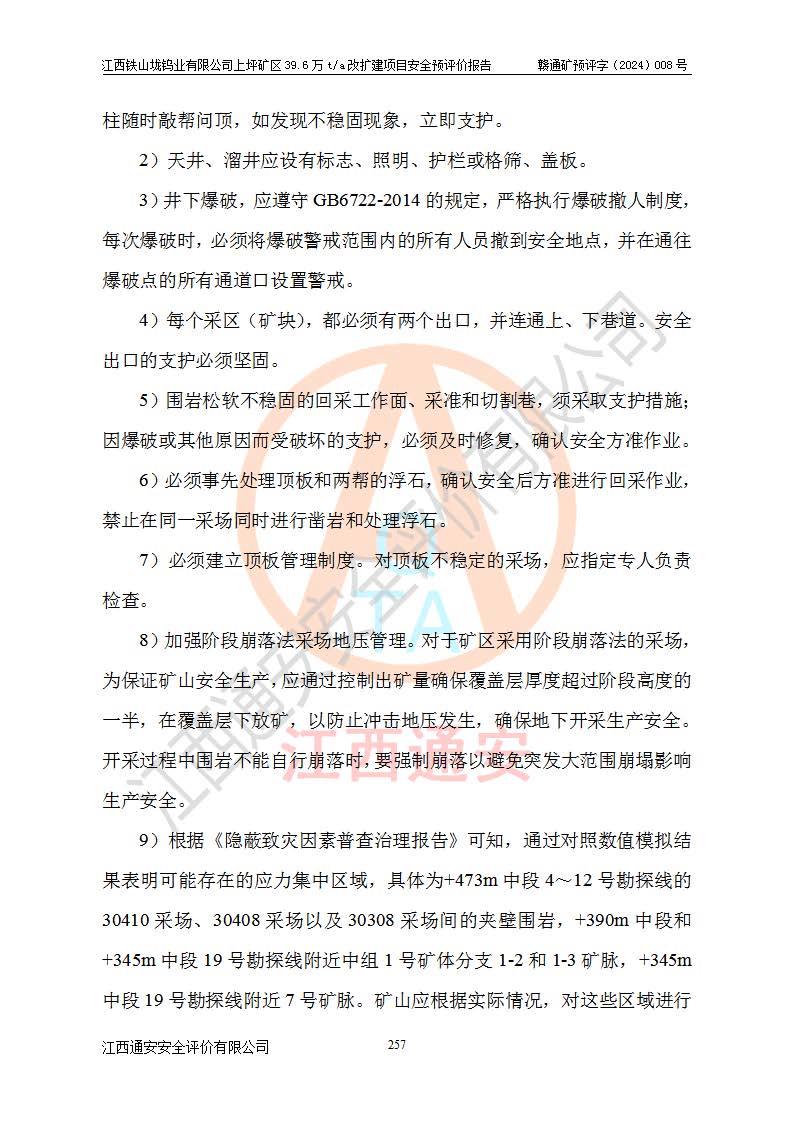 项目名称 | 江西铁山垅钨业有限公司上坪矿区39.6万t/a改扩建项目安全预评价报告 | ||||
