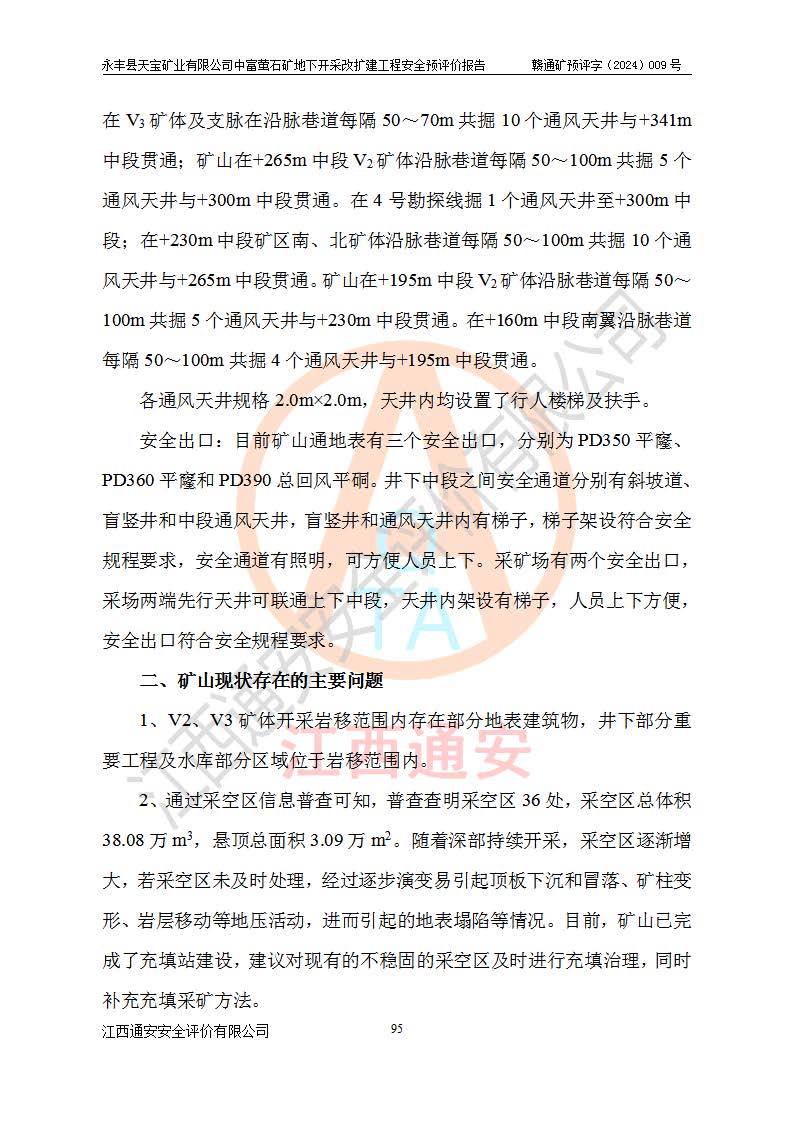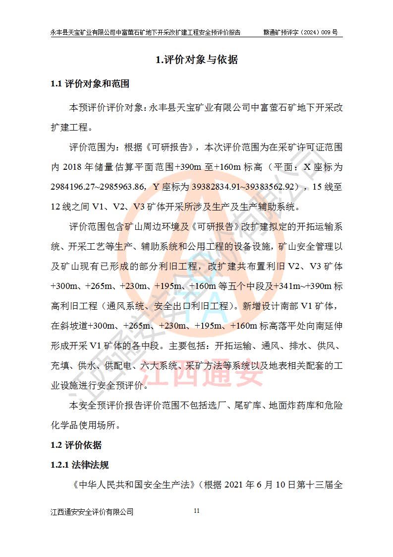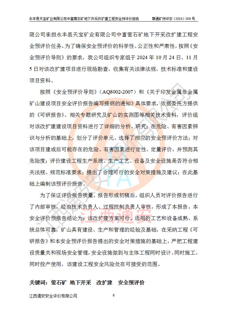 项目名称 | 永丰县天宝矿业有限公司中富萤石矿地下开采改扩建工程安全预评价报告 | ||||