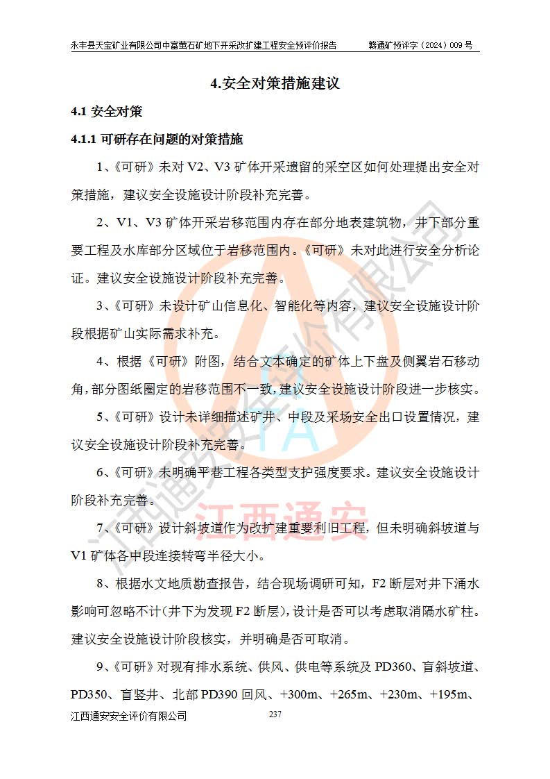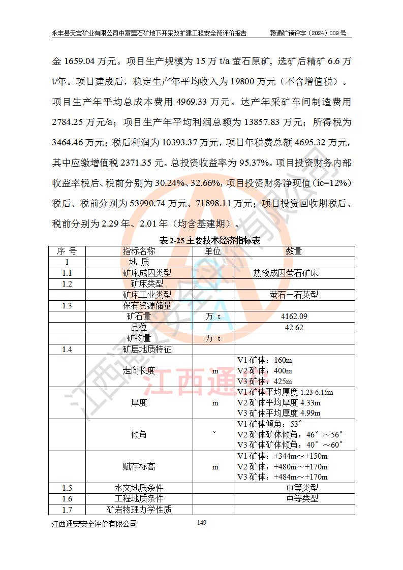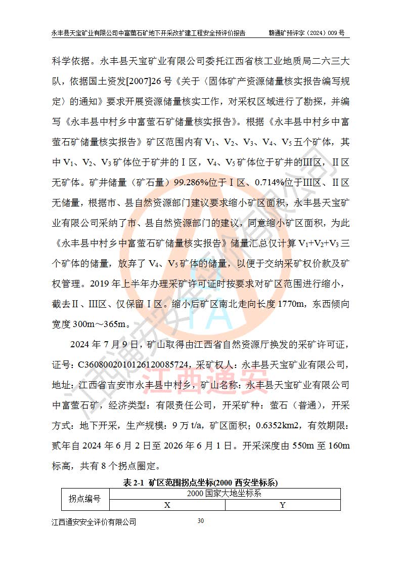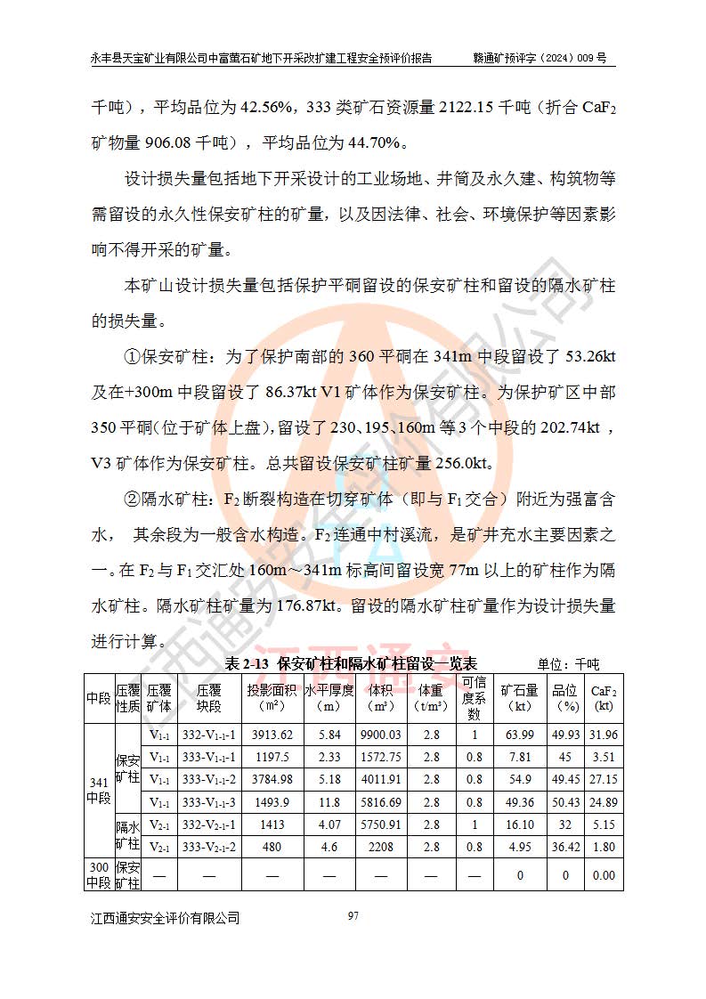 项目名称 | 永丰县天宝矿业有限公司中富萤石矿地下开采改扩建工程安全预评价报告 | ||||