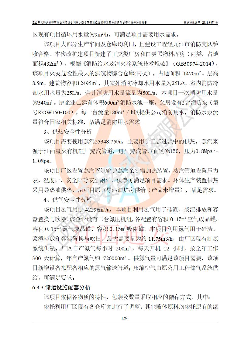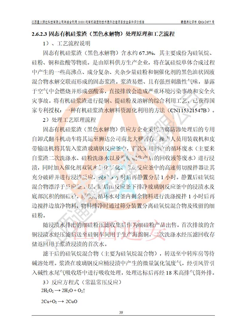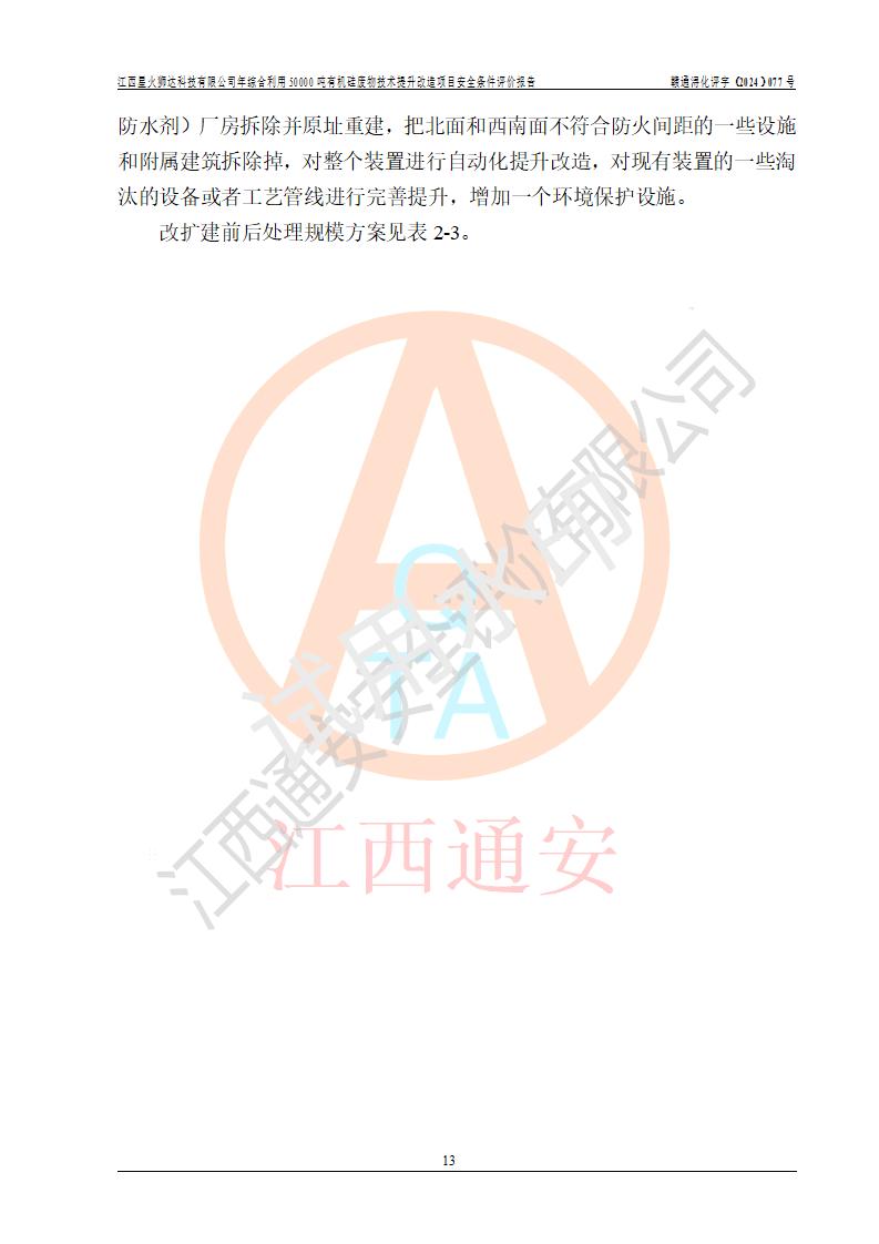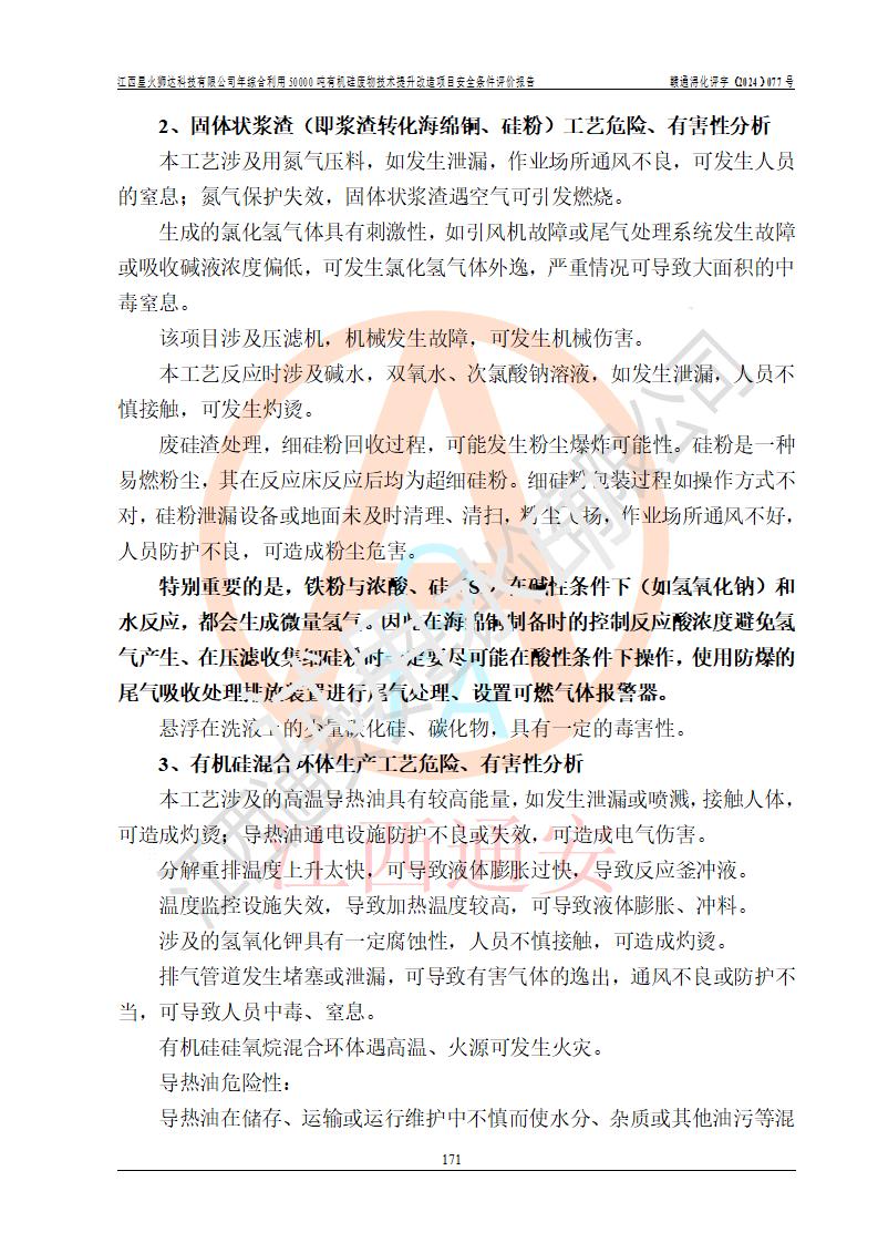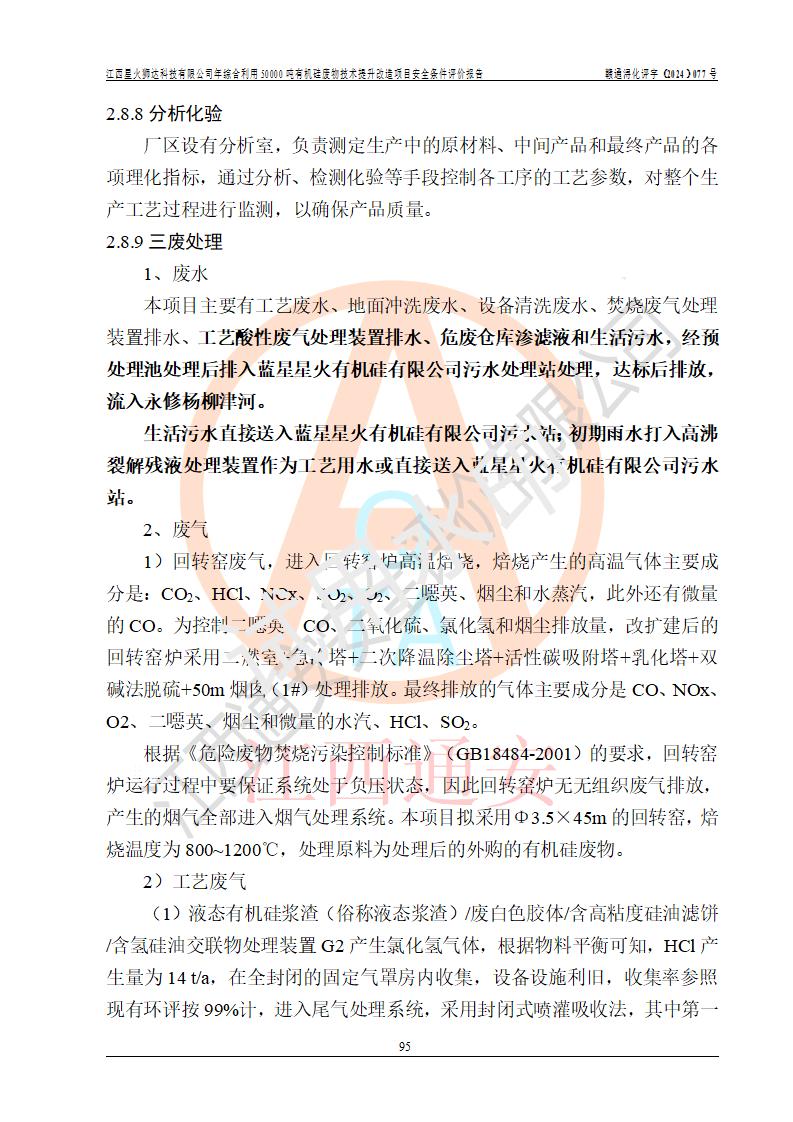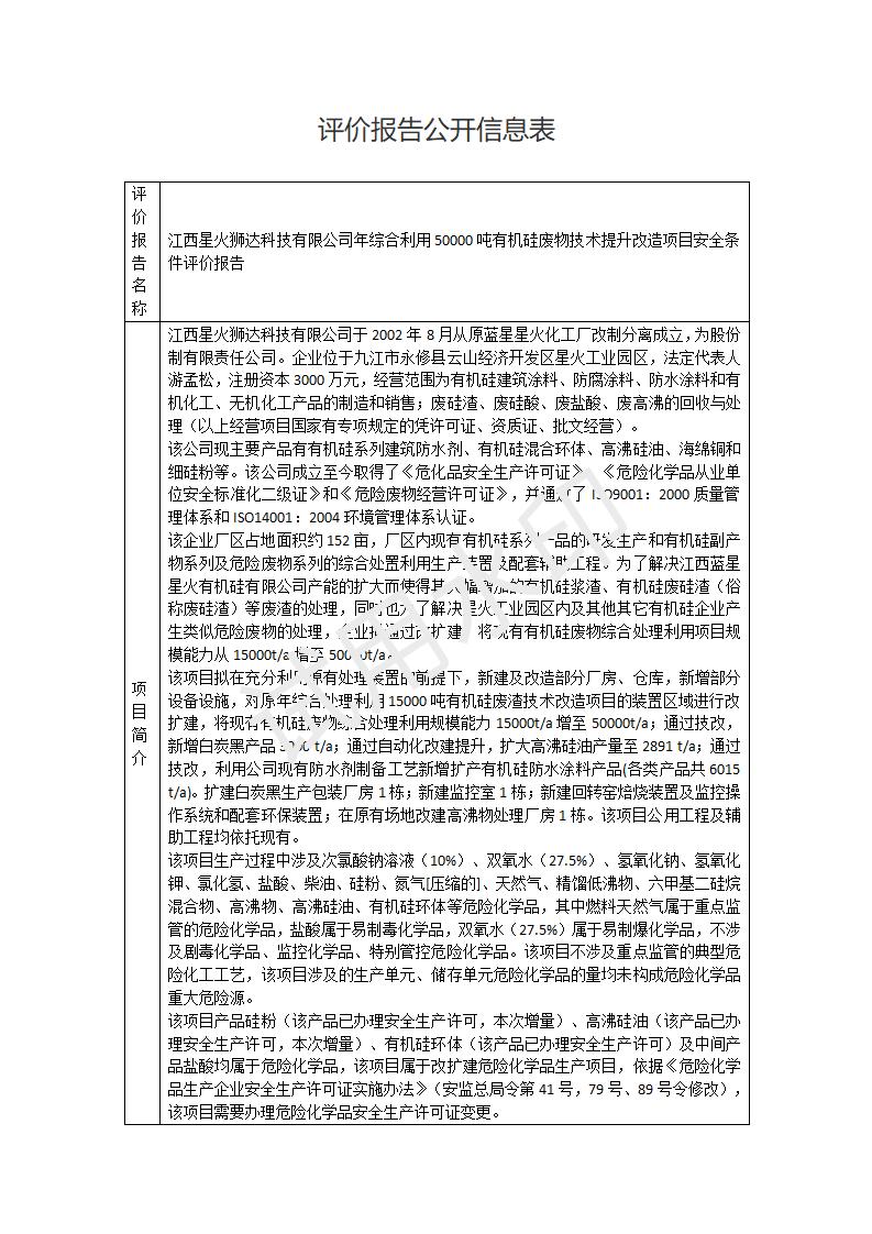 江西星火狮达科技有限公司年综合利用50000吨有机硅废物技术提升改造项目安全条件评价报告