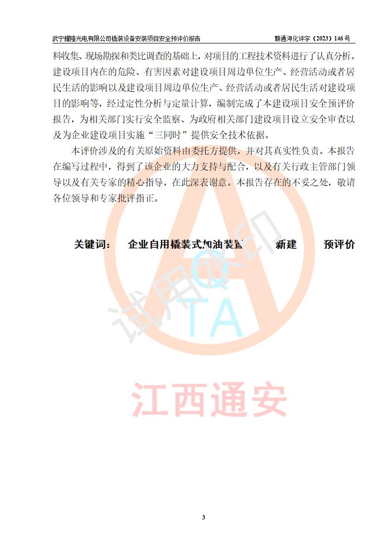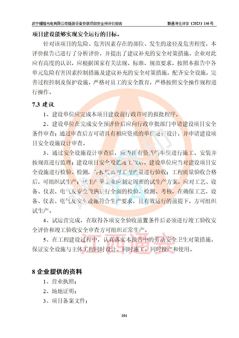 评价报告名称 | 武宁耀隆光电有限公司橇装设备安装项目项目安全预评价报告 | |||