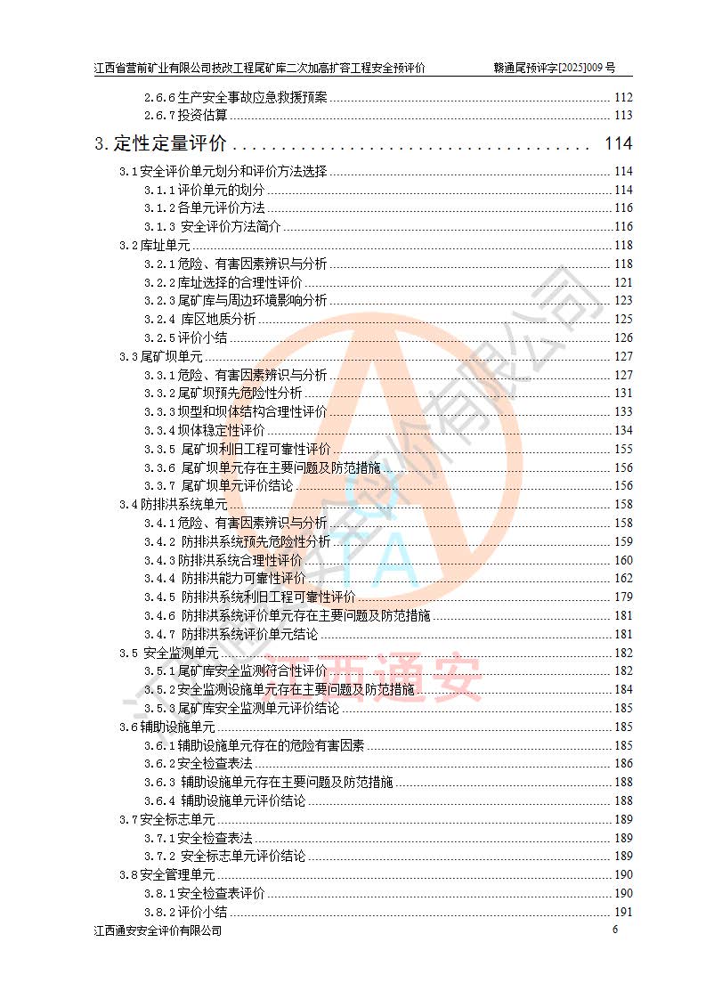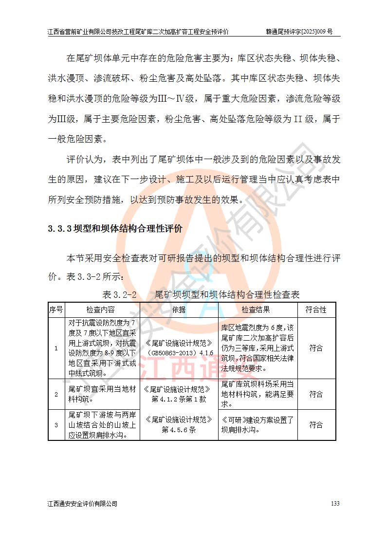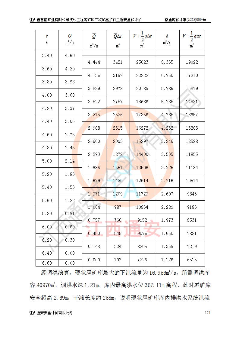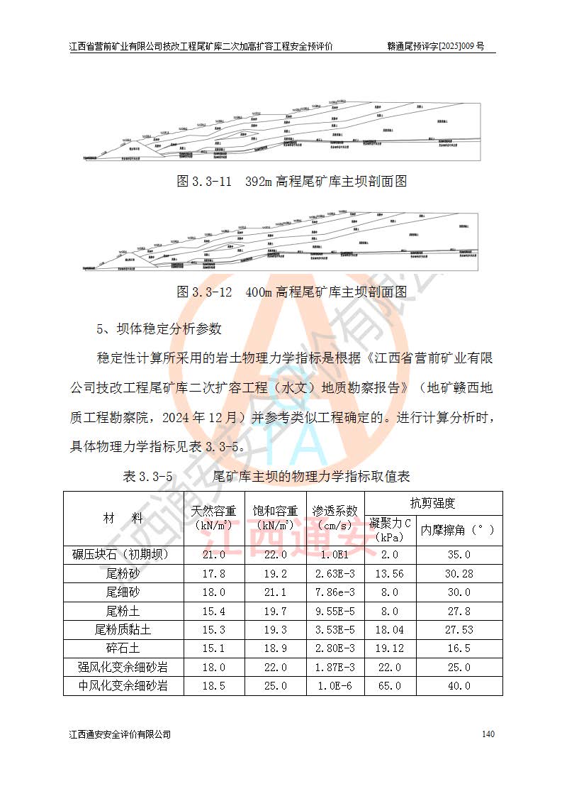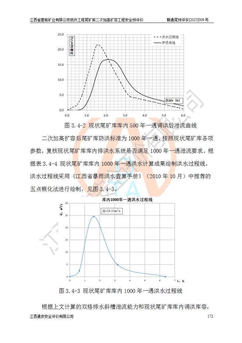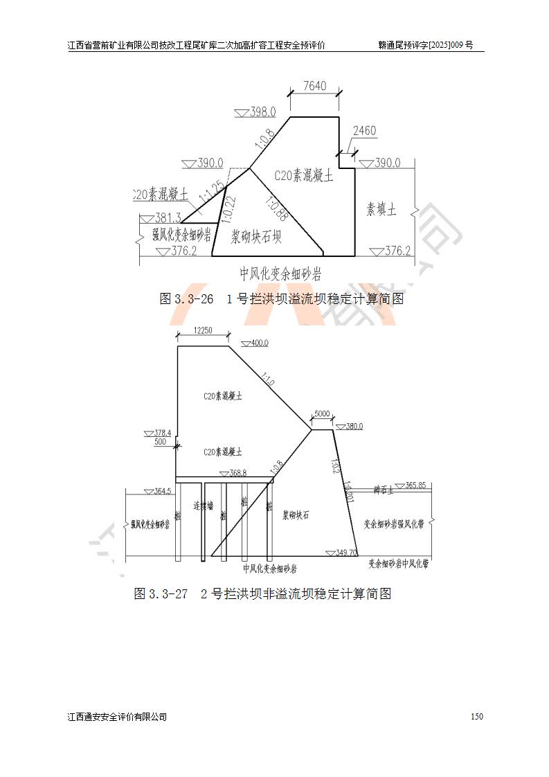 江西省营前矿业有限公司于2003年12月16日成立,位于赣州市上犹县营前镇焦里村境内,公司注册资本10000万元,法定**人陈雅博,矿区地理坐标:东经114°18′30″~114°19′00″,北纬25°52′35″~25°53′47″。公司经营范围包括:铅矿、锌、钨、银地下开采、销售。 江西省营前矿业有限公司技改工程尾矿库位于焦里钨银铅锌矿区,处于上犹县水岩乡井子村坑尾自然村境内,为山谷型尾矿库。 江西省营前矿业有限公司技改工程尾矿库于2013年由福建省冶金工业设计院设计,2014年8月开始施工建设,2015年4月竣工开始试运行,2015年11月完成竣工验收,2016年1月首次取得安全生产许可证,2019年1月完成延期换证,2020年8月委托金建工程设计有限公司进行尾矿库加高扩容工作,2020年10月21日取得了江西省应急管理厅下发的《关于江西省营前矿业有限公司技改工程尾矿库加高扩容工程安全设施设计的审查意见》(赣应急非煤项目设审〔2020〕46号),之后委托驻马店市黄淮建设工程有限公司负责施工,云南润滇工程技术有限公司负责监理,2021年12月完成加高扩容竣工验收工作,经过延期,现尾矿库安全生产许可证编号(赣)FM安许证字[2016]M1692号,**期为2025年01月18日至2028年01月17日。 江西省营前矿业有限公司技改工程尾矿库为山谷型尾矿库,初期坝为透水堆石坝,坝顶高程为330.0m,初期坝高25.0m,后期采用上游式尾矿堆积坝,加高扩容后*终坝顶高程为380.0m,堆积坝高50.0m,总坝高为75.0m,总库容为为503.14×104m3,尾矿库为三等库。尾矿库初期坝以上总汇水面积3.53km2,防洪标准取500年一遇。 目前尾矿库由初期坝、堆积坝、库内排洪系统(双格排水斜槽+连接井+排水涵洞+排洪隧洞+排水陡槽+消力池)、1#拦洪坝、1#分洪隧洞、2#拦洪坝、2#分洪隧洞和安全监测设施组成。根据建设单位提供的尾矿库平面布置图,截至2024年12月,现状尾矿库堆积坝顶高程为372.2m,现状总坝高67.2m,滩顶高程为369.8m,现状全库容387.51×104m3,现状尾矿库为三等库,原加高扩容设计*终堆积坝顶高程为380.0m,现剩余库容115.63×104m3,剩余**库容约92.5×104m3,剩余服务年限约4.5年;矿山现有储量较大,剩余库容及服务年限不满足矿山后期生产需要。 技改工程尾矿库尾矿坝下游1**范围无居民,不存在工矿企业等建构筑物,不属于“头顶库”;尾矿库不压矿;距赣江直线距离60**;不涉及保护区及生态红线;尾矿库所在沟谷较长,谷底平均纵坡9%,上游周边山体地形有利于尾矿库二次加高扩容工程的实施,因此为了增加尾矿库库容,延长服务年限,充分利用尾矿库所在沟谷地形,江西省营前矿业有限公司对技改尾矿库进行二次加高扩容。 2024年12月,江西省营前矿业有限公司委托地矿赣西地质工程勘察院编制了《江西省营前矿业有限公司技改工程尾矿库二次扩容工程(水文)地质勘察报告》,2025年4月,江西省营前矿业有限公司委托金建工程设计有限公司编制了《江西省营前矿业有限公司技改工程尾矿库二次加高扩容工程可行性研究报告》。 按照非煤矿山建设项目安全设施“三同时”的规定要求,技改工程尾矿库为二次加高扩容工程,**进行安全预评价;江西省营前矿业有限公司委托我公司承担技改工程尾矿库二次加高扩容工程建设项目的安全预评价工作。 |