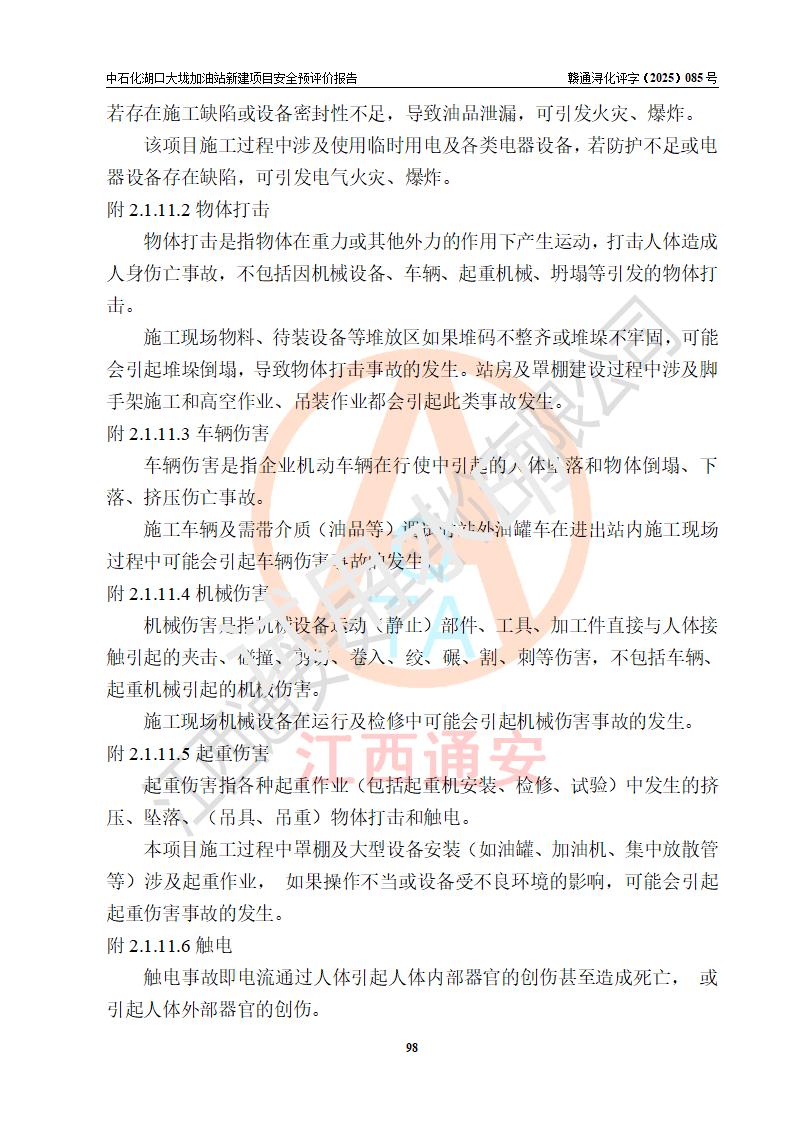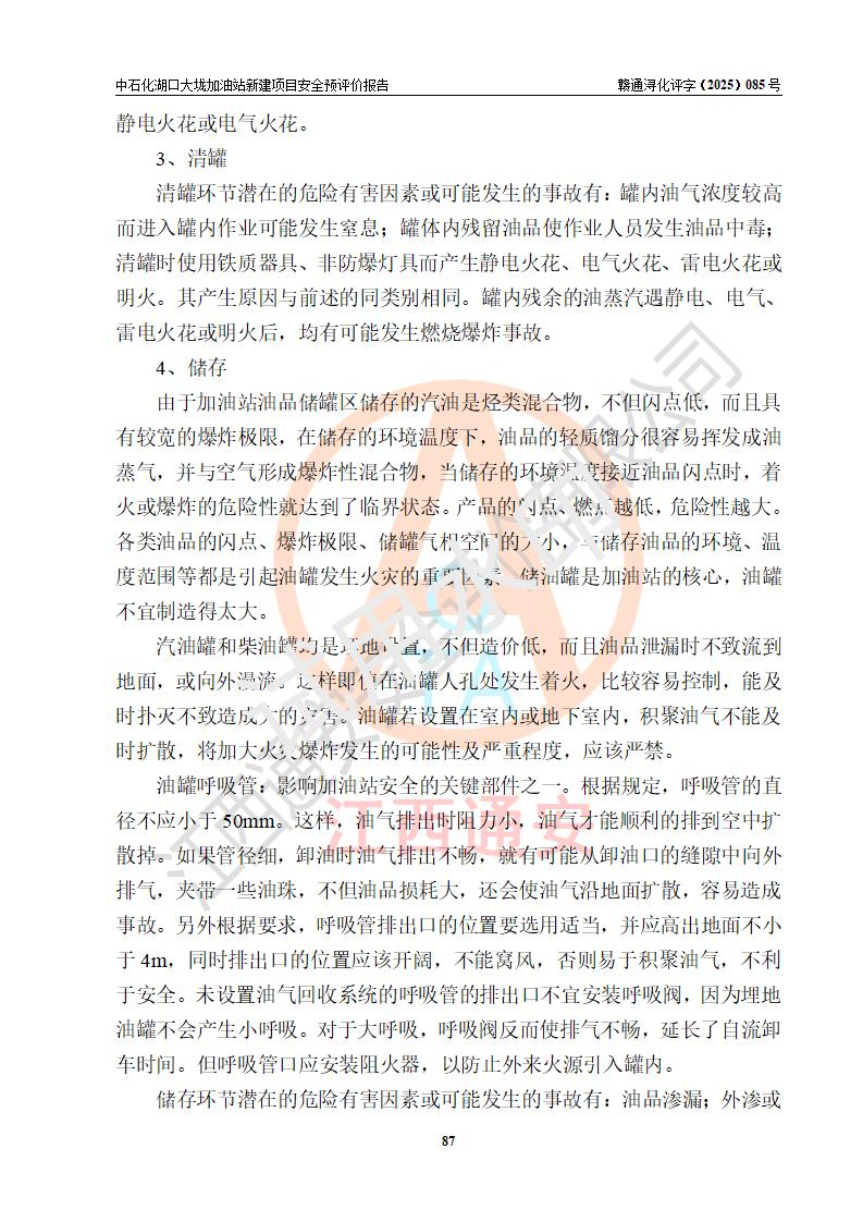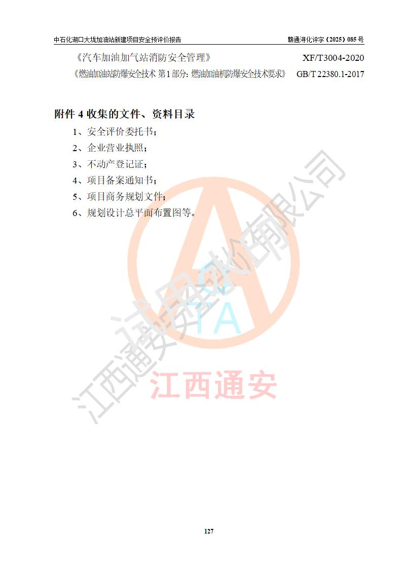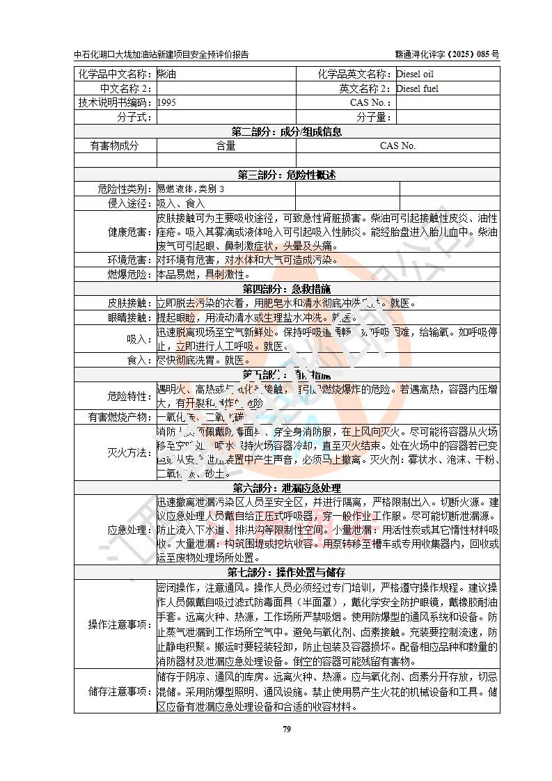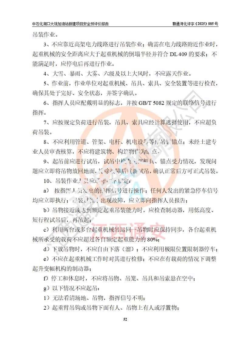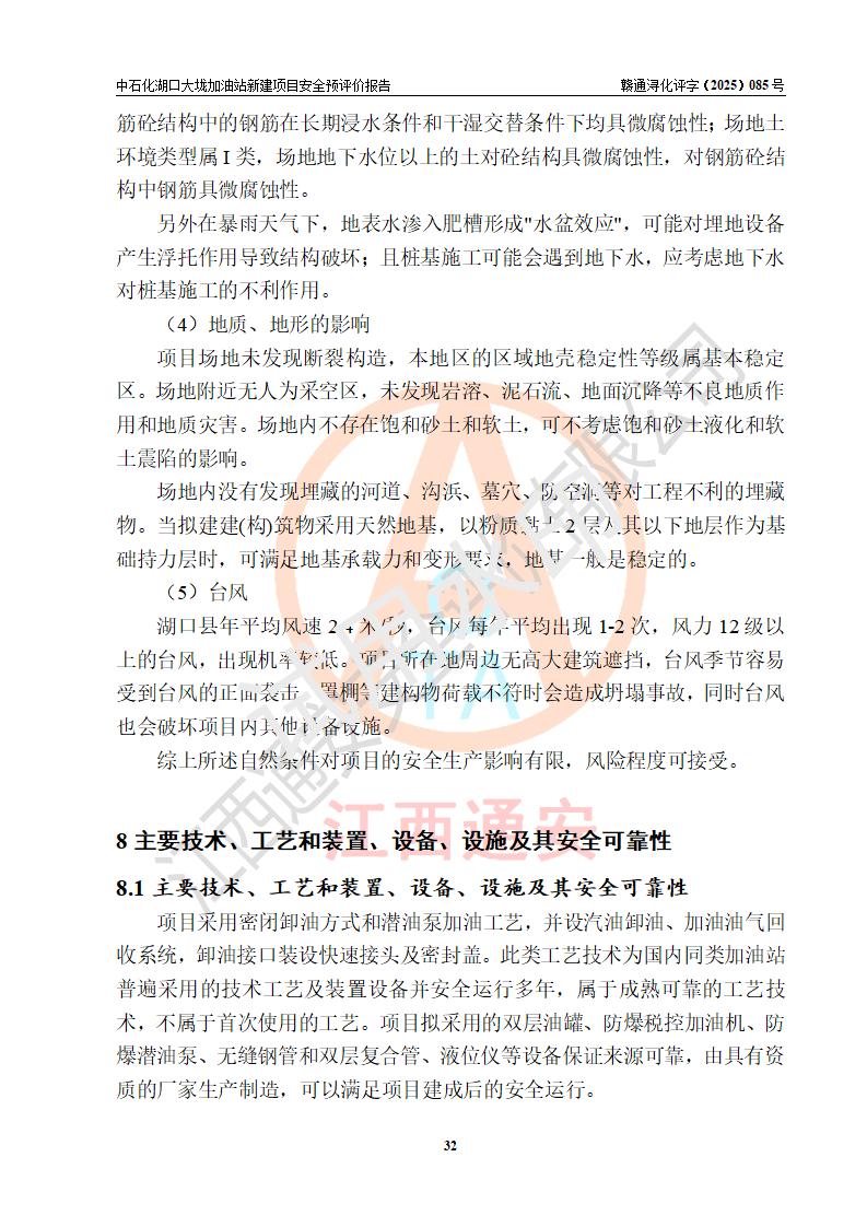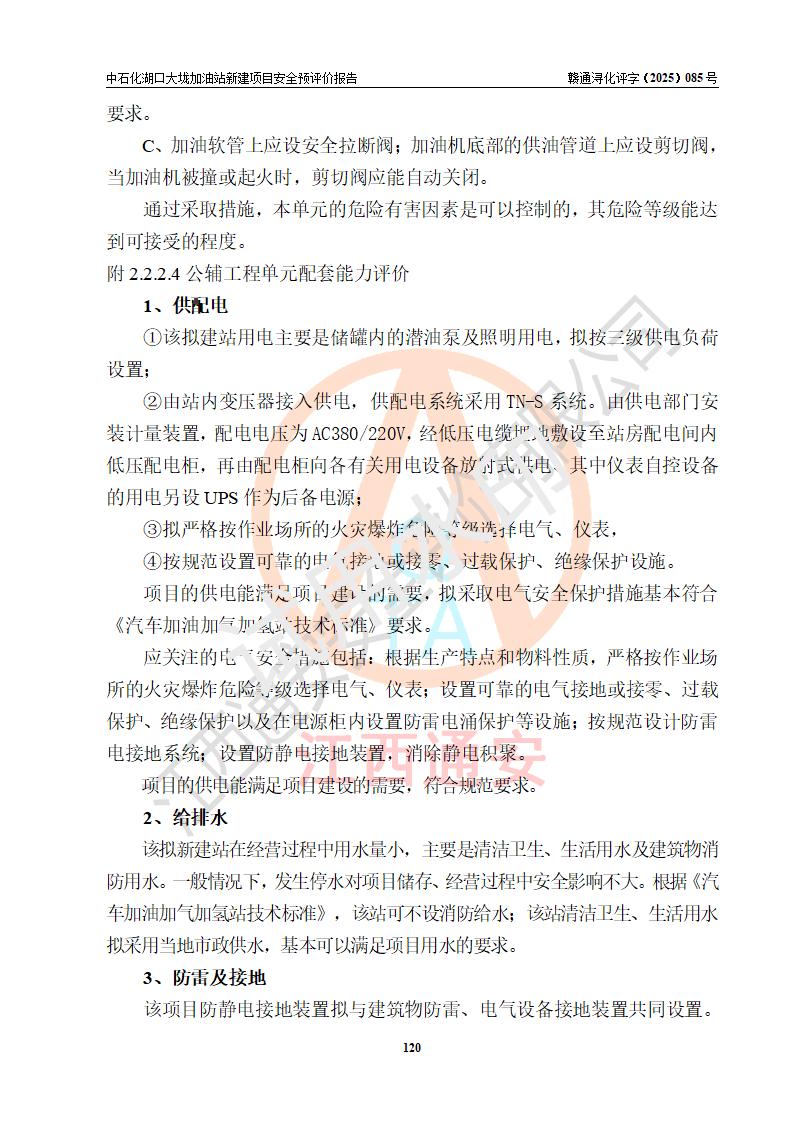 评价结论 | 中国石化销售股份有限公司江西九江石油分公司湖口大垅加油站新建项目的选址、自然条件适宜该项目工程的建设;项目规划设计中的总体布局方案可行,符合有关法规、标准要求;项目选择的工艺过程及设备设施的安全可靠性能达到**法规、标准规定要求;项目存在的危险有害因素可控,在落实项目建设方案及评价报告提出的有关安全对策措施后,其危险有害程度能达到可以接受的程度,项目建设能够实现安全运行的目标。 | |||