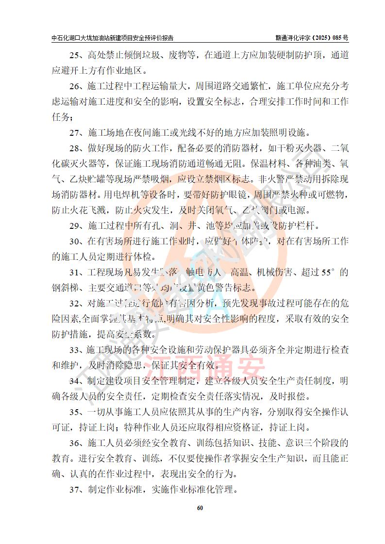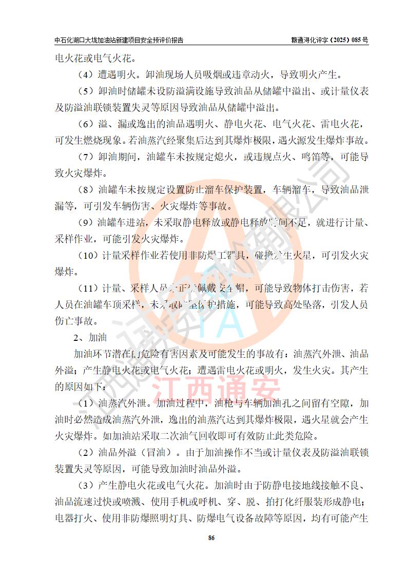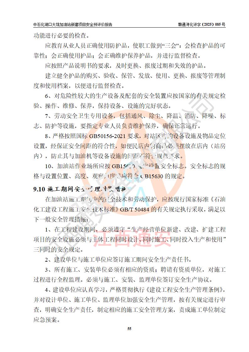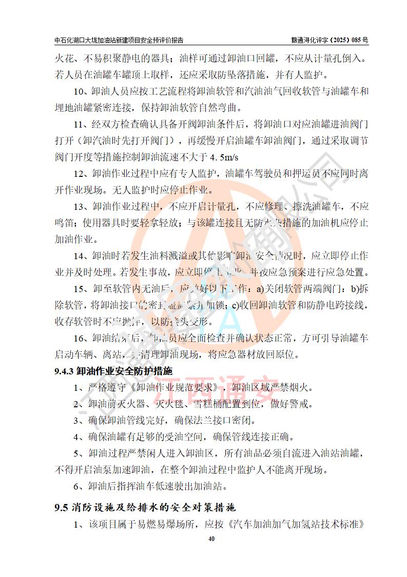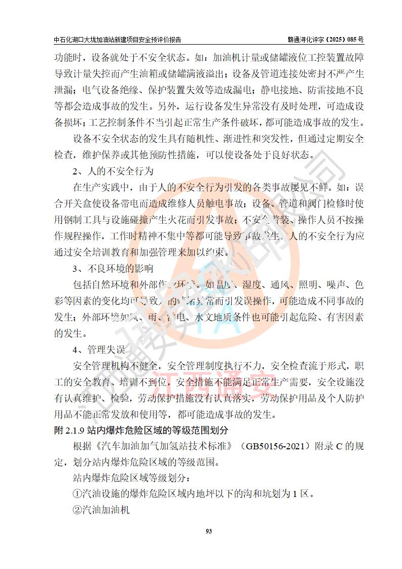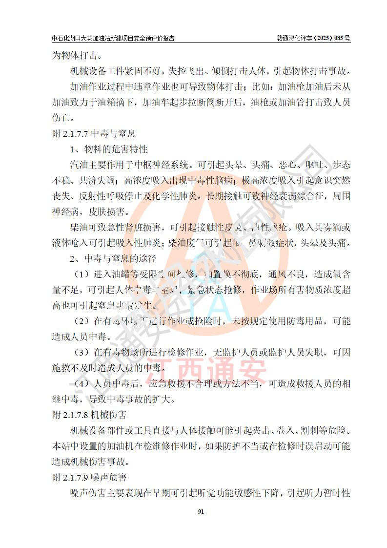 评价结论 | 中国石化销售股份有限公司江西九江石油分公司湖口大垅加油站新建项目的选址、自然条件适宜该项目工程的建设;项目规划设计中的总体布局方案可行,符合有关法规、标准要求;项目选择的工艺过程及设备设施的安全可靠性能达到**法规、标准规定要求;项目存在的危险有害因素可控,在落实项目建设方案及评价报告提出的有关安全对策措施后,其危险有害程度能达到可以接受的程度,项目建设能够实现安全运行的目标。 | |||