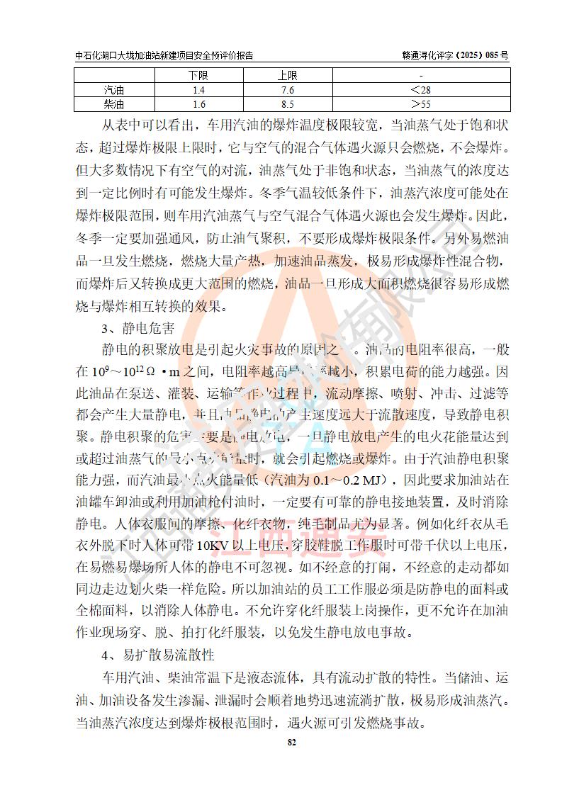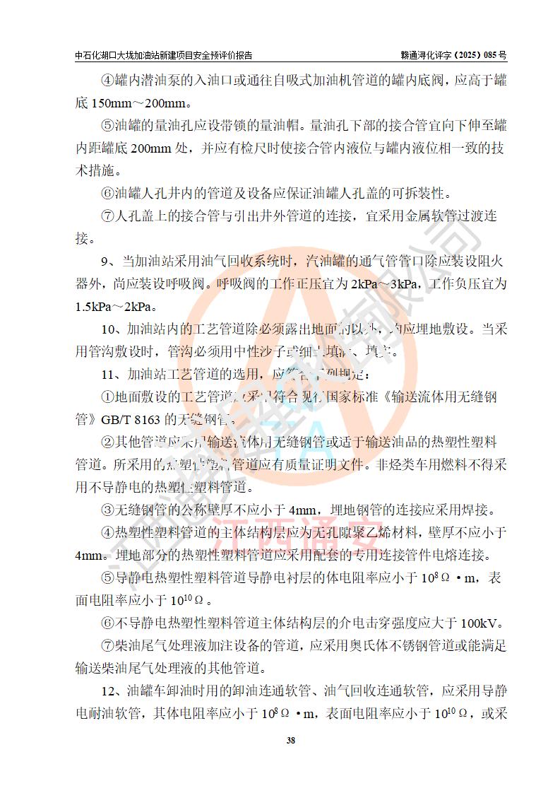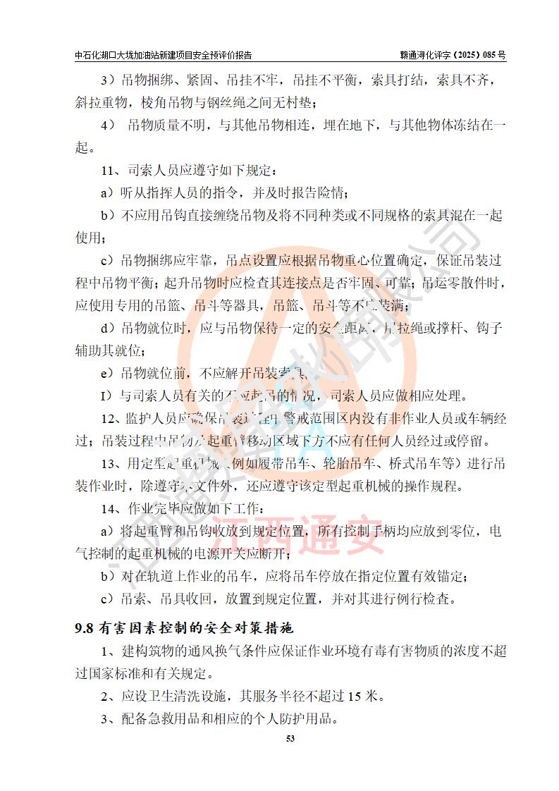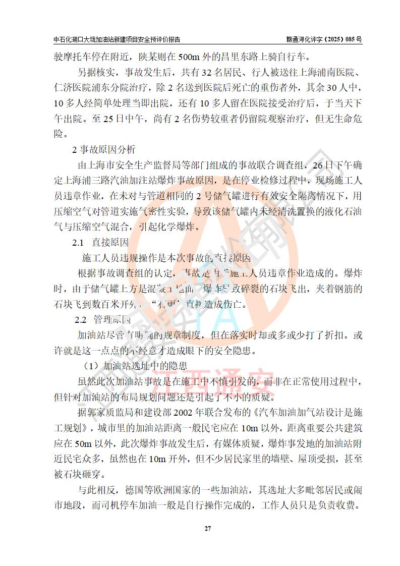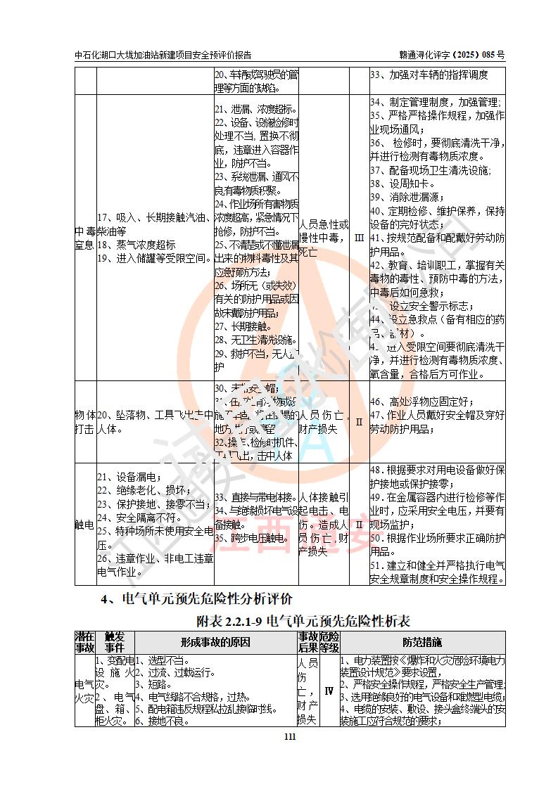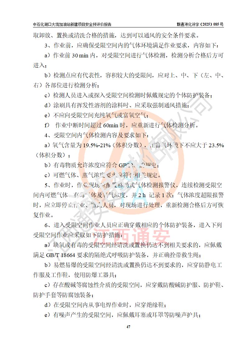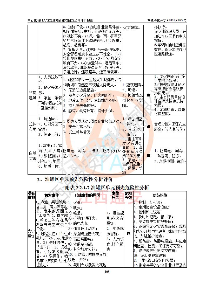 评价结论 | 中国石化销售股份有限公司江西九江石油分公司湖口大垅加油站新建项目的选址、自然条件适宜该项目工程的建设;项目规划设计中的总体布局方案可行,符合有关法规、标准要求;项目选择的工艺过程及设备设施的安全可靠性能达到**法规、标准规定要求;项目存在的危险有害因素可控,在落实项目建设方案及评价报告提出的有关安全对策措施后,其危险有害程度能达到可以接受的程度,项目建设能够实现安全运行的目标。 | |||