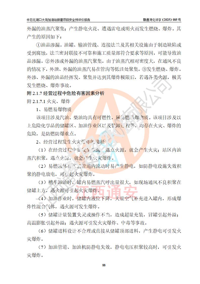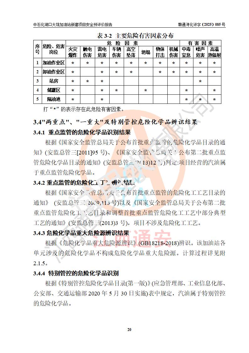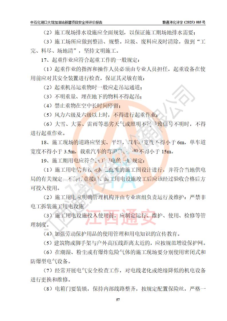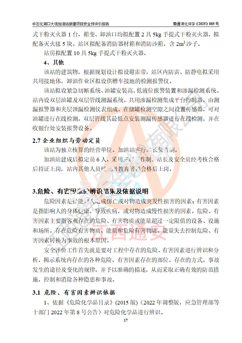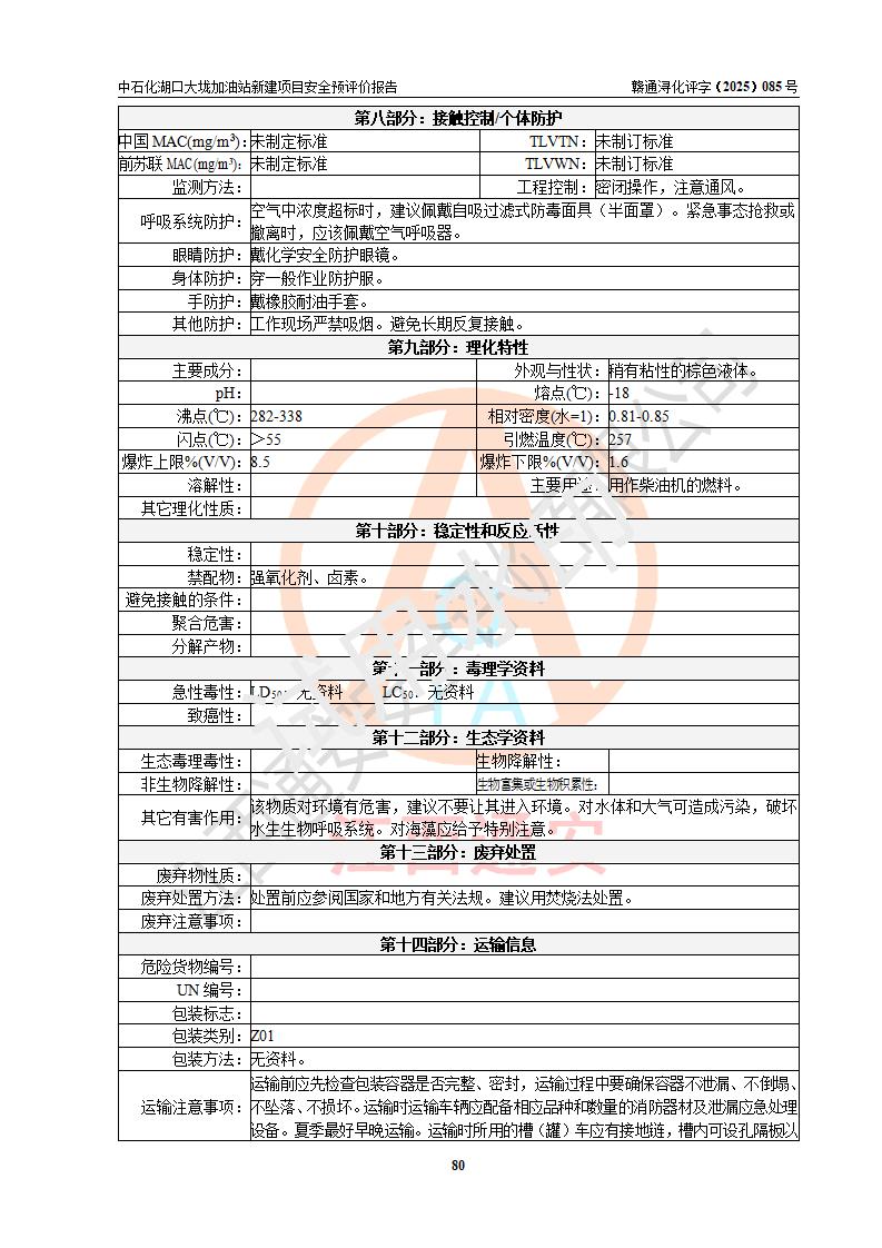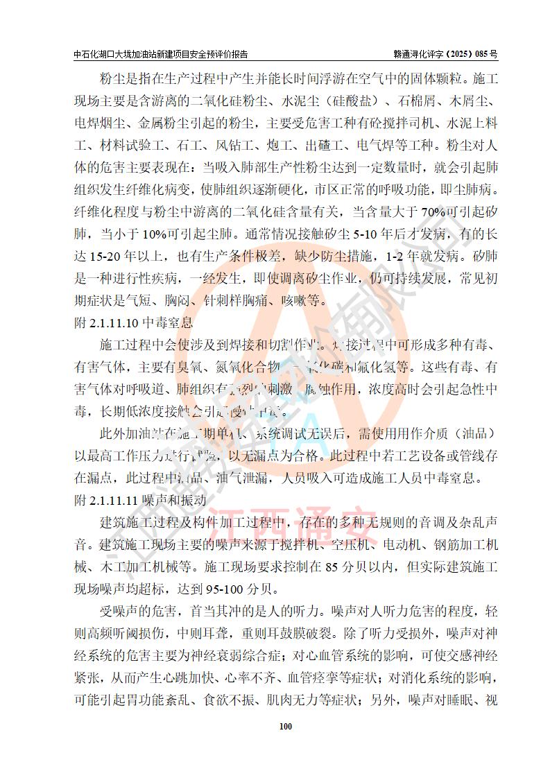 评价结论 | 中国石化销售股份有限公司江西九江石油分公司湖口大垅加油站新建项目的选址、自然条件适宜该项目工程的建设;项目规划设计中的总体布局方案可行,符合有关法规、标准要求;项目选择的工艺过程及设备设施的安全可靠性能达到**法规、标准规定要求;项目存在的危险有害因素可控,在落实项目建设方案及评价报告提出的有关安全对策措施后,其危险有害程度能达到可以接受的程度,项目建设能够实现安全运行的目标。 | |||