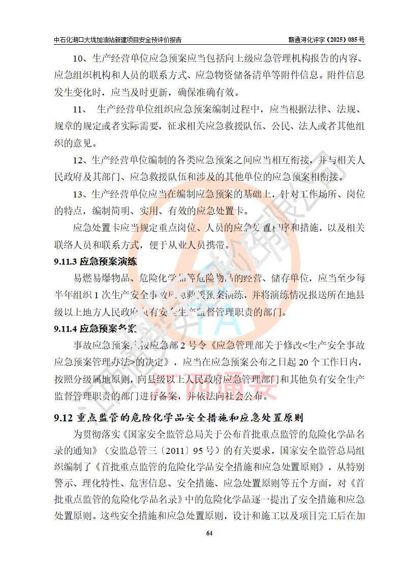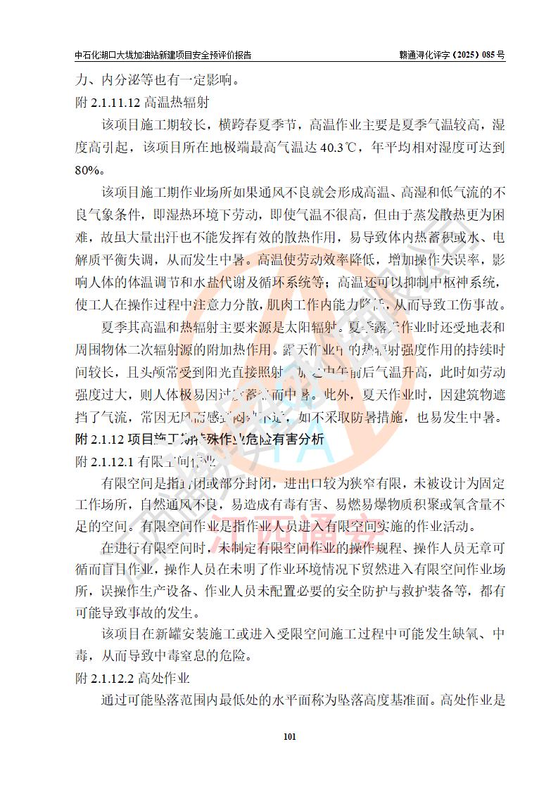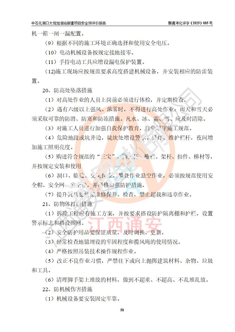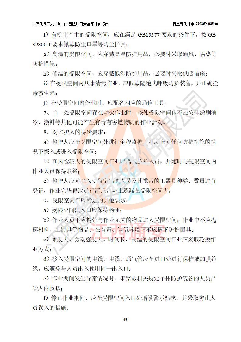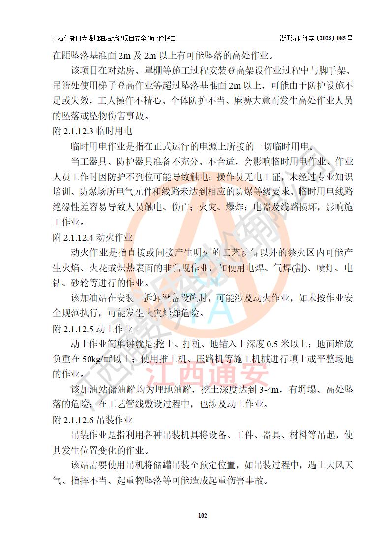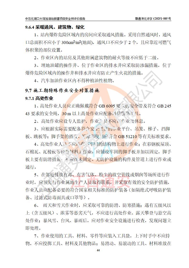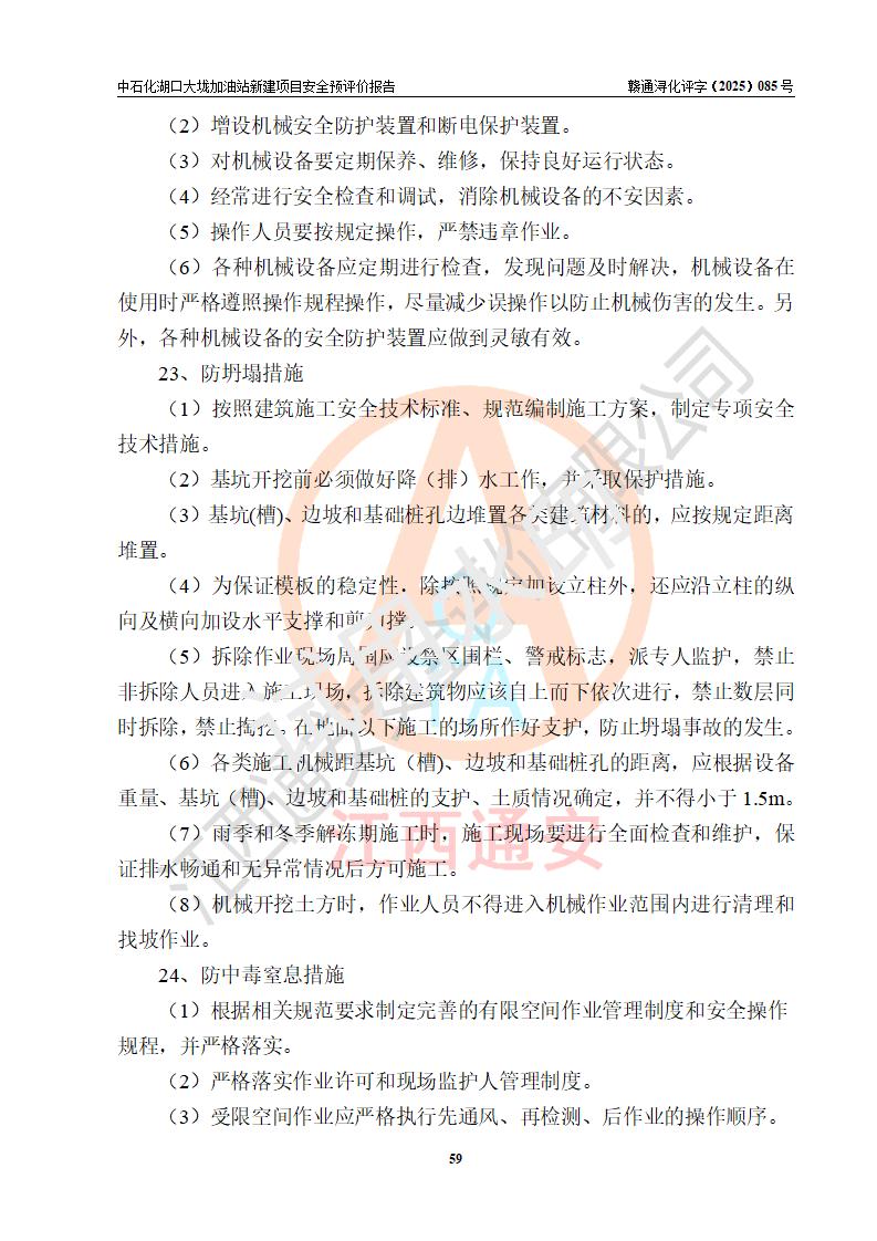 评价结论 | 中国石化销售股份有限公司江西九江石油分公司湖口大垅加油站新建项目的选址、自然条件适宜该项目工程的建设;项目规划设计中的总体布局方案可行,符合有关法规、标准要求;项目选择的工艺过程及设备设施的安全可靠性能达到**法规、标准规定要求;项目存在的危险有害因素可控,在落实项目建设方案及评价报告提出的有关安全对策措施后,其危险有害程度能达到可以接受的程度,项目建设能够实现安全运行的目标。 | |||