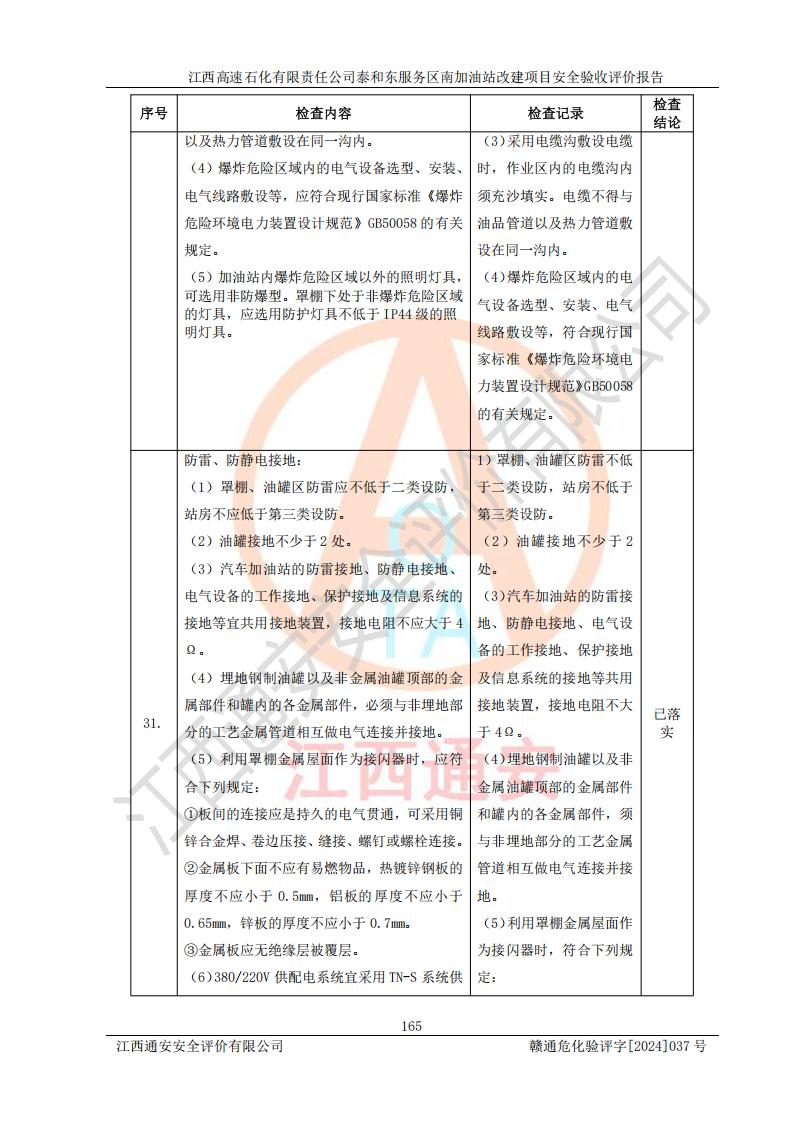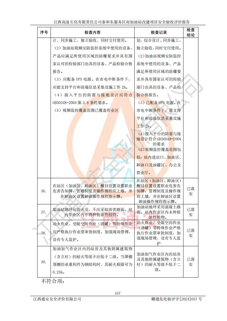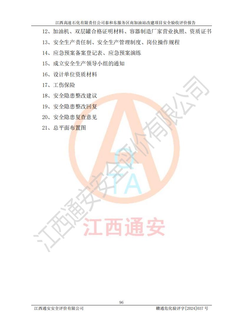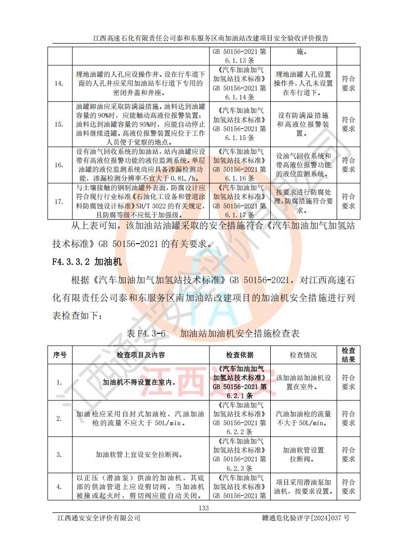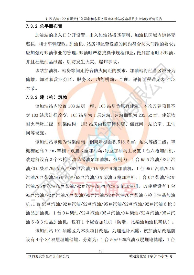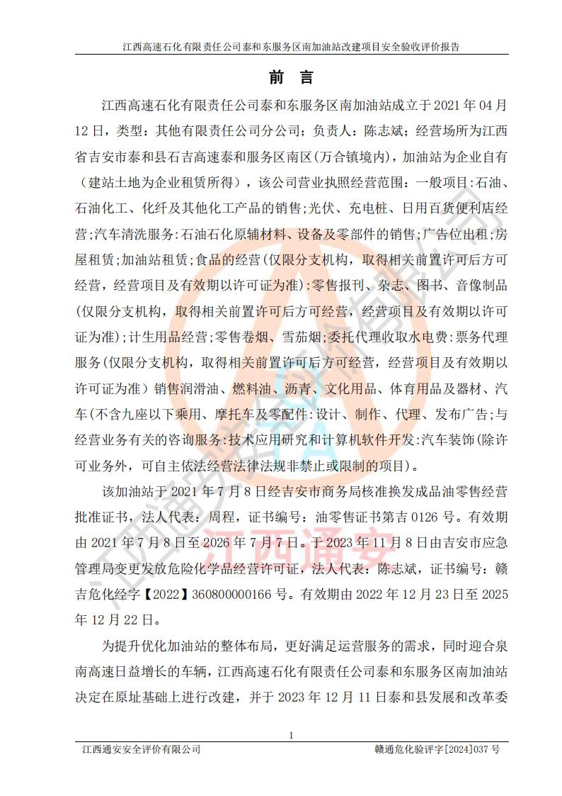 项目名称 | 江西高速石化有限责任公司泰和东服务区南加油站改建项目安全验收评价报告 | ||||