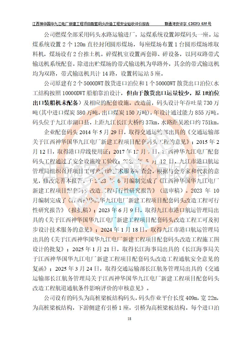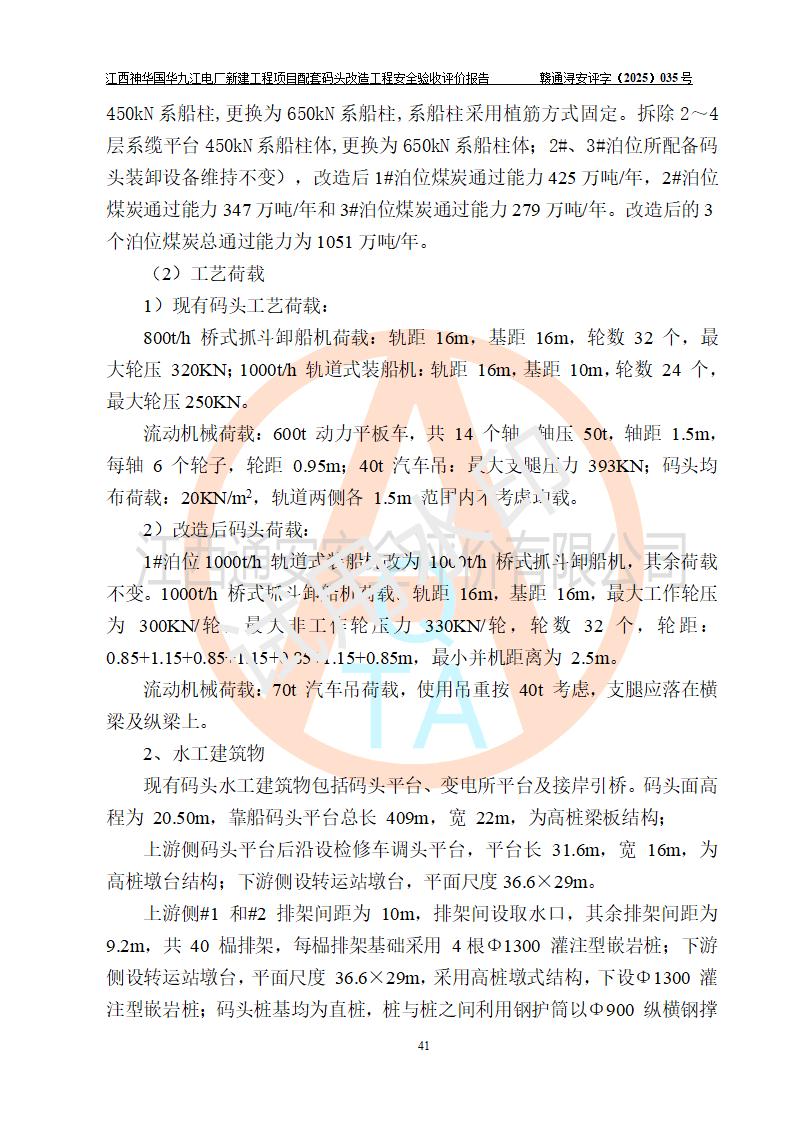 项目名称:江西神华国华九江电厂新建工程项目配套码头改造工程 项目地点:位于长江下游东北水道右岸,九江长江大桥下游约37**,岸线批复总长度为409米 建设单位:国能神华九江发电有限责任公司 勘察设计单位:中交第二航务工程勘察设计院有限公司 设计单位一:中交第二航务工程勘察设计院有限公司(水工建筑物设计分界以大堤为界,大堤以外由二航院设计) ;工艺专业设计分界点以码头平台上的 0#转运站为分界点,0#转运站内部工艺设备由二航院设计 设计单位二:引桥上部管带机(引桥上管带机300m后)由中南电力设计院设计 施工单位一:杭州华新机电工程有限公司 施工单位二:中交二航局第三工程有限公司 施工单位三:中国电建集团江西省水电工程局有限公司 监理单位:中交希迪工程咨询管理(武汉)有限公司 项目性质:改扩建 投资规模:8320.51万元 建设规模:江西神华国华九江电厂新建工程项目配套码头原有 2 个5000DWT 散货**泊位、1 个 5000DWT 散货出口泊位及相应的配套设施。本次改造将原有码头改造为 3 个 10000DWT 散货**泊位。改造后的3个泊位煤炭总通过能力为1051万吨/年。 |