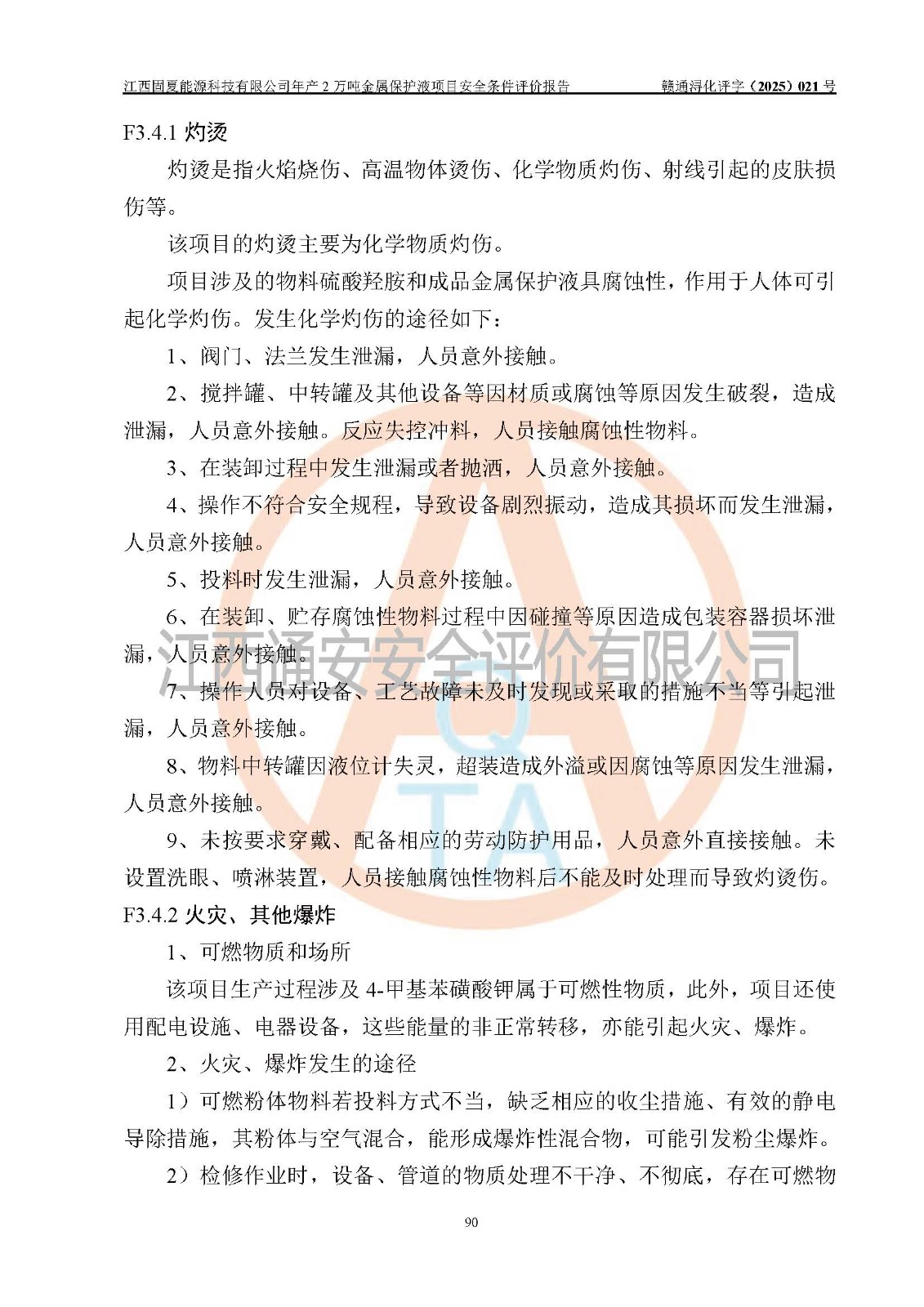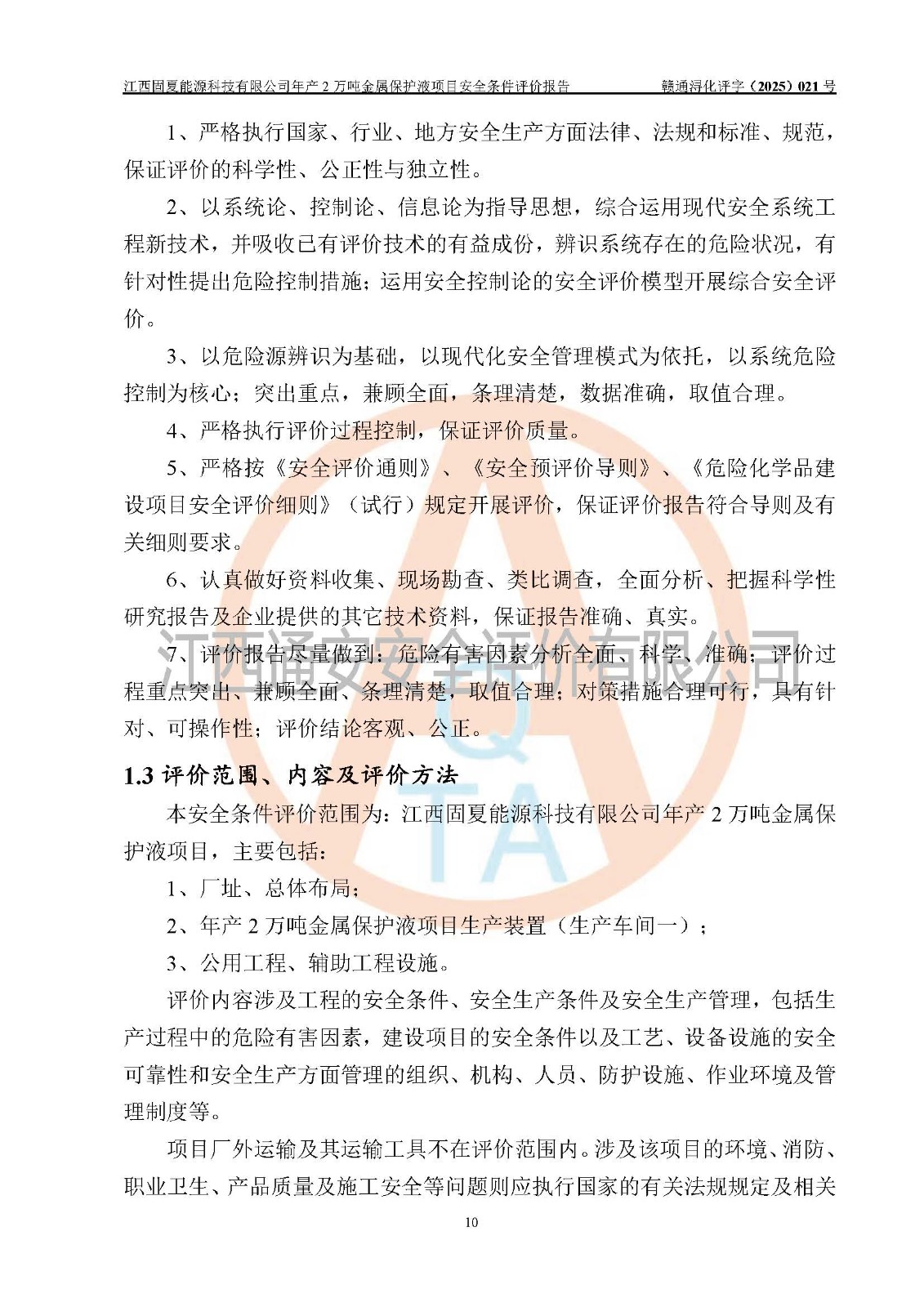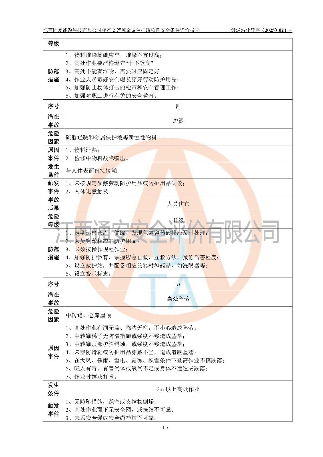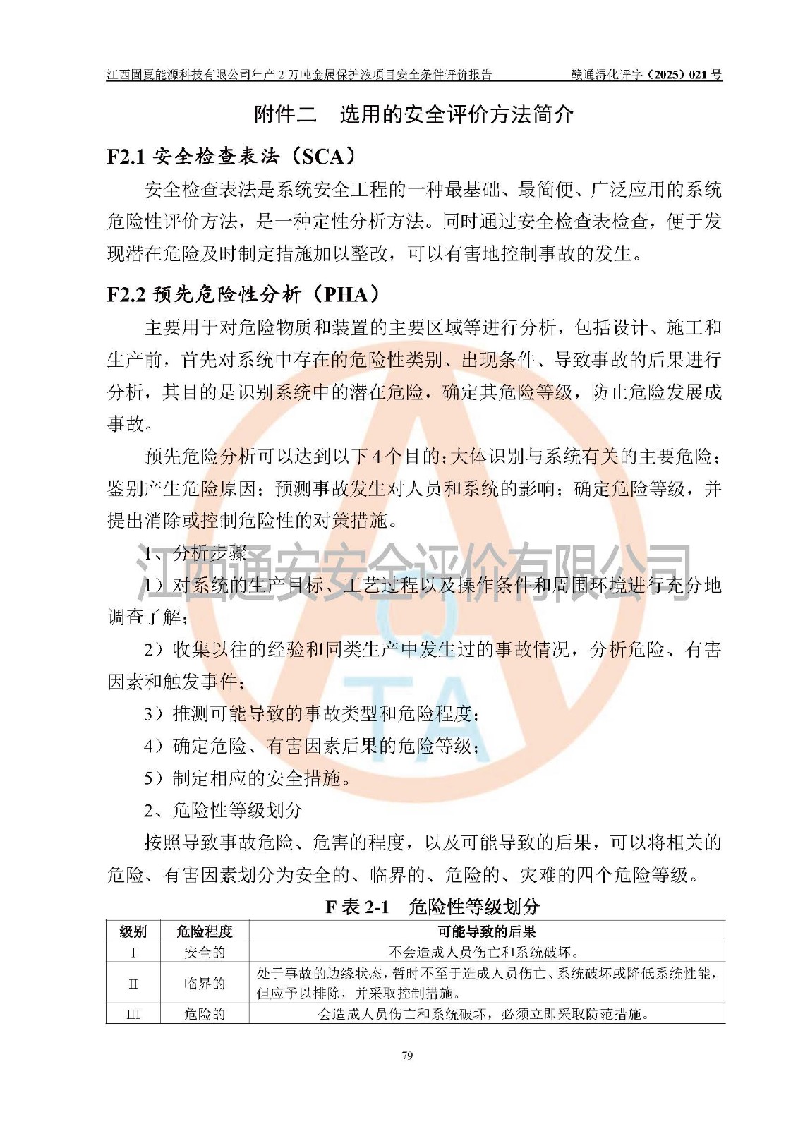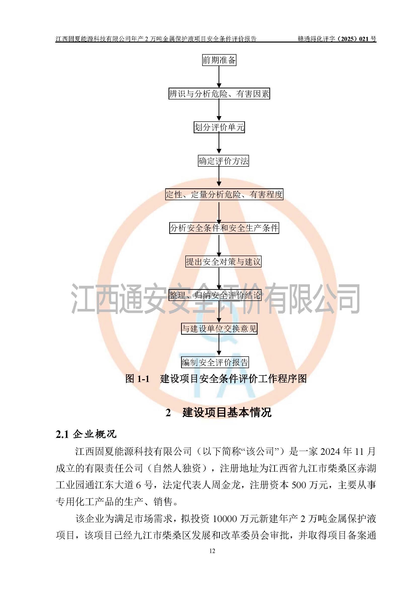 评价报告名称 | 江西固夏能源科技有限公司年产2万吨金属保护液项目安全条件评价报告 | |||