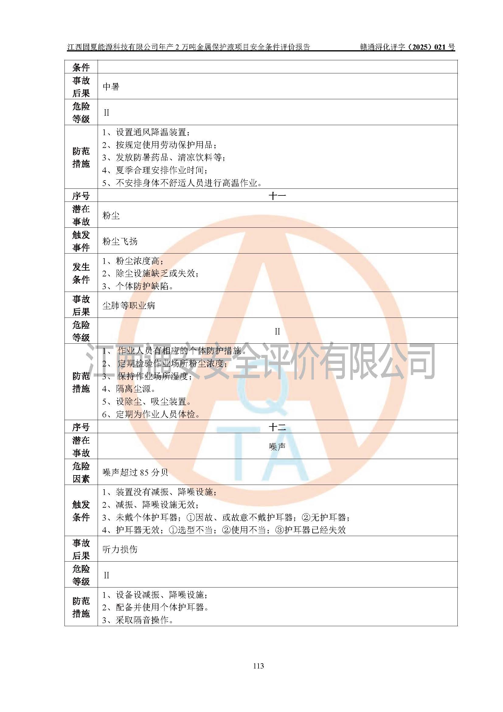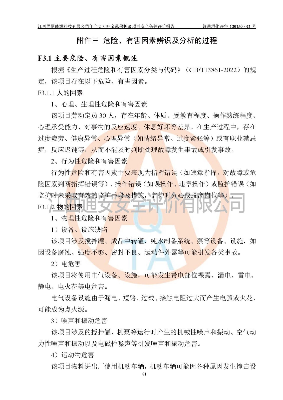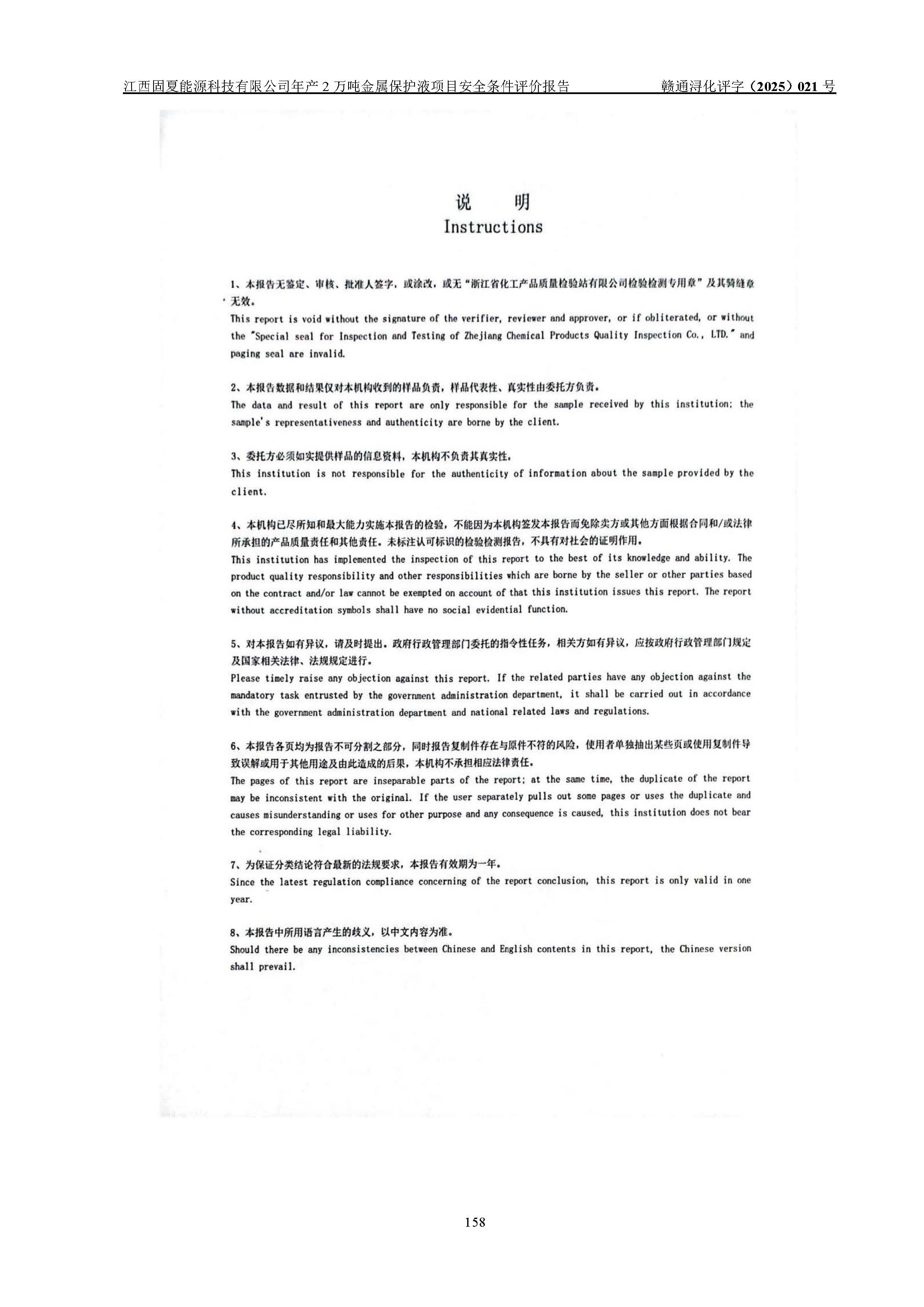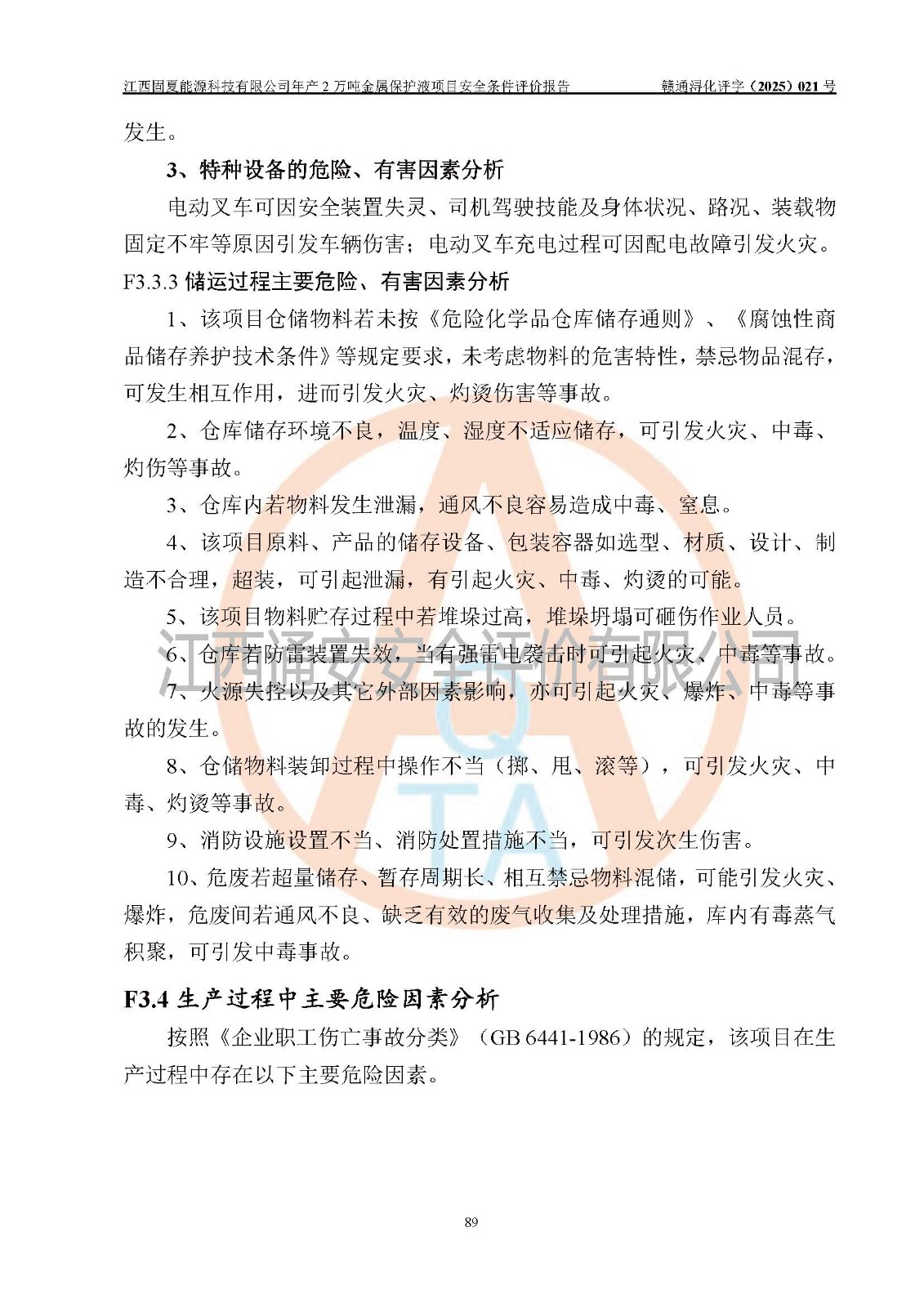 评价报告名称 | 江西固夏能源科技有限公司年产2万吨金属保护液项目安全条件评价报告 | |||