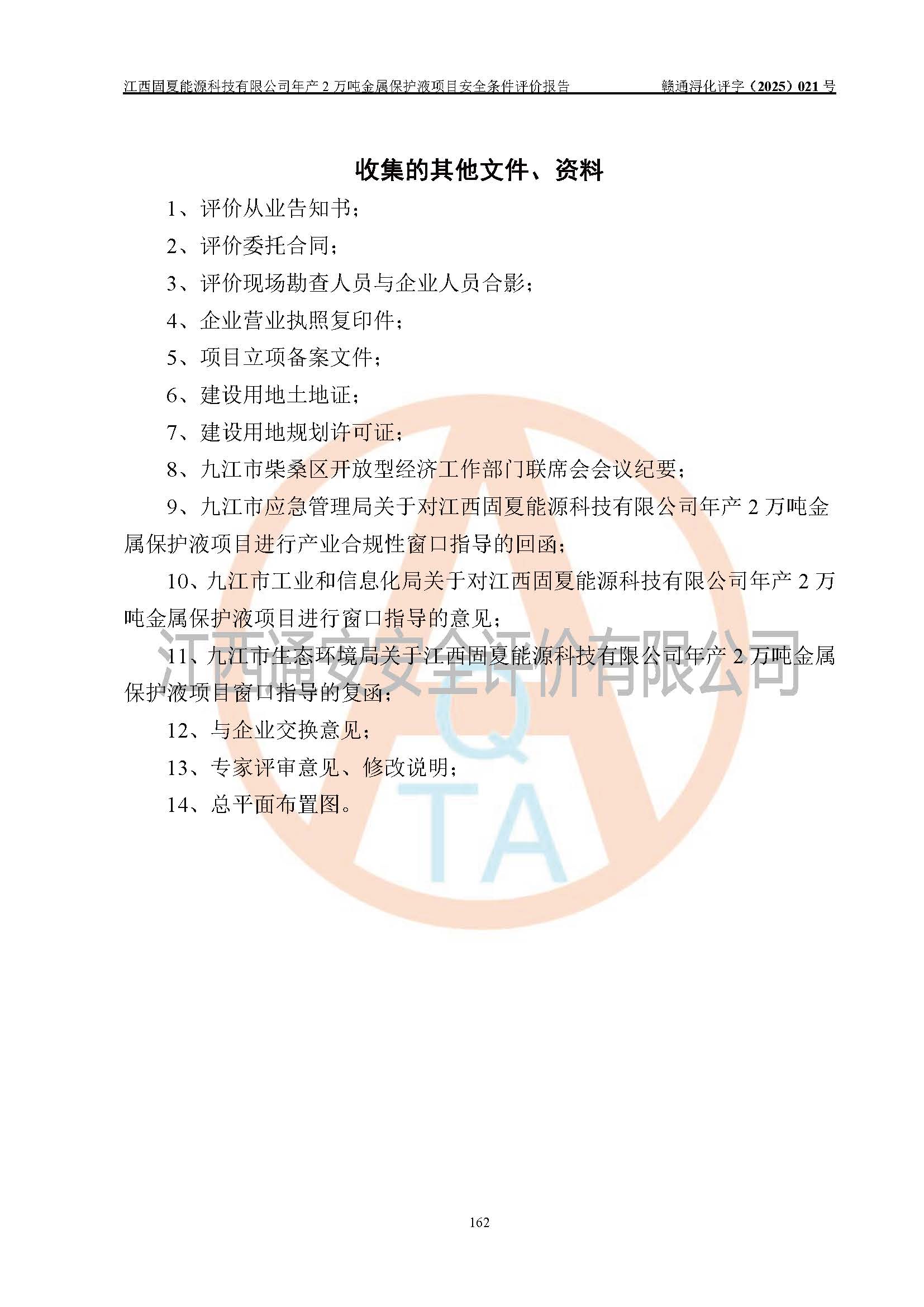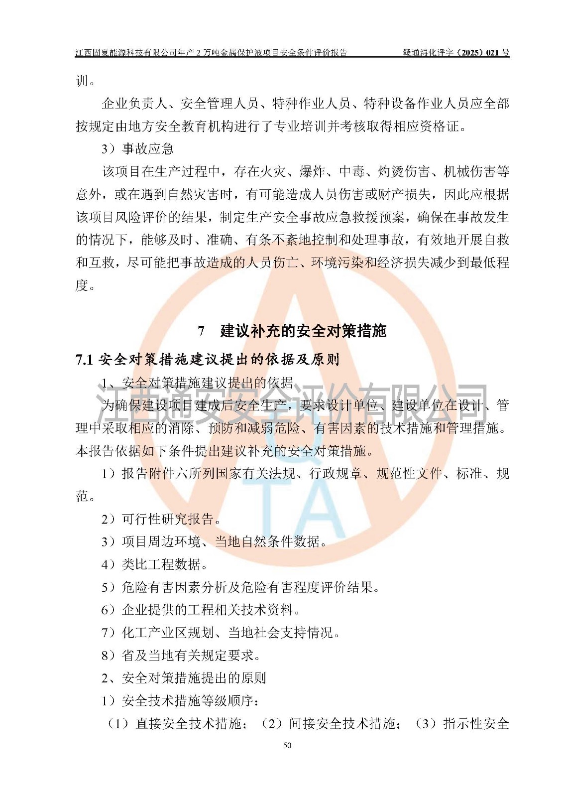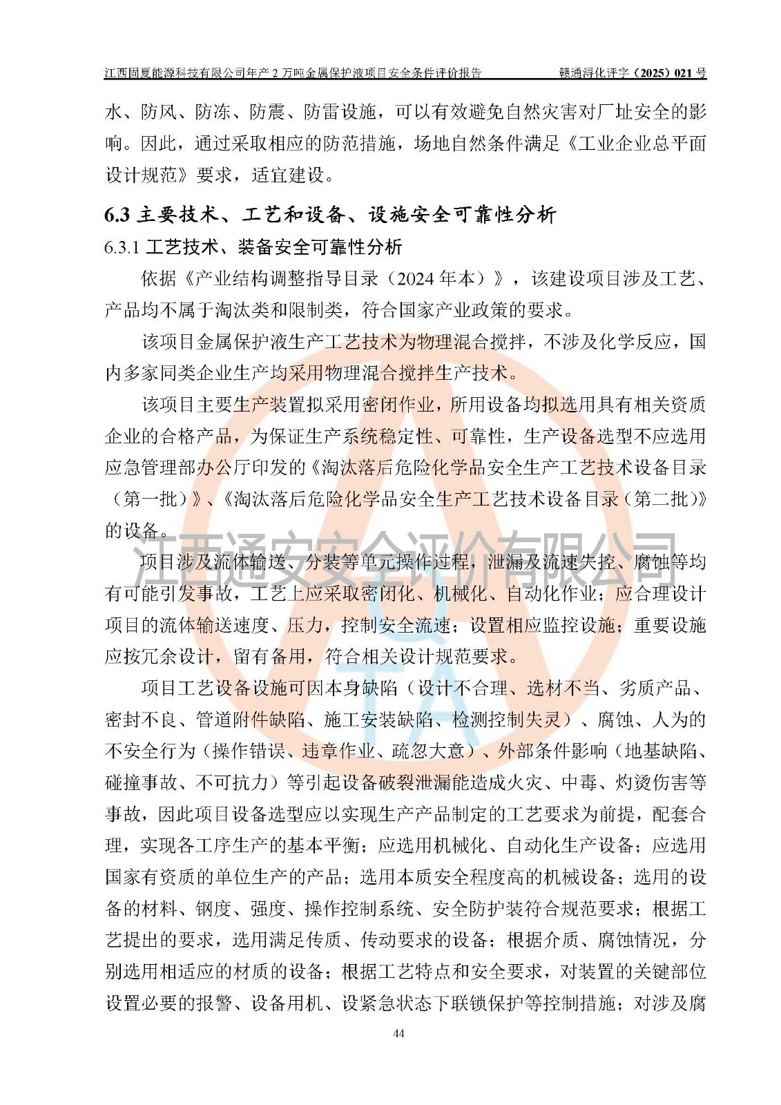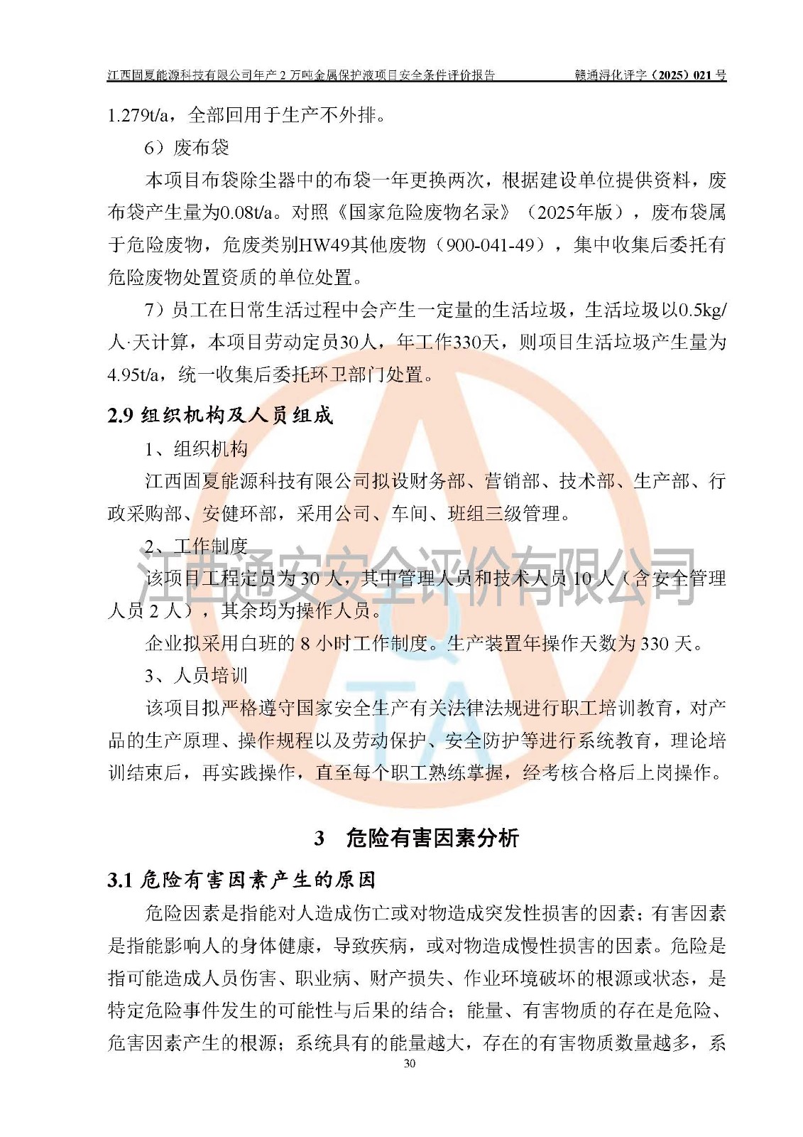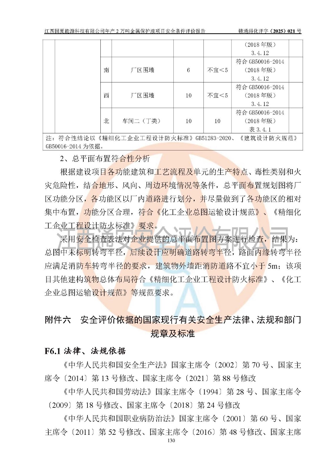 评价报告名称 | 江西固夏能源科技有限公司年产2万吨金属保护液项目安全条件评价报告 | |||