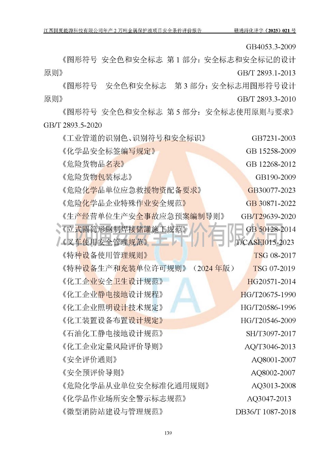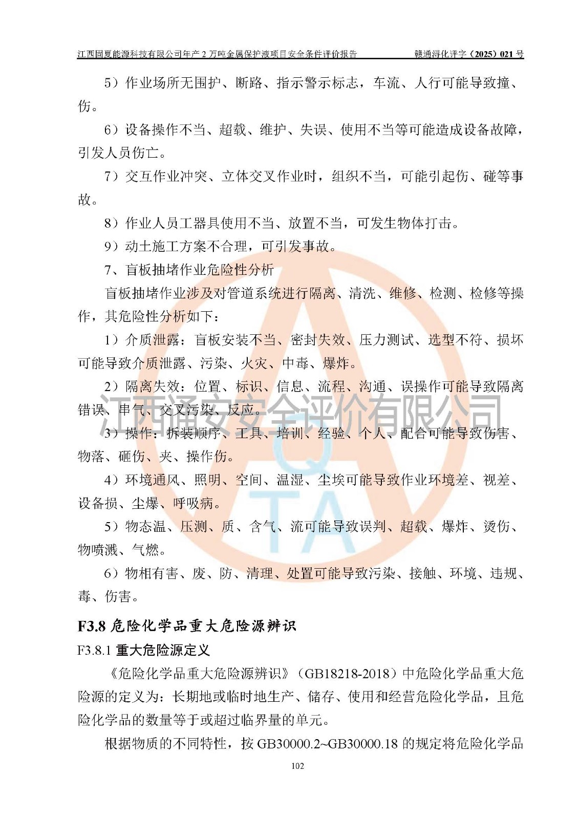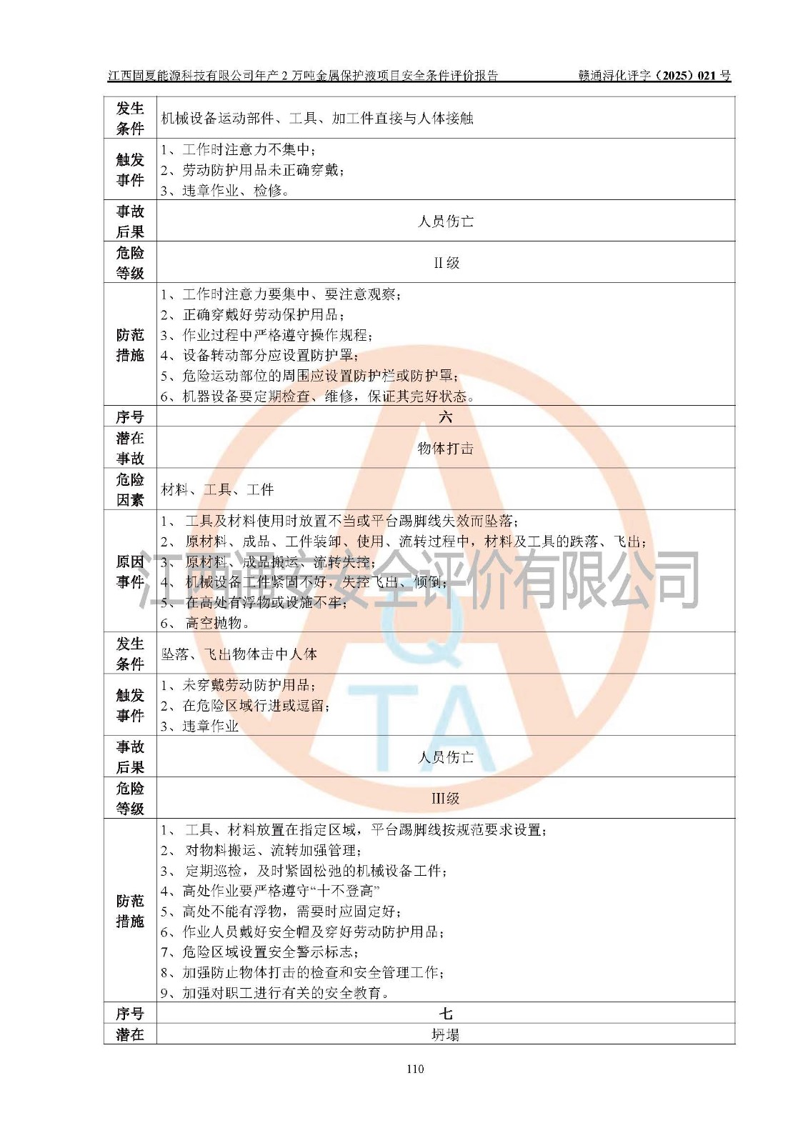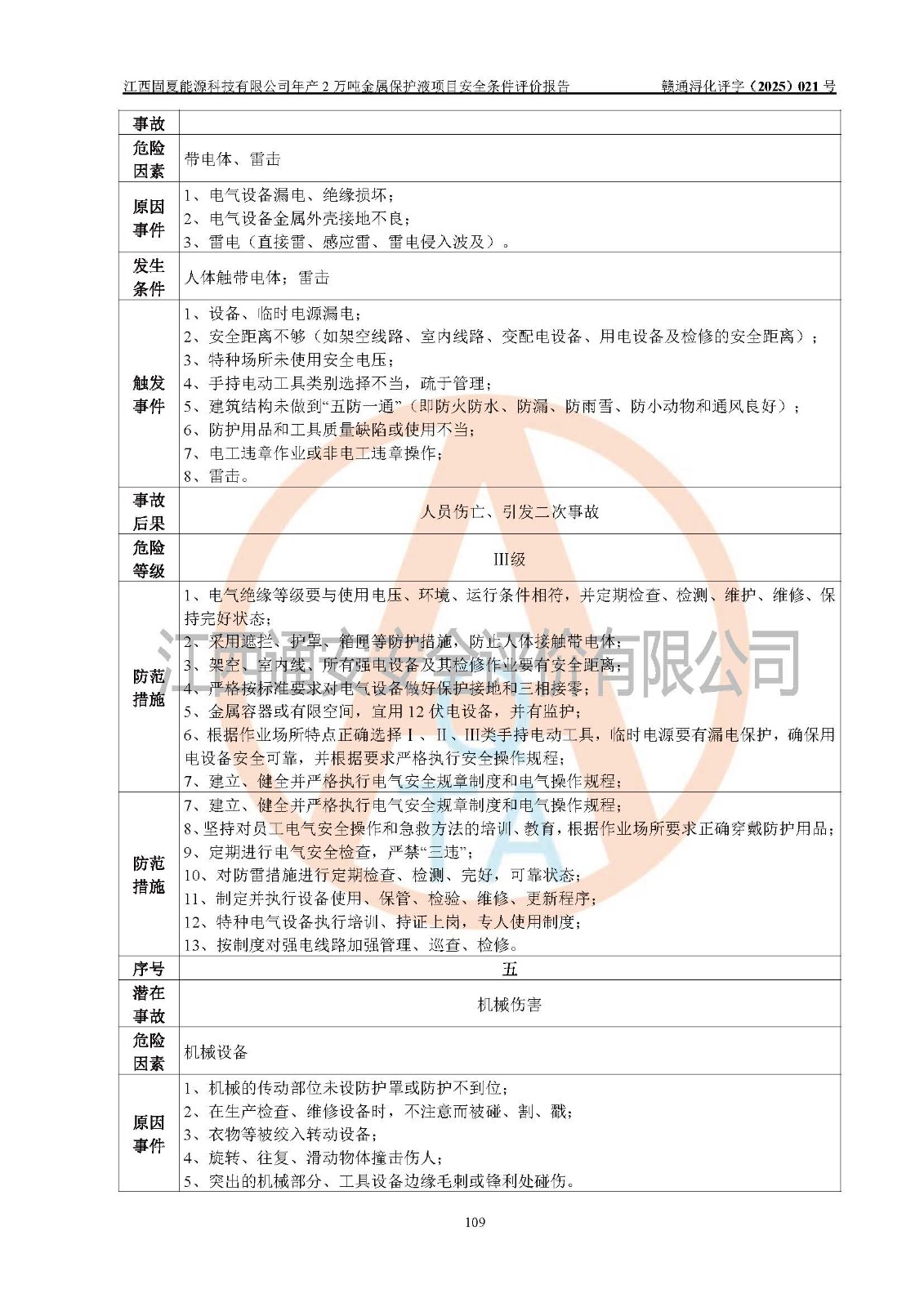 评价报告名称 | 江西固夏能源科技有限公司年产2万吨金属保护液项目安全条件评价报告 | |||