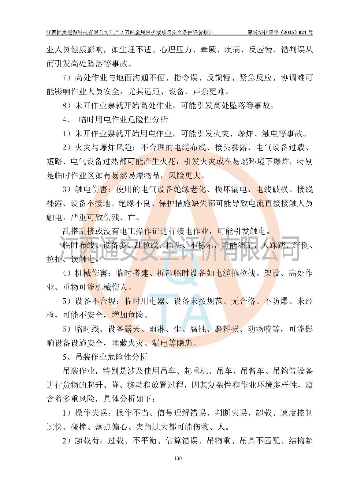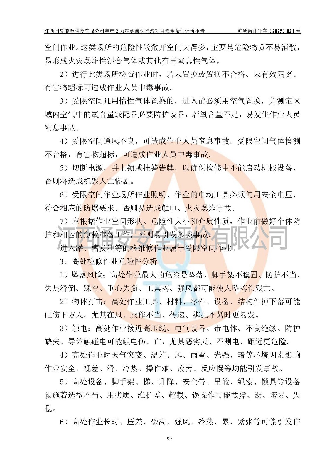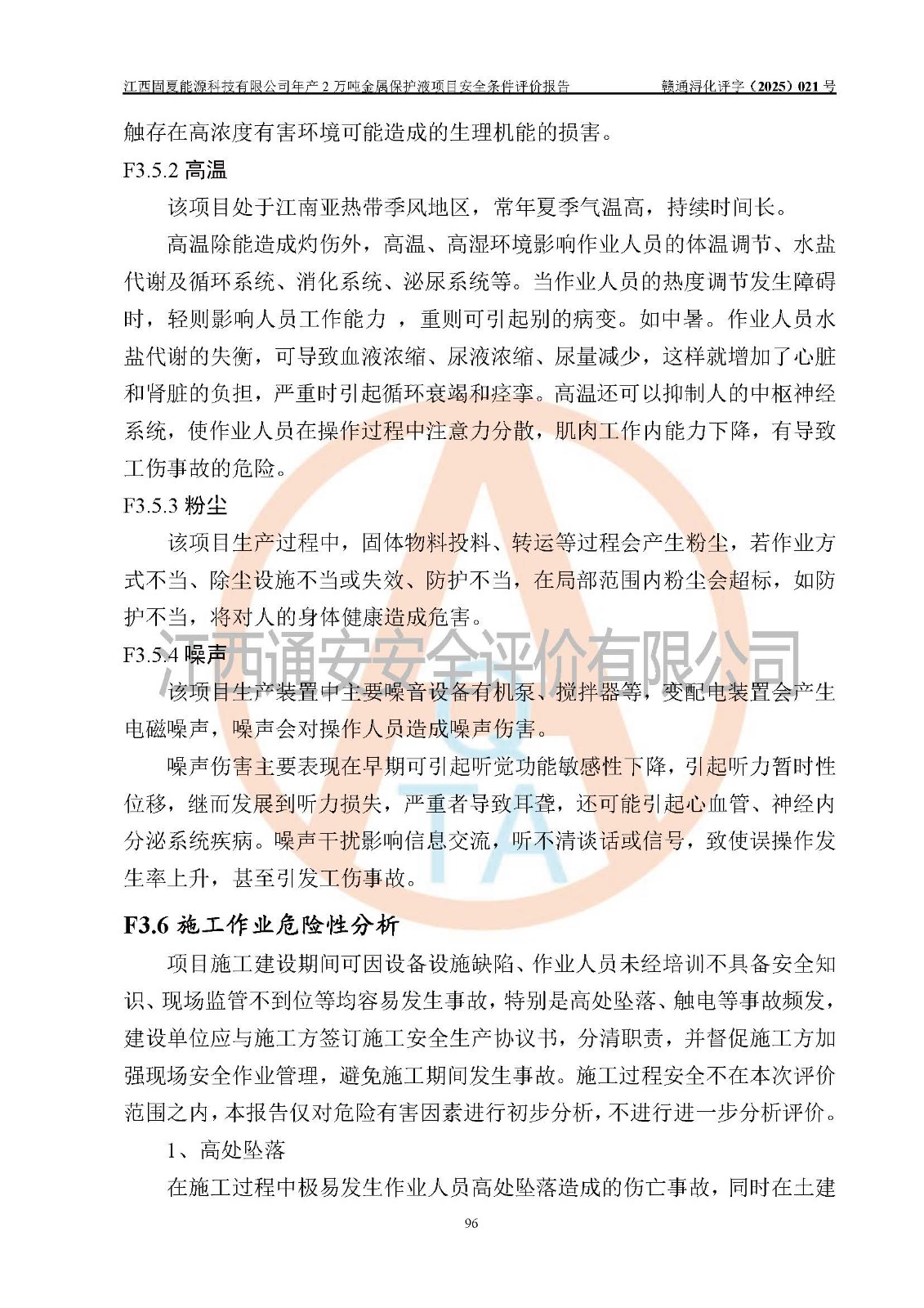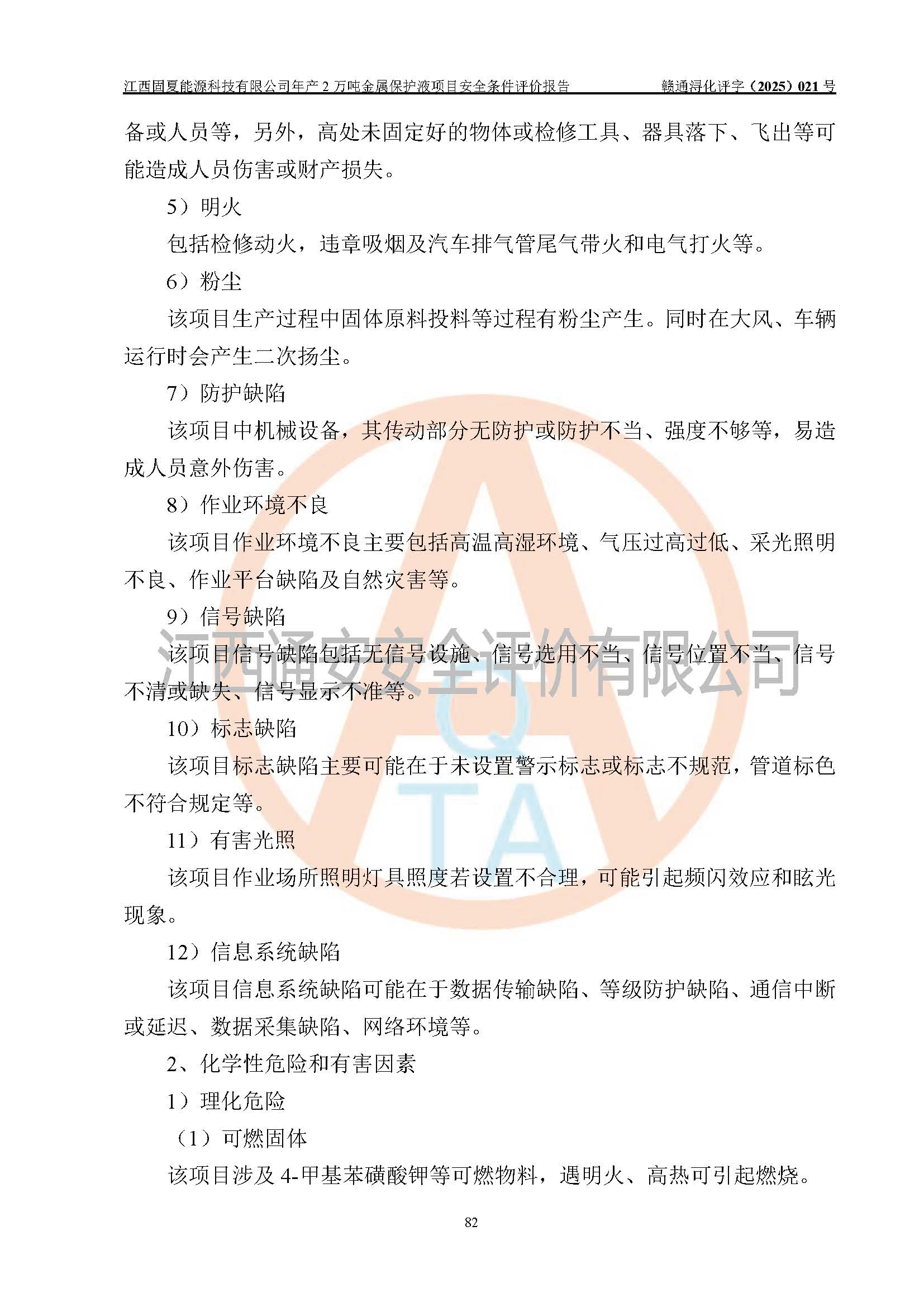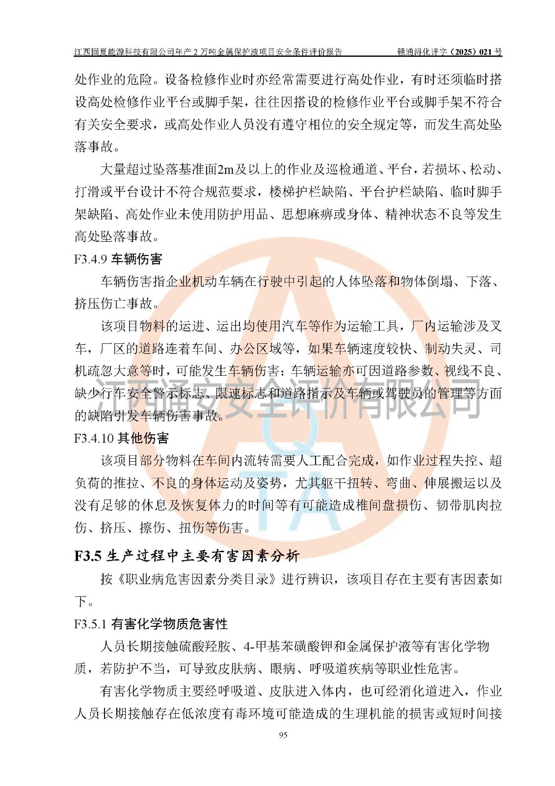 评价报告名称 | 江西固夏能源科技有限公司年产2万吨金属保护液项目安全条件评价报告 | |||