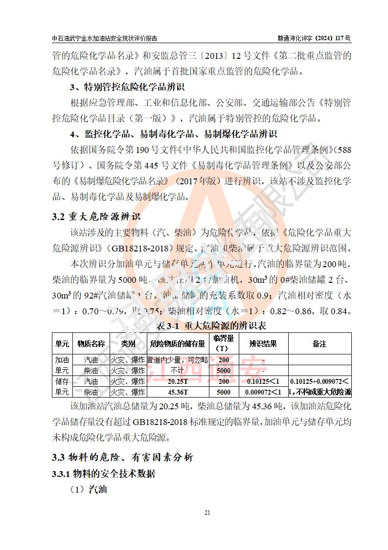 评价报告名称 | 中国石油天然气股份有限公司江西九江武宁金水加油站安全现状评价报告 | |||
