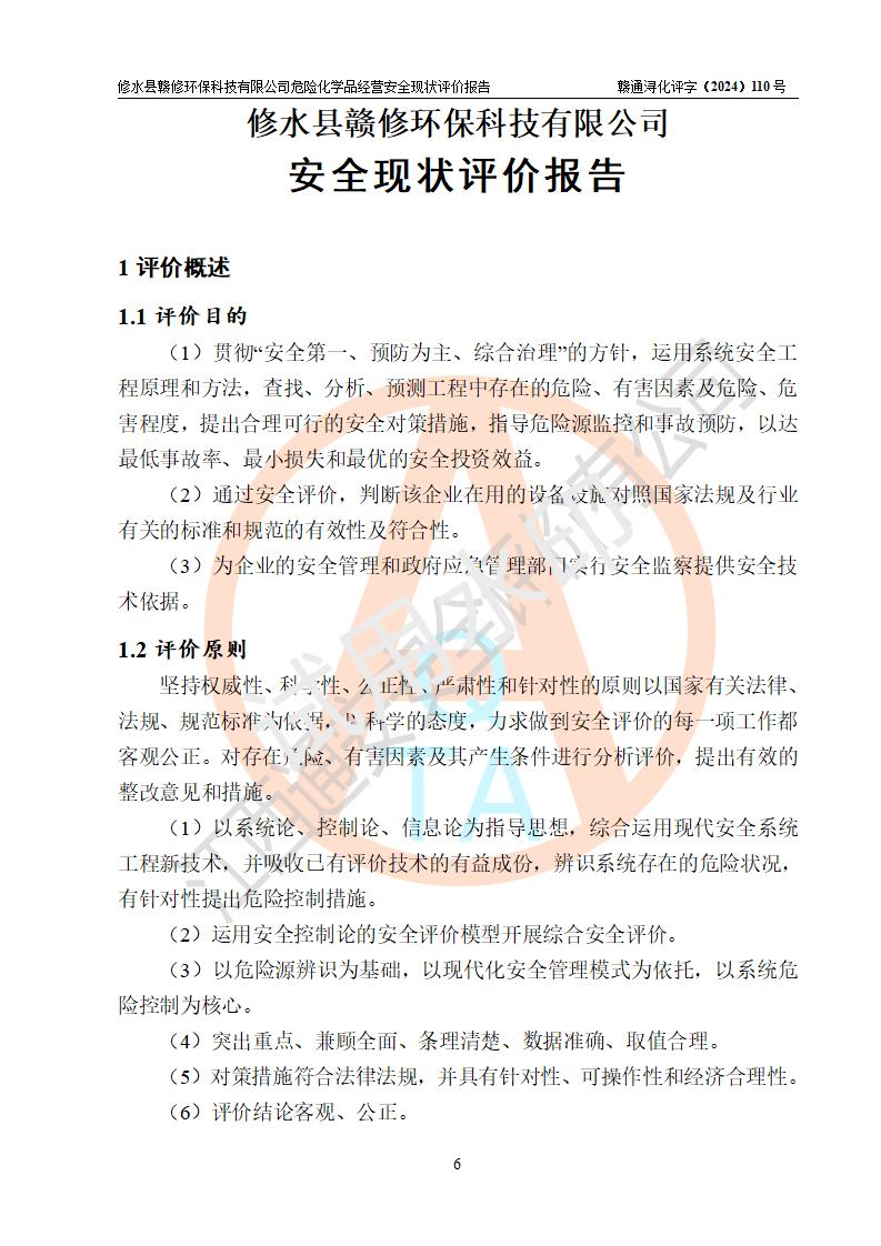 评价报告名称 | 修水县赣修**科技有限公司危险化学品经营安全现状评价报告 | ||||||