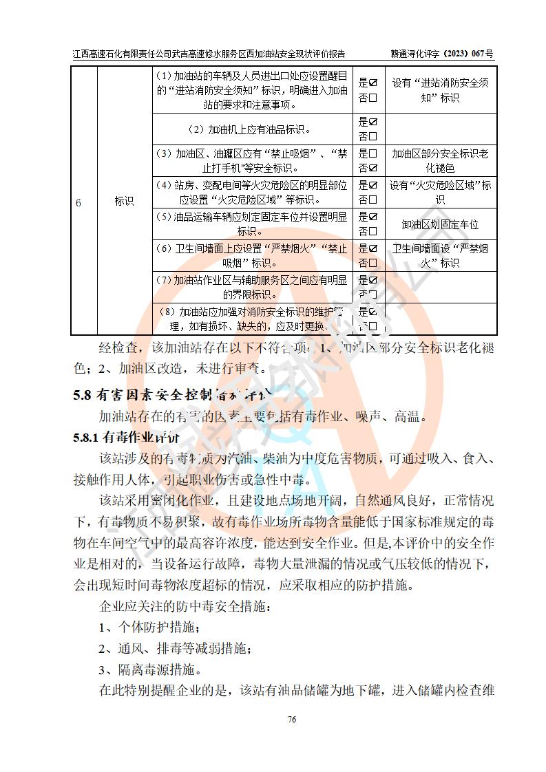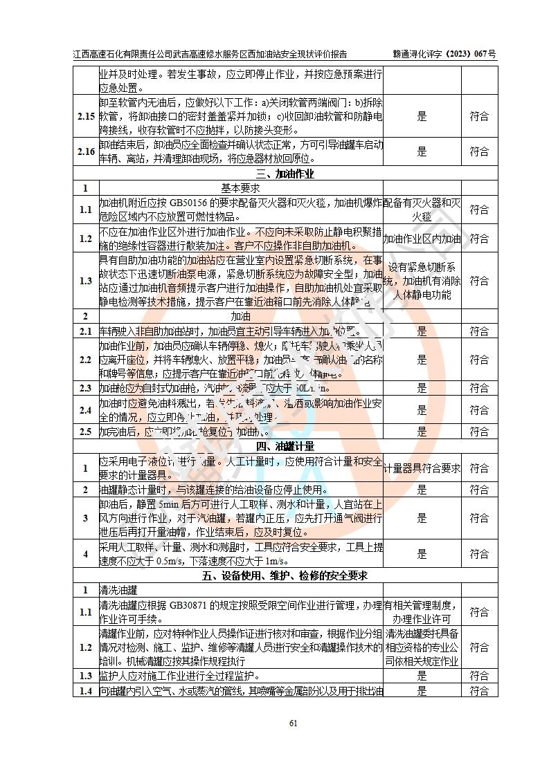评价报告名称 | 江西高速石化有限责任公司武吉高速修水服务区西加油站安全现状评价报告 | |||