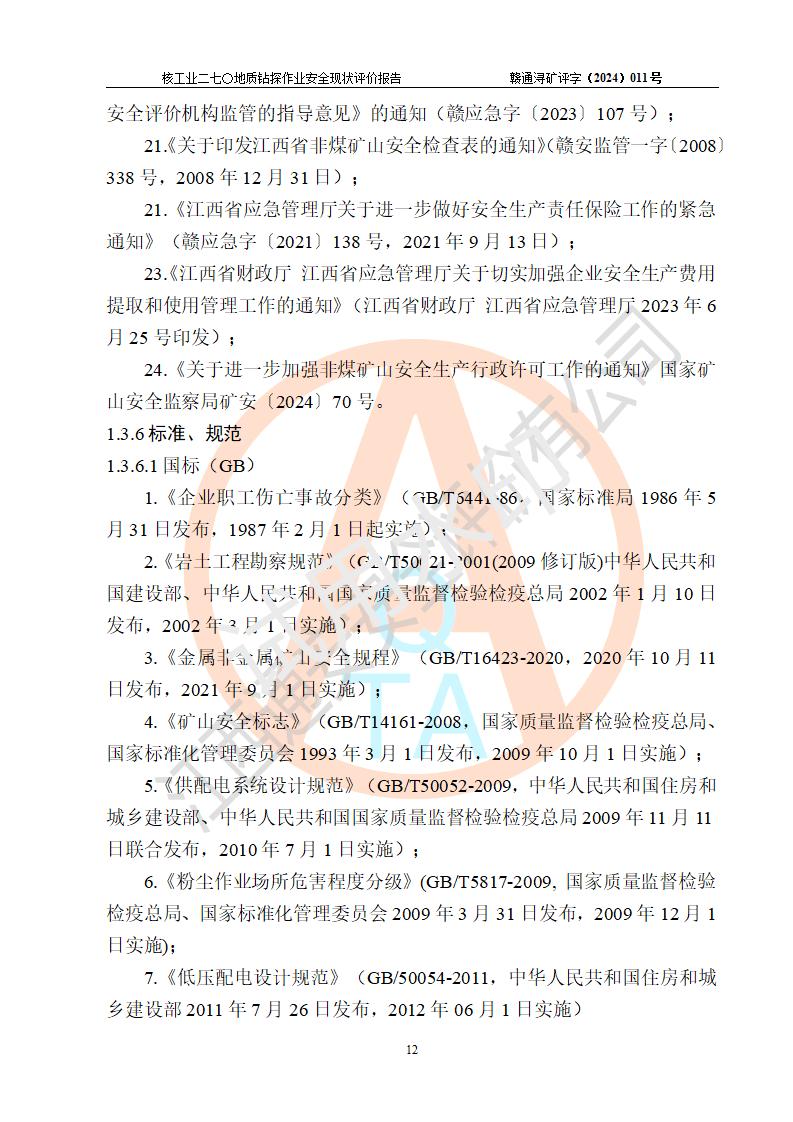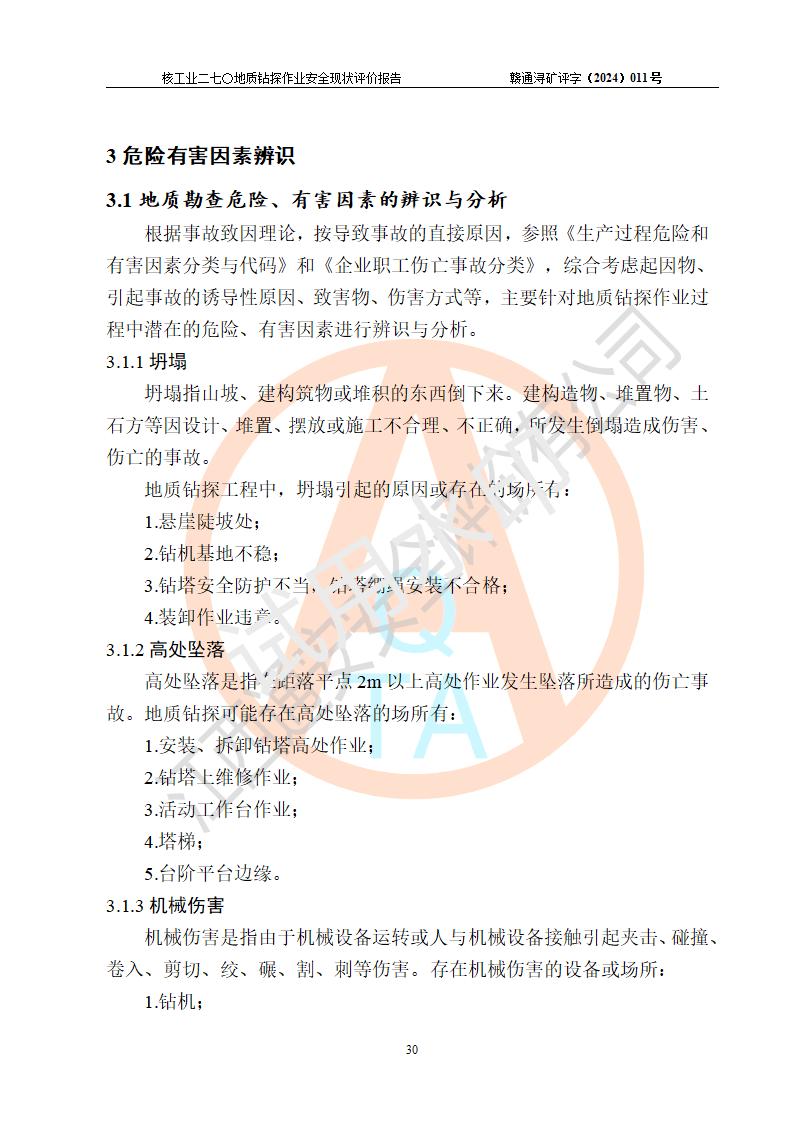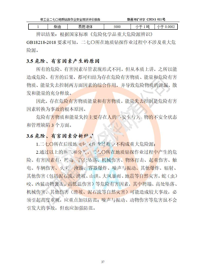 核工业二七〇研究所地质钻探作业安全现状评价报告