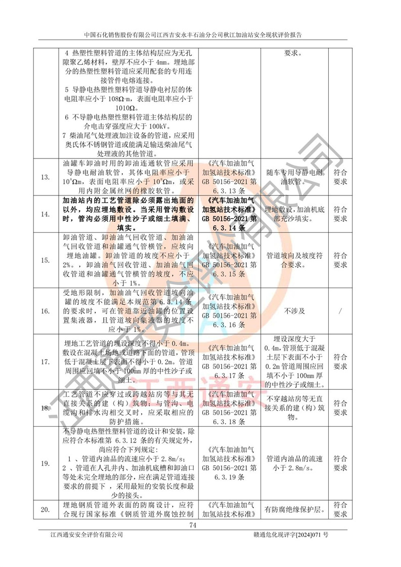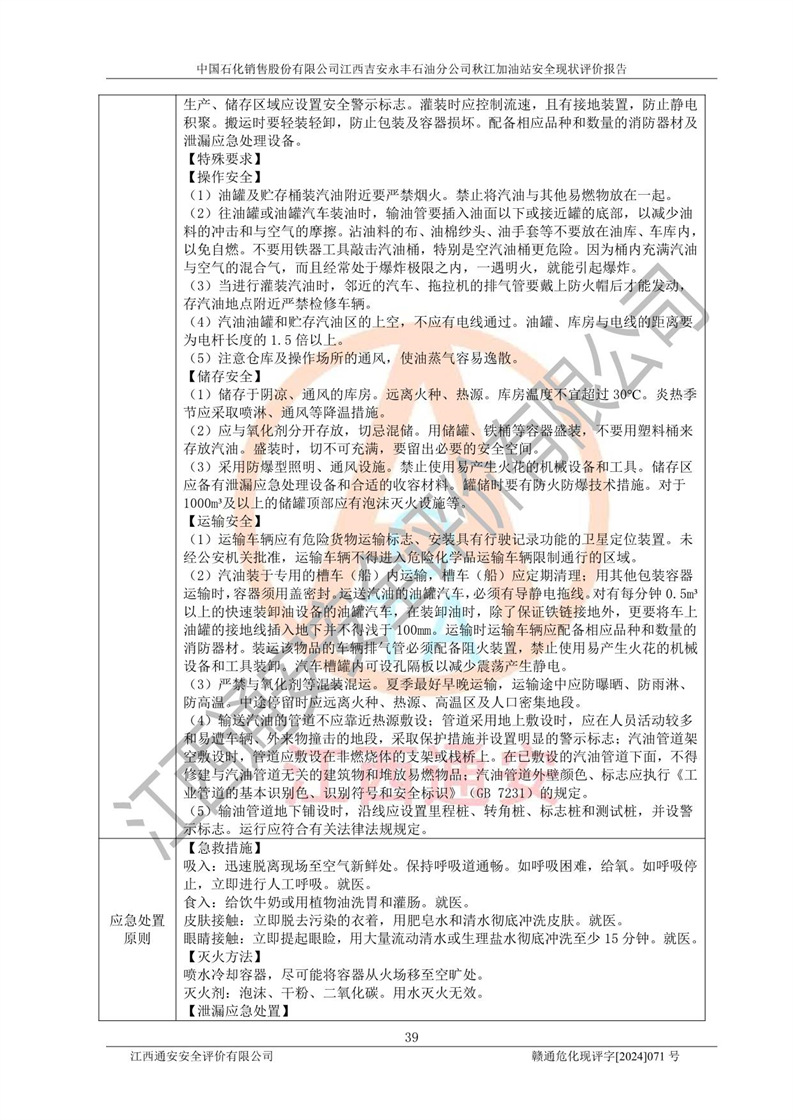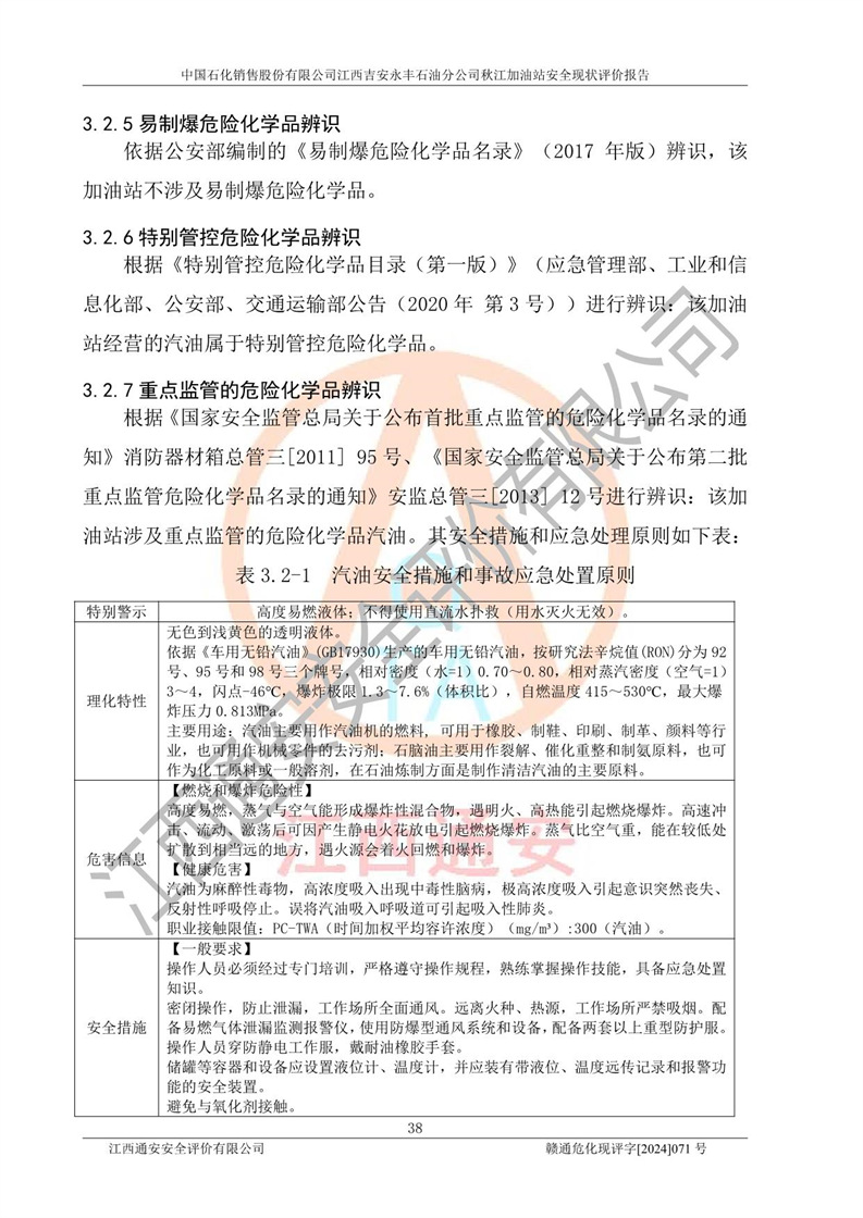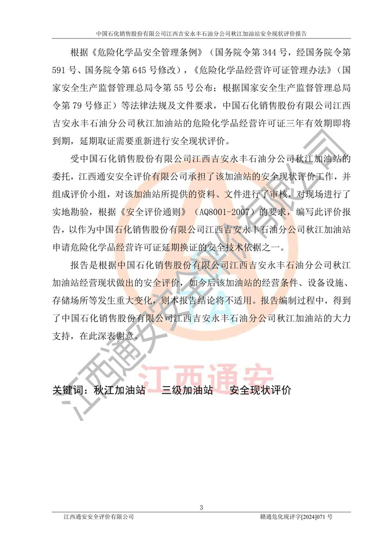 评价报告名称 | 中国石化销售股份有限公司江西吉安永丰石油分公司秋江加油站安全现状评价报告 | |||