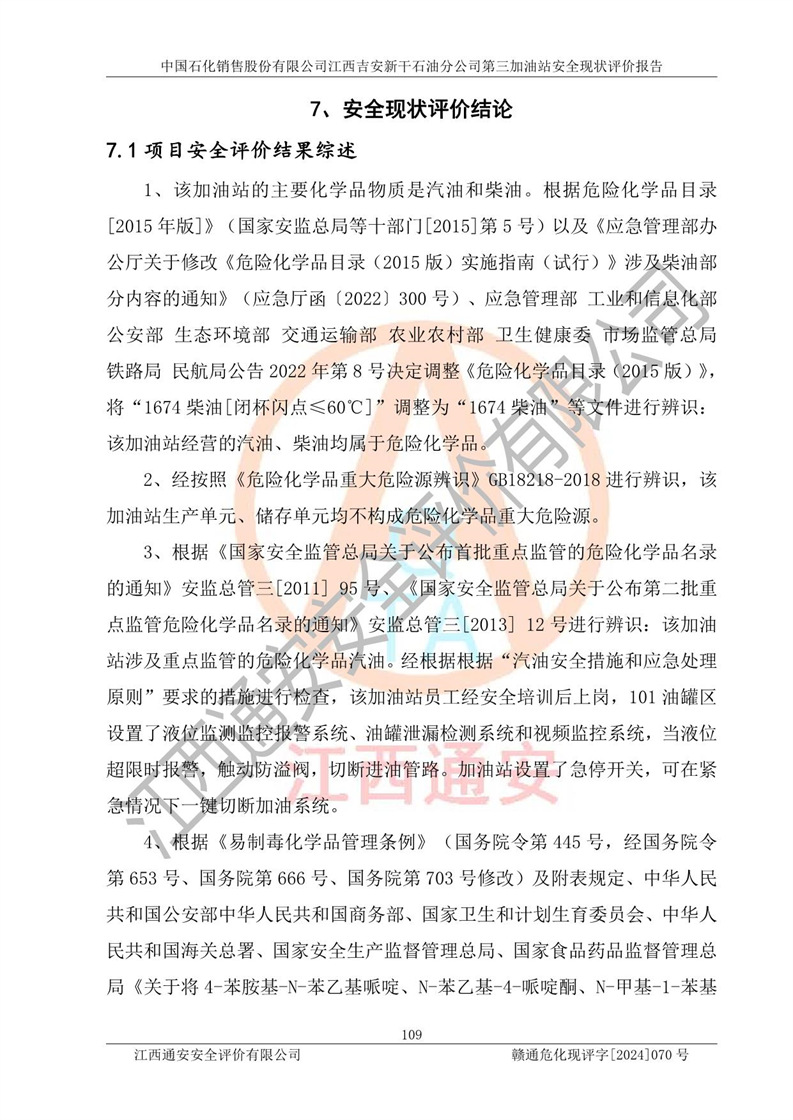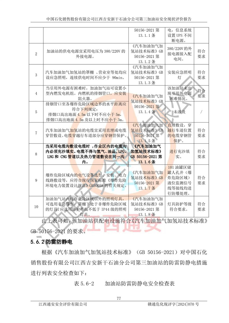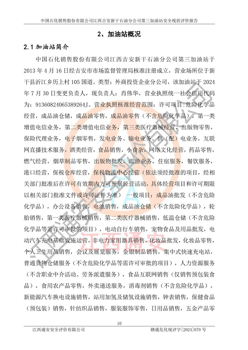 项目名称 | 中国石化销售股份有限公司江西吉安新干石油分公司第三加油站 安全现状评价报告 | ||||