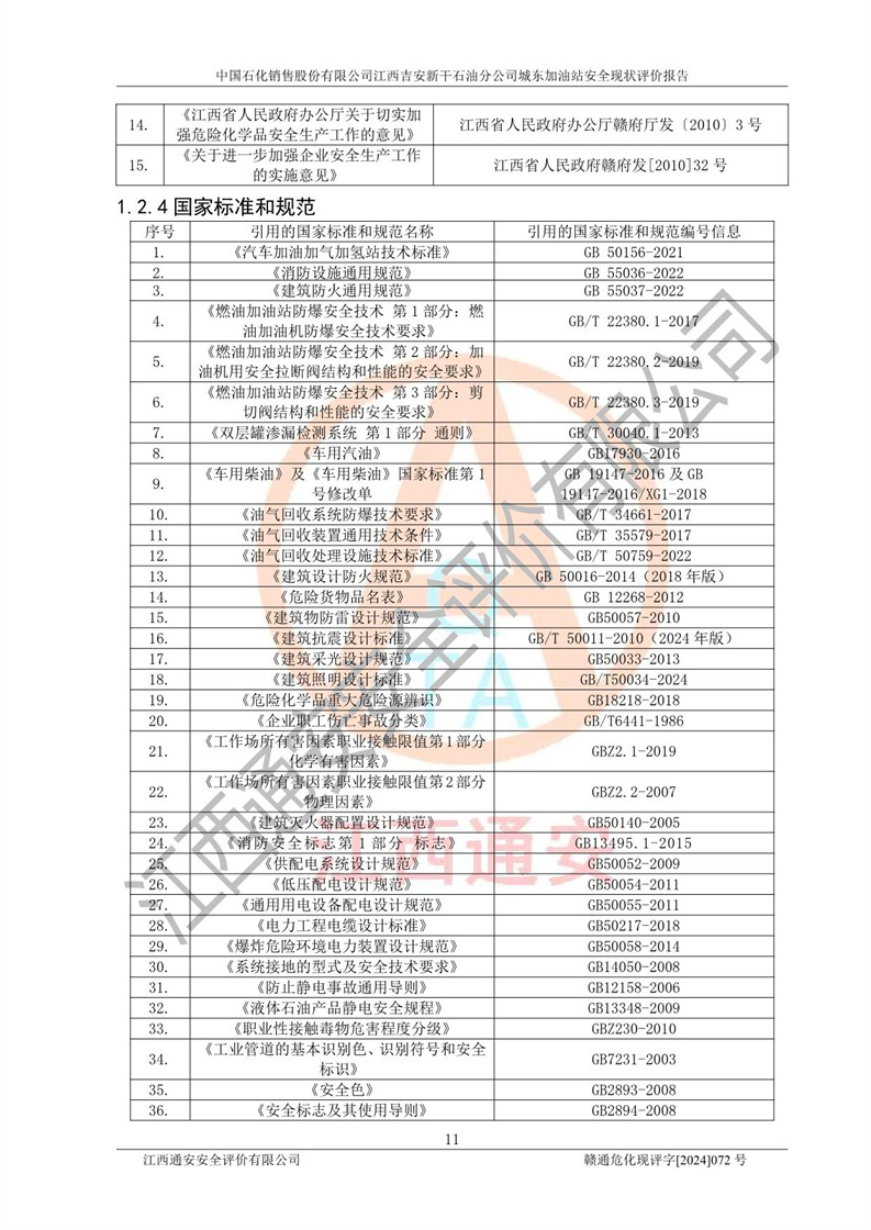 评价报告名称 | 中国石化销售股份有限公司江西吉安新干石油分公司城东加油站安全现状评价报告 | |||