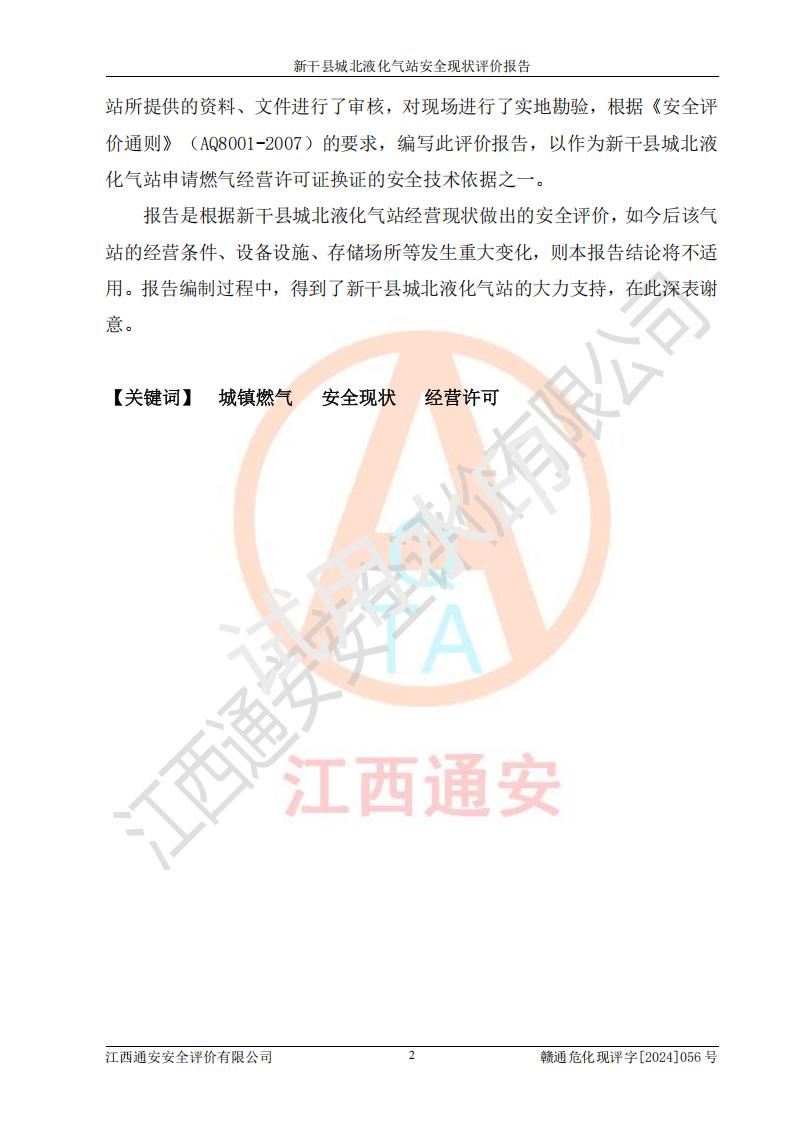 项目名称 | 新干县城北液化气站安全现状评价报告 | ||||