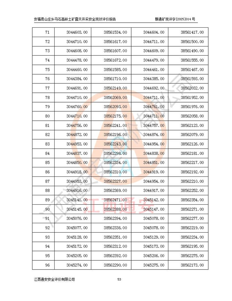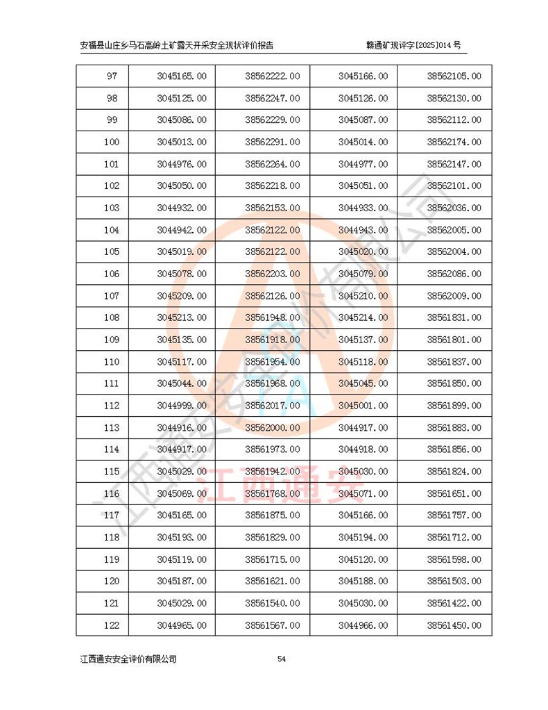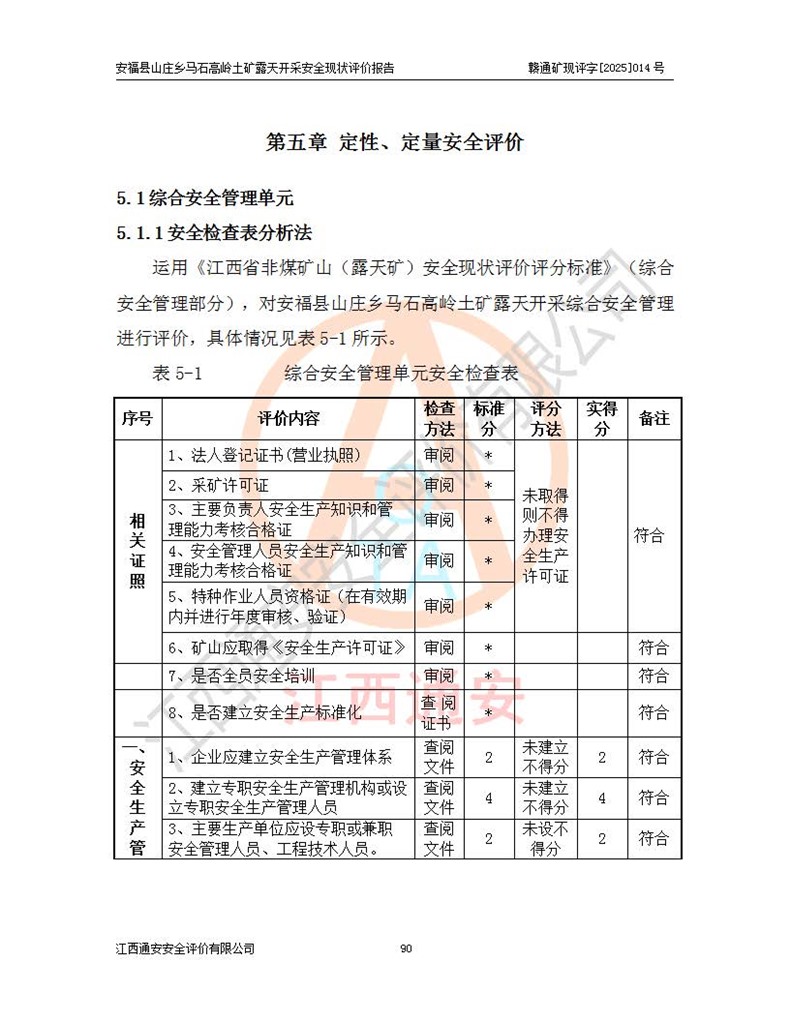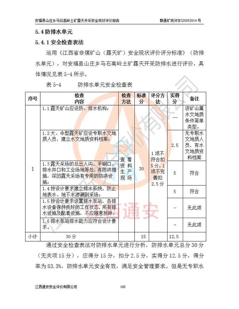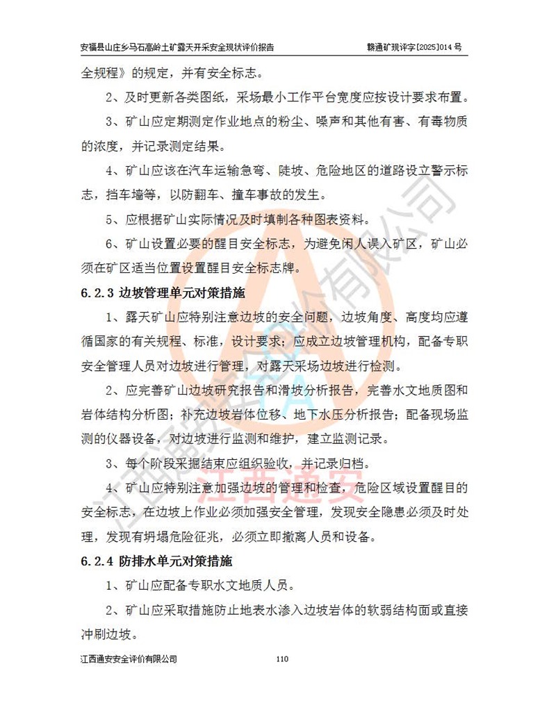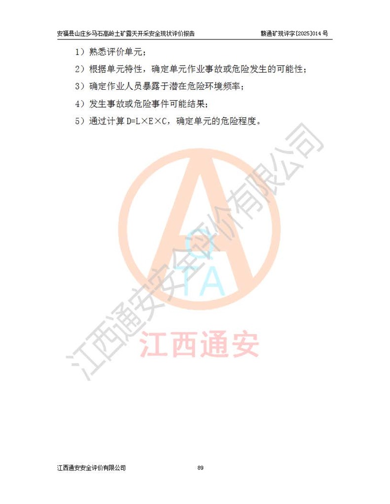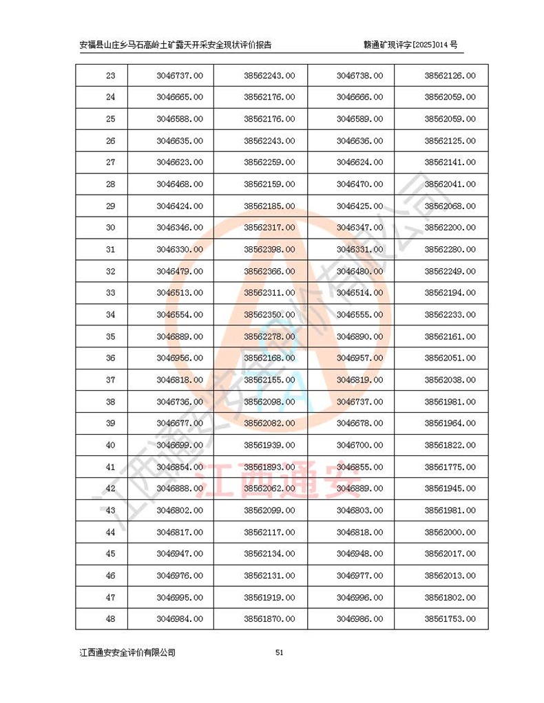 安福县福吉矿业有限公司成立于2008年7月8日,地址位于江西省吉安市安福县山庄乡东头村五组,注册资金:1288.66万元,营业执照统一社会信用代码:9136082969683448X,营业期限:2008年7月8日至长期,企业类型为有限责任公司(自然人独资),法定**人为刘国栋,经营范围:高岭土开采、销售;矿产品(铁矿除外)加工、销售。 安福县山庄乡马石高岭土矿为安福县福吉矿业有限公司下属露天矿山,矿区位于安福县城北北东,直距县城12°方位约15km,行政区划属安福县山庄乡管辖,矿区地理坐标(2000坐标系):东经114°37′12″~114°38′32″,北纬27°30′37″~27°32′05″。矿区中心地理坐标:东经114°37′52″,北纬 27°31′14″。矿区有3km水泥公路通往山庄乡,并与安福-分宜公路相连,距安福县城18km。 马石高岭土矿成立于2008年,生产规模为2万吨/年,矿区面积2.3642平方**,开采深度280m至155m,矿区资源于2018年重新进行了核实,2019年6月由吉安市自然资源局重新核发了采矿许可证,矿区面积由原2.3642平方**调整至1.2016平方**,开采深度由330.3m至155m,生产规模由2万吨/年变更为50万吨/年。 因矿山生产规模扩大,根据《建设项目安全设施“三同时”监督管理办法》安监总局令第36号(77号令修改)的要求,矿山应履行安全设施扩建“三同时”手续,安福县福吉矿业有限公司分别委托内蒙古吉安劳动安全评价有限责任公司和山东乾舜矿冶科技股份有限公司对马石高岭土矿扩建工程进行了安全预评价及安全设施设计。 2021年10月16日安全设施设计通过了安福县应急管理局组织的专家评审,2021年11月18日,安福县应急管理局下发了《关于安福县福吉矿业有限公司安福县山庄乡马石高岭土矿露天开采扩建工程安全设施设计审查意见》安应急字[2021]59号)。 马石高岭土矿于2021年12月开始了基建工程,期间因征地原因,设计开采范围发生了变化,2022年4月,安福县福吉矿业有限公司委托山东乾舜矿冶科技股份有限公司编制了《安福县福吉矿业有限公司安福县山庄乡马石高岭土矿露天开采扩建工程变更设计》,2022年4月24日变更设计通过了安福县应急管理局组织的专家评审,2022年5月18日,安福县应急管理局下发了《关于安福县福吉矿业有限公司安福县山庄乡马石高岭土矿露天开采扩建工程安全设施设计变更审查意见》安应急字[2022]30号)。 2022年8月,安福县山庄乡马石高岭土矿露天开采扩建工程通过验收,2022年9月9日,矿山取得了安福县应急管理局颁发的安全生产许可证,编号:(赣)FM安许证字[2022]DAF02号。**期:2022年9月9日至2025年9月8日。 2024年10月25日,安福县应急管理局现场检查时,发现安福县山庄乡马石高岭土矿存在2条违法违规行为和事故隐患,并存在5条其他问题,安福县应急管理局开具了《安全生产行政执法文书现场处理措施决定书》(安福)应急现决(2024)非煤007号,《安全生产行政执法文书责令限期整改指令书》(安福)应急责改(2024)058号;2024年11月15日,安福县应急管理局开具了《安全生产行政执法文书行政处罚决定书》(安福)应急罚(2024)非煤-4号;并处人民币贰万伍仟元罚款的行政处罚。 随着正常的生产,矿山企业发现矿区Ⅰ-2矿体西部及Ⅰ-2矿体东部的矿体难以达到工业品味的需求,经矿山企业商讨后决定:放弃对Ⅰ-2矿体西部及Ⅰ-2矿体东部的开采,仅开采Ⅰ-2矿体南部,并于2025年3月委托山东乾舜矿冶科技股份有限公司编制了《安福县福吉矿业有限公司安福县山庄乡马石高岭土矿露天开采Ⅰ-2矿体开采设计》。 依照《非煤矿矿山企业安全生产许可证延期换证工作》的通知,根据***《安全生产许可证条例》、《江西省安全生产条例》、《非煤矿山安全生产许可证实施办法》、《江西省非煤矿矿山企业安全生产许可证办法》规定及非煤矿山安全评价导则的要求,受安福县福吉矿业有限公司的委托,我公司承担安福县山庄乡马石高岭土矿露天开采延期换证的安全现状评价工作。  |
