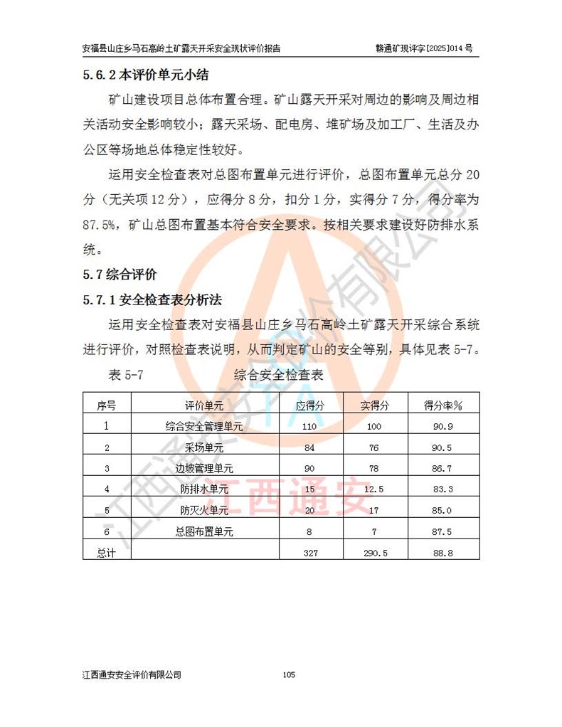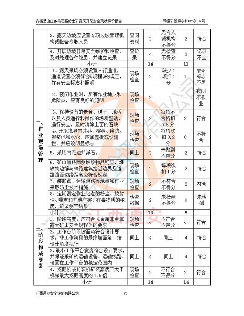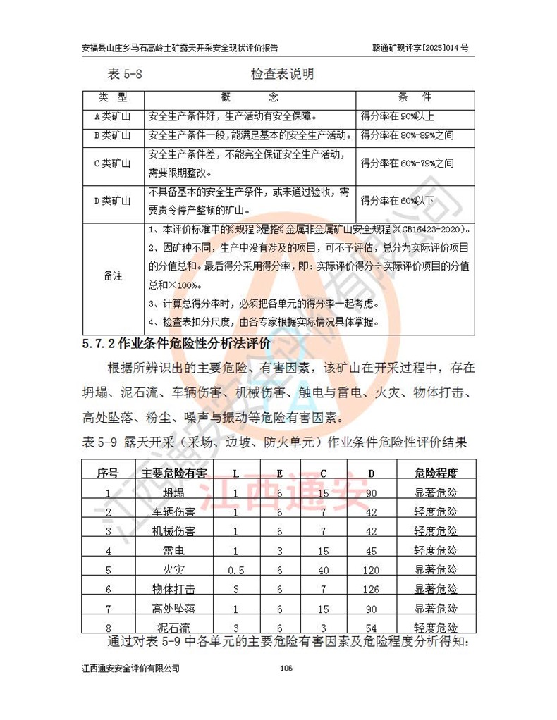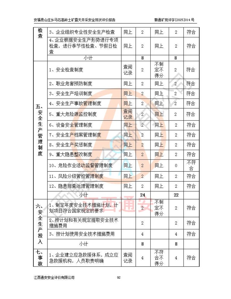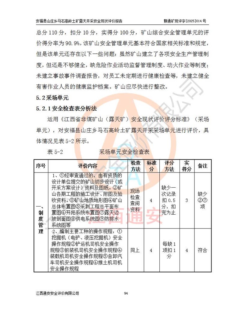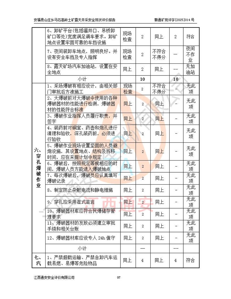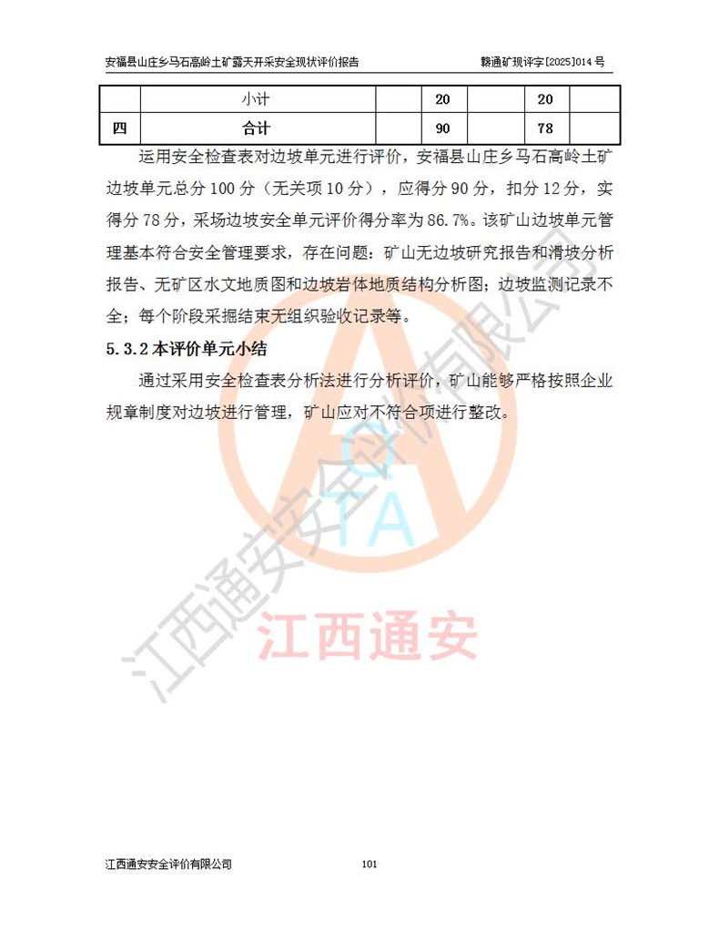 安福县福吉矿业有限公司成立于2008年7月8日,地址位于江西省吉安市安福县山庄乡东头村五组,注册资金:1288.66万元,营业执照统一社会信用代码:9136082969683448X,营业期限:2008年7月8日至长期,企业类型为有限责任公司(自然人独资),法定**人为刘国栋,经营范围:高岭土开采、销售;矿产品(铁矿除外)加工、销售。 安福县山庄乡马石高岭土矿为安福县福吉矿业有限公司下属露天矿山,矿区位于安福县城北北东,直距县城12°方位约15km,行政区划属安福县山庄乡管辖,矿区地理坐标(2000坐标系):东经114°37′12″~114°38′32″,北纬27°30′37″~27°32′05″。矿区中心地理坐标:东经114°37′52″,北纬 27°31′14″。矿区有3km水泥公路通往山庄乡,并与安福-分宜公路相连,距安福县城18km。 马石高岭土矿成立于2008年,生产规模为2万吨/年,矿区面积2.3642平方**,开采深度280m至155m,矿区资源于2018年重新进行了核实,2019年6月由吉安市自然资源局重新核发了采矿许可证,矿区面积由原2.3642平方**调整至1.2016平方**,开采深度由330.3m至155m,生产规模由2万吨/年变更为50万吨/年。 因矿山生产规模扩大,根据《建设项目安全设施“三同时”监督管理办法》安监总局令第36号(77号令修改)的要求,矿山应履行安全设施扩建“三同时”手续,安福县福吉矿业有限公司分别委托内蒙古吉安劳动安全评价有限责任公司和山东乾舜矿冶科技股份有限公司对马石高岭土矿扩建工程进行了安全预评价及安全设施设计。 2021年10月16日安全设施设计通过了安福县应急管理局组织的专家评审,2021年11月18日,安福县应急管理局下发了《关于安福县福吉矿业有限公司安福县山庄乡马石高岭土矿露天开采扩建工程安全设施设计审查意见》安应急字[2021]59号)。 马石高岭土矿于2021年12月开始了基建工程,期间因征地原因,设计开采范围发生了变化,2022年4月,安福县福吉矿业有限公司委托山东乾舜矿冶科技股份有限公司编制了《安福县福吉矿业有限公司安福县山庄乡马石高岭土矿露天开采扩建工程变更设计》,2022年4月24日变更设计通过了安福县应急管理局组织的专家评审,2022年5月18日,安福县应急管理局下发了《关于安福县福吉矿业有限公司安福县山庄乡马石高岭土矿露天开采扩建工程安全设施设计变更审查意见》安应急字[2022]30号)。 2022年8月,安福县山庄乡马石高岭土矿露天开采扩建工程通过验收,2022年9月9日,矿山取得了安福县应急管理局颁发的安全生产许可证,编号:(赣)FM安许证字[2022]DAF02号。**期:2022年9月9日至2025年9月8日。 2024年10月25日,安福县应急管理局现场检查时,发现安福县山庄乡马石高岭土矿存在2条违法违规行为和事故隐患,并存在5条其他问题,安福县应急管理局开具了《安全生产行政执法文书现场处理措施决定书》(安福)应急现决(2024)非煤007号,《安全生产行政执法文书责令限期整改指令书》(安福)应急责改(2024)058号;2024年11月15日,安福县应急管理局开具了《安全生产行政执法文书行政处罚决定书》(安福)应急罚(2024)非煤-4号;并处人民币贰万伍仟元罚款的行政处罚。 随着正常的生产,矿山企业发现矿区Ⅰ-2矿体西部及Ⅰ-2矿体东部的矿体难以达到工业品味的需求,经矿山企业商讨后决定:放弃对Ⅰ-2矿体西部及Ⅰ-2矿体东部的开采,仅开采Ⅰ-2矿体南部,并于2025年3月委托山东乾舜矿冶科技股份有限公司编制了《安福县福吉矿业有限公司安福县山庄乡马石高岭土矿露天开采Ⅰ-2矿体开采设计》。 依照《非煤矿矿山企业安全生产许可证延期换证工作》的通知,根据***《安全生产许可证条例》、《江西省安全生产条例》、《非煤矿山安全生产许可证实施办法》、《江西省非煤矿矿山企业安全生产许可证办法》规定及非煤矿山安全评价导则的要求,受安福县福吉矿业有限公司的委托,我公司承担安福县山庄乡马石高岭土矿露天开采延期换证的安全现状评价工作。  |
