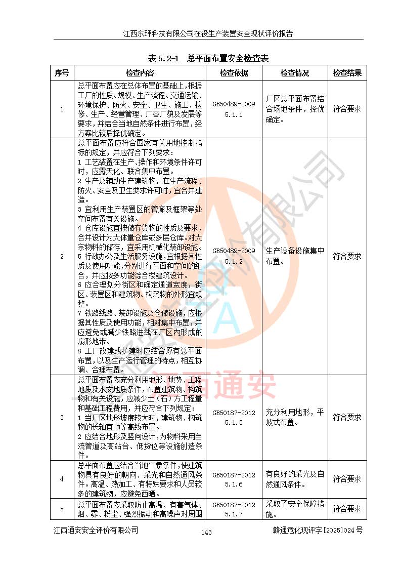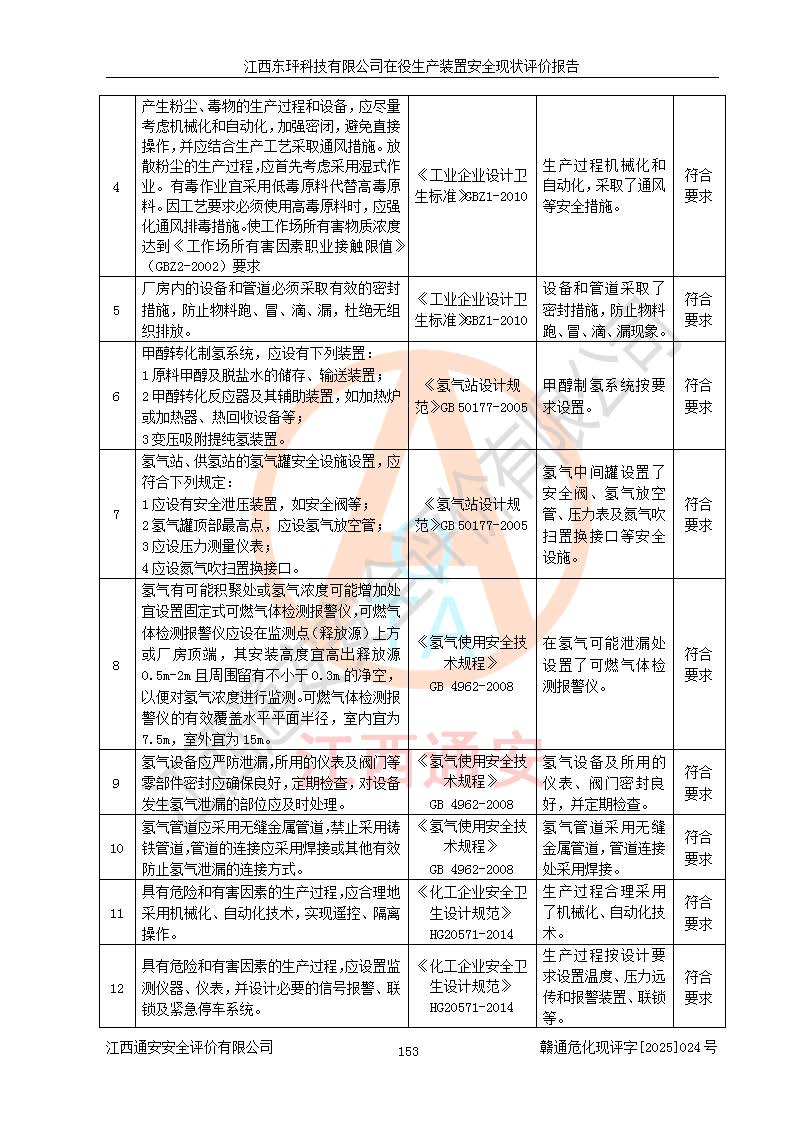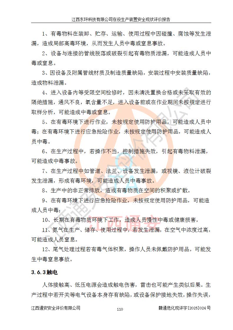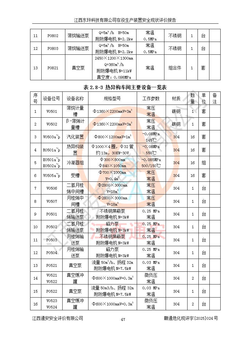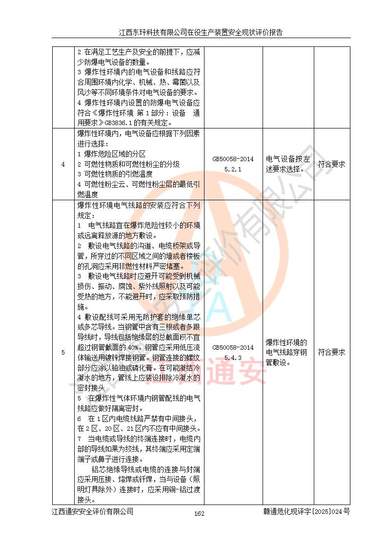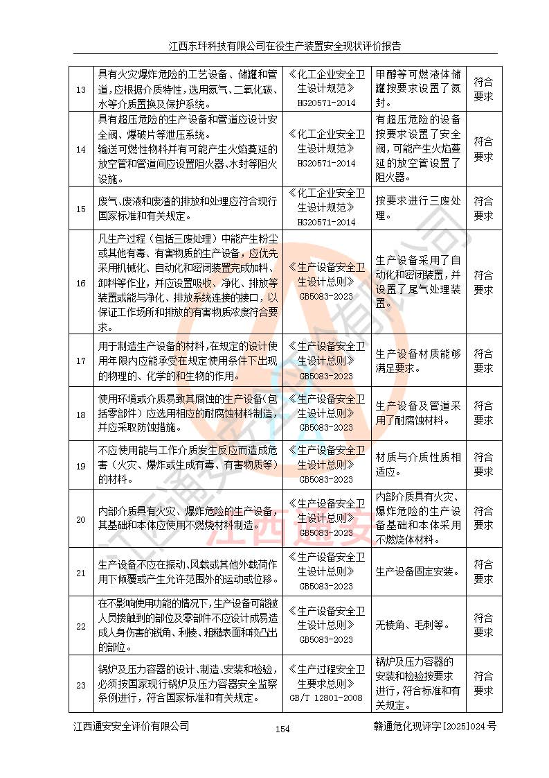 江西东玶科技有限公司位于江西省吉安市吉水县城西工业园区,法定**人为徐东,成立于2018年04月08日,注册资本叁仟贰佰叁拾万元整,经营范围为合成樟脑、α-蒎烯、β-蒎烯、二氢月桂烯(含月桂烯)、莰烯、双戊烯、氢气(中间产品)的制造加工(凭**批准证书经营);白乙酯、双萜烯等合成香料的制造加工等。 江西东玶科技有限公司2022年08月01日取得了《安全生产许可证》,许可证编号:(赣)WH安许证字[2022]1160号,许可范围为合成樟脑(2000t/a)、二氢月桂烯(1000t/a)、月桂烯(3200t/a)、莰烯(1000t/a)、双戊烯(810t/a)、双萜烯(1070t/a)、α-蒎烯(7500t/a)、β-蒎烯(3200t/a)、白乙酯(500t/a),**期为2022年08月01日至2025年07月31日。该公司2023年5月29日取得了三级安全生产标准化证书,证书编号:赣AQBWHⅢ202300036,**期至2026年5月。该公司现有员工53人,其中专职安全生产管理人员2人。 因生产经营需要,江西东玶科技有限公司实施了年产12000吨松节油深加工系列产品项目(二期),并将二氢月桂烯的设计生产规模2000t/a变更为1500t/a,减少中间产品蒎烷的消耗量,剩余的蒎烷(720t/a)作为产品销售。江西东玶科技有限公司委托深圳天阳工程设计有限公司进行了设计变更,按程序要求进行了试生产,委托评价公司编制了安全验收评价报告,并于2025年1月16日组织专家组和相关单位进行了验收。验收完成后,江西东玶科技有限公司2025年06月04日对《安全生产许可证》进行了变更,许可范围变更为合成樟脑(2000t/a)、二氢月桂烯(1500t/a)、月桂烯(3200t/a)、莰烯(1000t/a)、双戊烯(902.5t/a)、双萜烯(1200.7t/a)、α-蒎烯(7500t/a)、β-蒎烯(3200t/a)、白乙酯(500t/a)、蒎烷(中间产品,720t/a)。 江西东玶科技有限公司在役生产装置生产过程中涉及的主要原辅材料为松节油、乙酸、液碱、甲醇、碳酸钠、二甲苯、偏钛酸、甲酸、硫酸铜、雷尼镍、离子膜、天然气、氮气,中间产品为氢气、α-蒎烯、β-蒎烯、蒎烷,产品为合成樟脑、二氢月桂烯、月桂烯、莰烯、双戊烯、白乙酯、双萜烯,副产品为醋酸钠。根据《危险化学品目录》,该在役生产装置涉及的松节油、乙酸、液碱、甲醇、二甲苯、甲酸、雷尼镍、天然气(燃料)、氮气(压缩的)、柴油,中间产品α-蒎烯、β-蒎烯、氢气、蒎烷和产品中合成樟脑、二氢月桂烯、月桂烯、莰烯、双戊烯属于危险化学品。经辨识,甲醇、氢气和天然气(燃料)属于重点监管的危险化学品,甲醇属于特别管控的危险化学品,不涉及监控化学品、易制毒化学品、易制爆危险化学品、剧毒化学品和高毒物品,生产、储存单元不构成危险化学品重大危险源,涉及的加氢工艺属于重点监管的危险化工工艺。根据生产工艺特点及物料的理化特性可知,该在役生产装置生产过程中存在火灾与爆炸、中毒与窒息、触电、机械伤害、灼烫等危险有害因素。 该公司自2022年08月01日取得安全生产许可证以来,生产运行正常,未发生一般及以上生产安全事故。 |