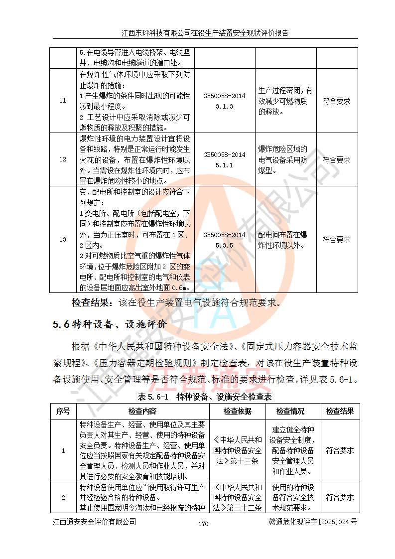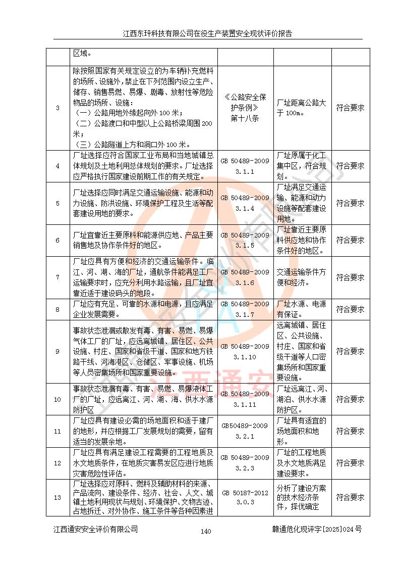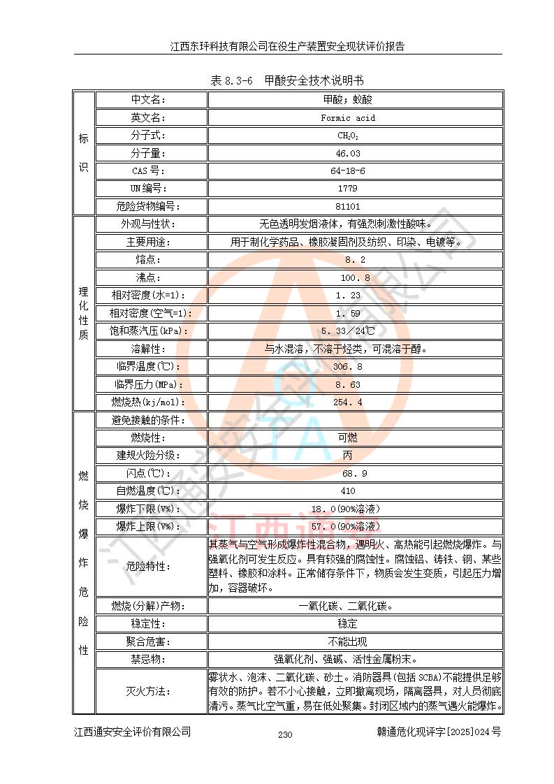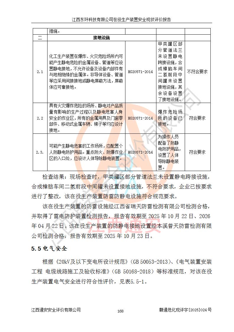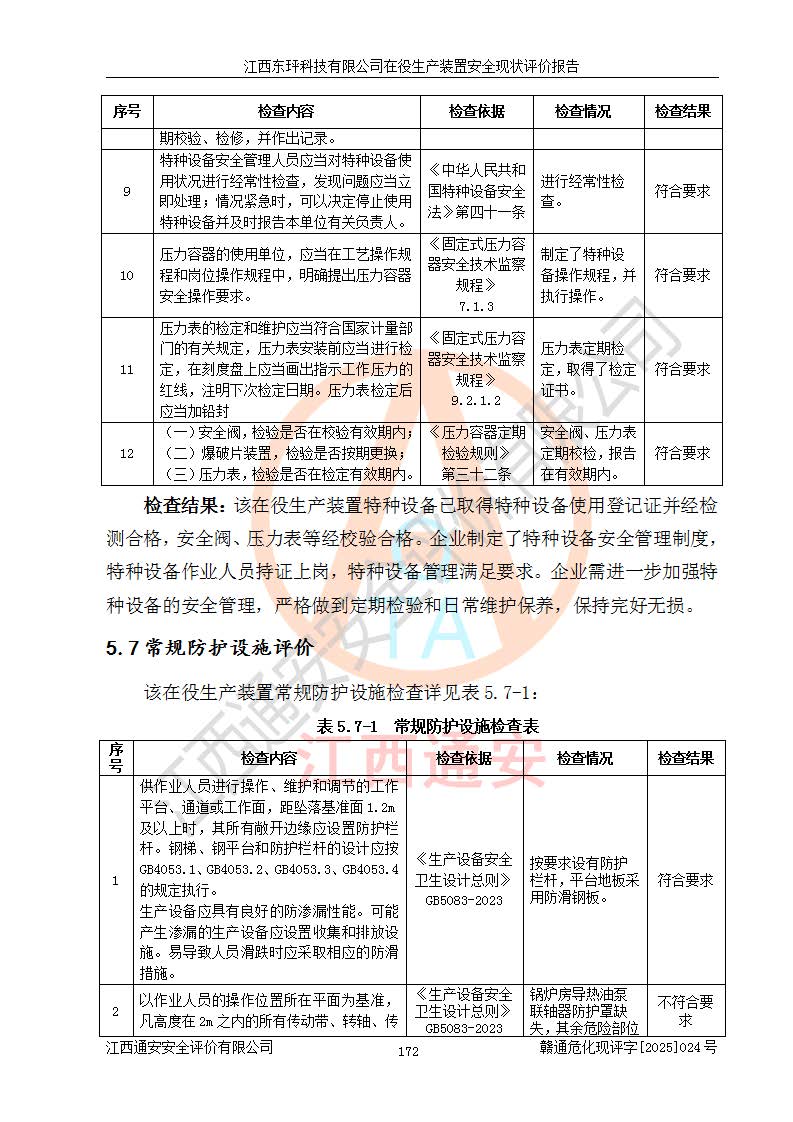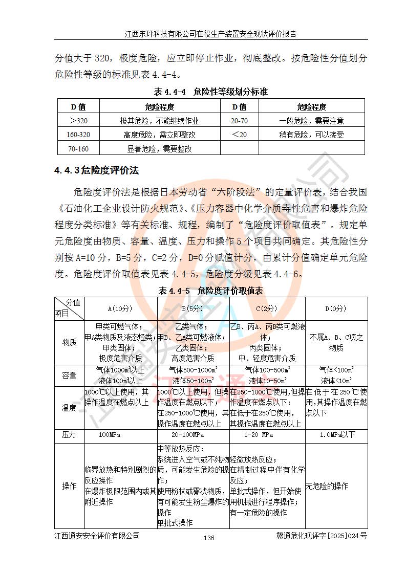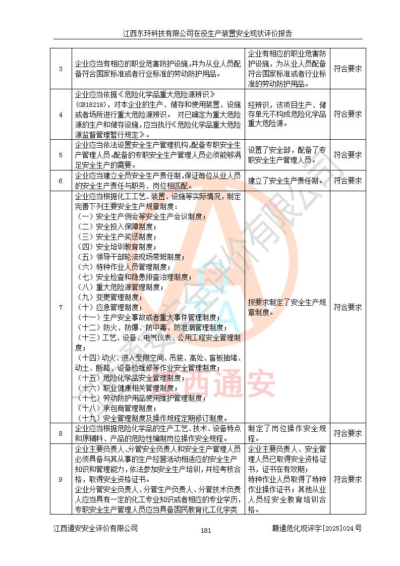 江西东玶科技有限公司位于江西省吉安市吉水县城西工业园区,法定**人为徐东,成立于2018年04月08日,注册资本叁仟贰佰叁拾万元整,经营范围为合成樟脑、α-蒎烯、β-蒎烯、二氢月桂烯(含月桂烯)、莰烯、双戊烯、氢气(中间产品)的制造加工(凭**批准证书经营);白乙酯、双萜烯等合成香料的制造加工等。 江西东玶科技有限公司2022年08月01日取得了《安全生产许可证》,许可证编号:(赣)WH安许证字[2022]1160号,许可范围为合成樟脑(2000t/a)、二氢月桂烯(1000t/a)、月桂烯(3200t/a)、莰烯(1000t/a)、双戊烯(810t/a)、双萜烯(1070t/a)、α-蒎烯(7500t/a)、β-蒎烯(3200t/a)、白乙酯(500t/a),**期为2022年08月01日至2025年07月31日。该公司2023年5月29日取得了三级安全生产标准化证书,证书编号:赣AQBWHⅢ202300036,**期至2026年5月。该公司现有员工53人,其中专职安全生产管理人员2人。 因生产经营需要,江西东玶科技有限公司实施了年产12000吨松节油深加工系列产品项目(二期),并将二氢月桂烯的设计生产规模2000t/a变更为1500t/a,减少中间产品蒎烷的消耗量,剩余的蒎烷(720t/a)作为产品销售。江西东玶科技有限公司委托深圳天阳工程设计有限公司进行了设计变更,按程序要求进行了试生产,委托评价公司编制了安全验收评价报告,并于2025年1月16日组织专家组和相关单位进行了验收。验收完成后,江西东玶科技有限公司2025年06月04日对《安全生产许可证》进行了变更,许可范围变更为合成樟脑(2000t/a)、二氢月桂烯(1500t/a)、月桂烯(3200t/a)、莰烯(1000t/a)、双戊烯(902.5t/a)、双萜烯(1200.7t/a)、α-蒎烯(7500t/a)、β-蒎烯(3200t/a)、白乙酯(500t/a)、蒎烷(中间产品,720t/a)。 江西东玶科技有限公司在役生产装置生产过程中涉及的主要原辅材料为松节油、乙酸、液碱、甲醇、碳酸钠、二甲苯、偏钛酸、甲酸、硫酸铜、雷尼镍、离子膜、天然气、氮气,中间产品为氢气、α-蒎烯、β-蒎烯、蒎烷,产品为合成樟脑、二氢月桂烯、月桂烯、莰烯、双戊烯、白乙酯、双萜烯,副产品为醋酸钠。根据《危险化学品目录》,该在役生产装置涉及的松节油、乙酸、液碱、甲醇、二甲苯、甲酸、雷尼镍、天然气(燃料)、氮气(压缩的)、柴油,中间产品α-蒎烯、β-蒎烯、氢气、蒎烷和产品中合成樟脑、二氢月桂烯、月桂烯、莰烯、双戊烯属于危险化学品。经辨识,甲醇、氢气和天然气(燃料)属于重点监管的危险化学品,甲醇属于特别管控的危险化学品,不涉及监控化学品、易制毒化学品、易制爆危险化学品、剧毒化学品和高毒物品,生产、储存单元不构成危险化学品重大危险源,涉及的加氢工艺属于重点监管的危险化工工艺。根据生产工艺特点及物料的理化特性可知,该在役生产装置生产过程中存在火灾与爆炸、中毒与窒息、触电、机械伤害、灼烫等危险有害因素。 该公司自2022年08月01日取得安全生产许可证以来,生产运行正常,未发生一般及以上生产安全事故。 |