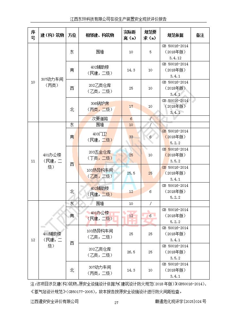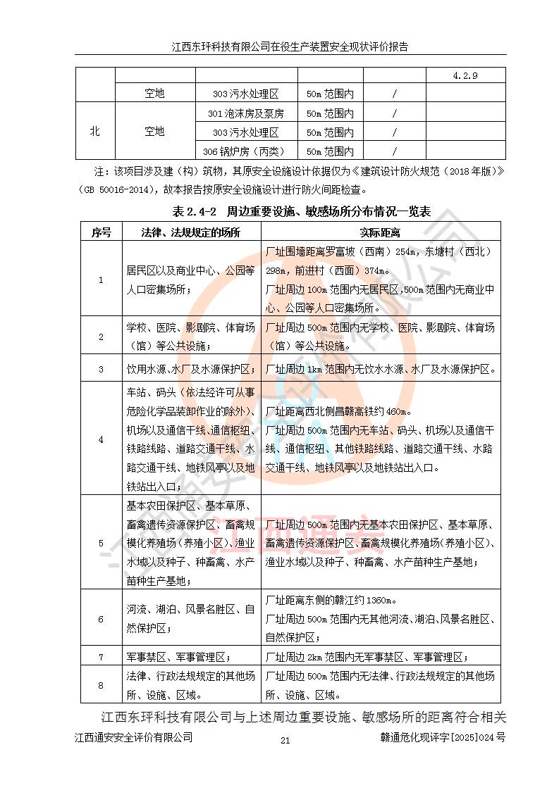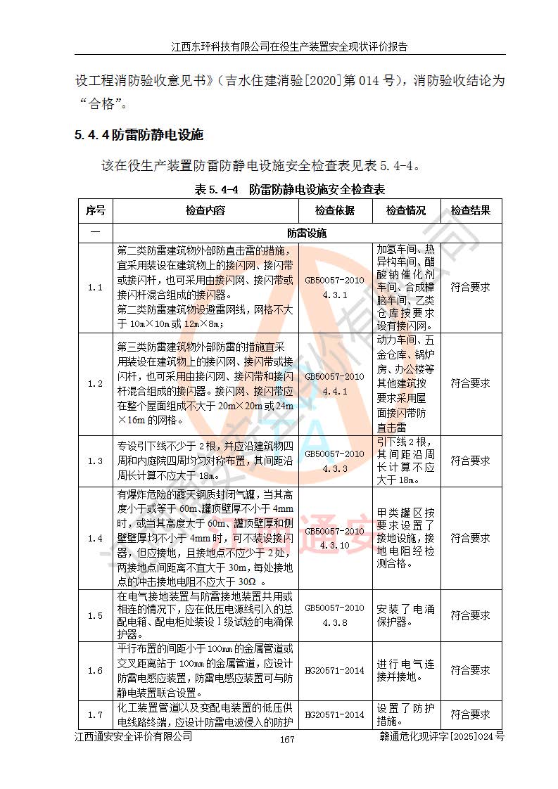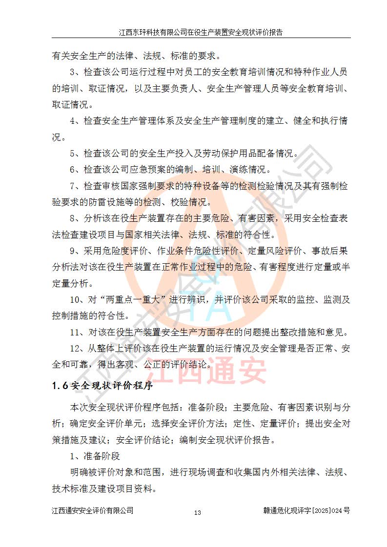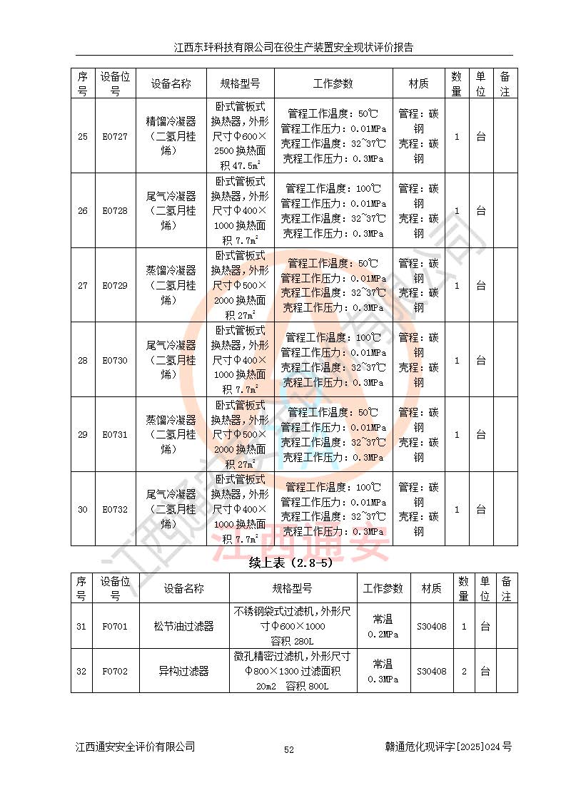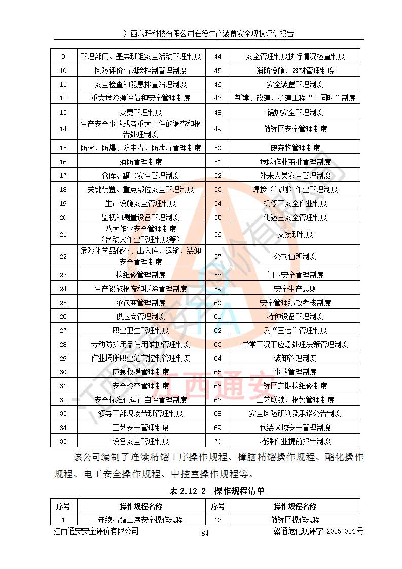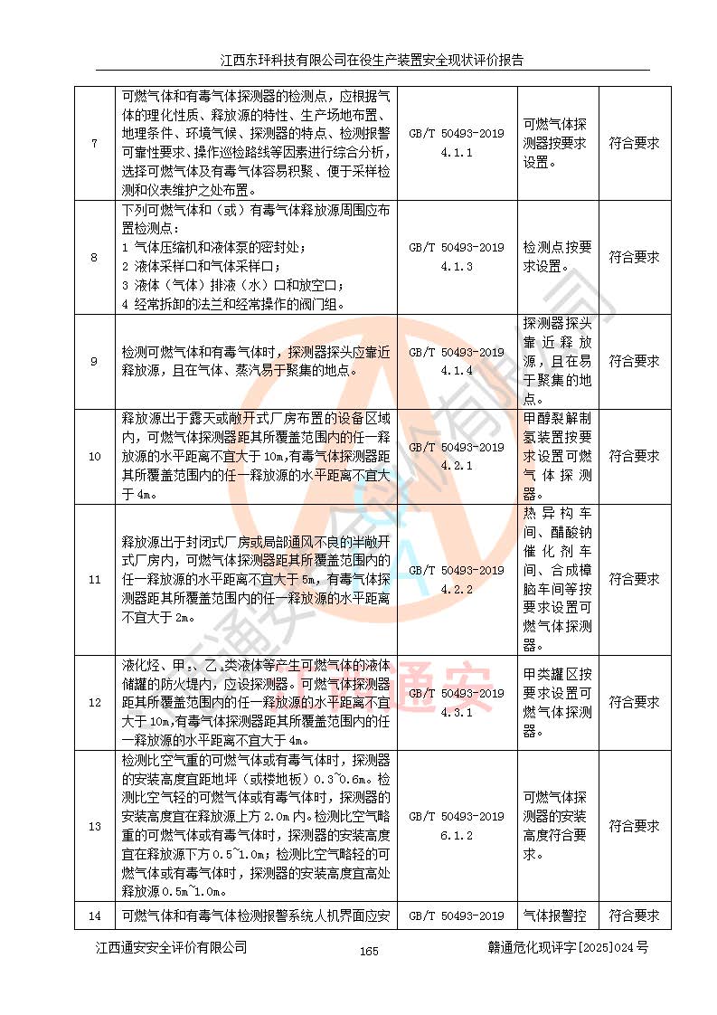 江西东玶科技有限公司位于江西省吉安市吉水县城西工业园区,法定**人为徐东,成立于2018年04月08日,注册资本叁仟贰佰叁拾万元整,经营范围为合成樟脑、α-蒎烯、β-蒎烯、二氢月桂烯(含月桂烯)、莰烯、双戊烯、氢气(中间产品)的制造加工(凭**批准证书经营);白乙酯、双萜烯等合成香料的制造加工等。 江西东玶科技有限公司2022年08月01日取得了《安全生产许可证》,许可证编号:(赣)WH安许证字[2022]1160号,许可范围为合成樟脑(2000t/a)、二氢月桂烯(1000t/a)、月桂烯(3200t/a)、莰烯(1000t/a)、双戊烯(810t/a)、双萜烯(1070t/a)、α-蒎烯(7500t/a)、β-蒎烯(3200t/a)、白乙酯(500t/a),**期为2022年08月01日至2025年07月31日。该公司2023年5月29日取得了三级安全生产标准化证书,证书编号:赣AQBWHⅢ202300036,**期至2026年5月。该公司现有员工53人,其中专职安全生产管理人员2人。 因生产经营需要,江西东玶科技有限公司实施了年产12000吨松节油深加工系列产品项目(二期),并将二氢月桂烯的设计生产规模2000t/a变更为1500t/a,减少中间产品蒎烷的消耗量,剩余的蒎烷(720t/a)作为产品销售。江西东玶科技有限公司委托深圳天阳工程设计有限公司进行了设计变更,按程序要求进行了试生产,委托评价公司编制了安全验收评价报告,并于2025年1月16日组织专家组和相关单位进行了验收。验收完成后,江西东玶科技有限公司2025年06月04日对《安全生产许可证》进行了变更,许可范围变更为合成樟脑(2000t/a)、二氢月桂烯(1500t/a)、月桂烯(3200t/a)、莰烯(1000t/a)、双戊烯(902.5t/a)、双萜烯(1200.7t/a)、α-蒎烯(7500t/a)、β-蒎烯(3200t/a)、白乙酯(500t/a)、蒎烷(中间产品,720t/a)。 江西东玶科技有限公司在役生产装置生产过程中涉及的主要原辅材料为松节油、乙酸、液碱、甲醇、碳酸钠、二甲苯、偏钛酸、甲酸、硫酸铜、雷尼镍、离子膜、天然气、氮气,中间产品为氢气、α-蒎烯、β-蒎烯、蒎烷,产品为合成樟脑、二氢月桂烯、月桂烯、莰烯、双戊烯、白乙酯、双萜烯,副产品为醋酸钠。根据《危险化学品目录》,该在役生产装置涉及的松节油、乙酸、液碱、甲醇、二甲苯、甲酸、雷尼镍、天然气(燃料)、氮气(压缩的)、柴油,中间产品α-蒎烯、β-蒎烯、氢气、蒎烷和产品中合成樟脑、二氢月桂烯、月桂烯、莰烯、双戊烯属于危险化学品。经辨识,甲醇、氢气和天然气(燃料)属于重点监管的危险化学品,甲醇属于特别管控的危险化学品,不涉及监控化学品、易制毒化学品、易制爆危险化学品、剧毒化学品和高毒物品,生产、储存单元不构成危险化学品重大危险源,涉及的加氢工艺属于重点监管的危险化工工艺。根据生产工艺特点及物料的理化特性可知,该在役生产装置生产过程中存在火灾与爆炸、中毒与窒息、触电、机械伤害、灼烫等危险有害因素。 该公司自2022年08月01日取得安全生产许可证以来,生产运行正常,未发生一般及以上生产安全事故。 |