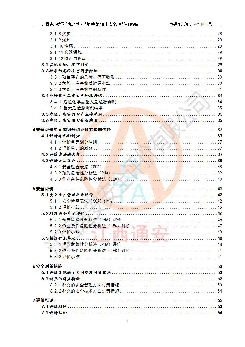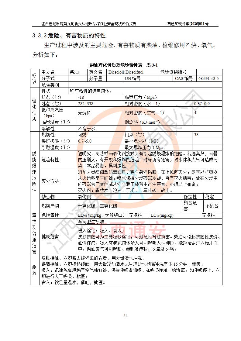 报告名称 | 江西省地质局第九地质大队地质钻探作业安全现状评价报告 | |||||