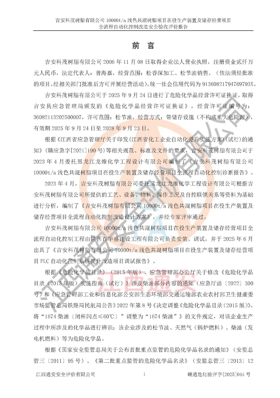 下一篇:江西优润高新材料有限公司年产10000吨纳米颜料浆生产项目安全验收评价报告