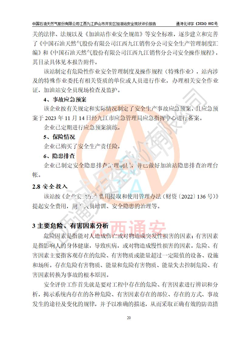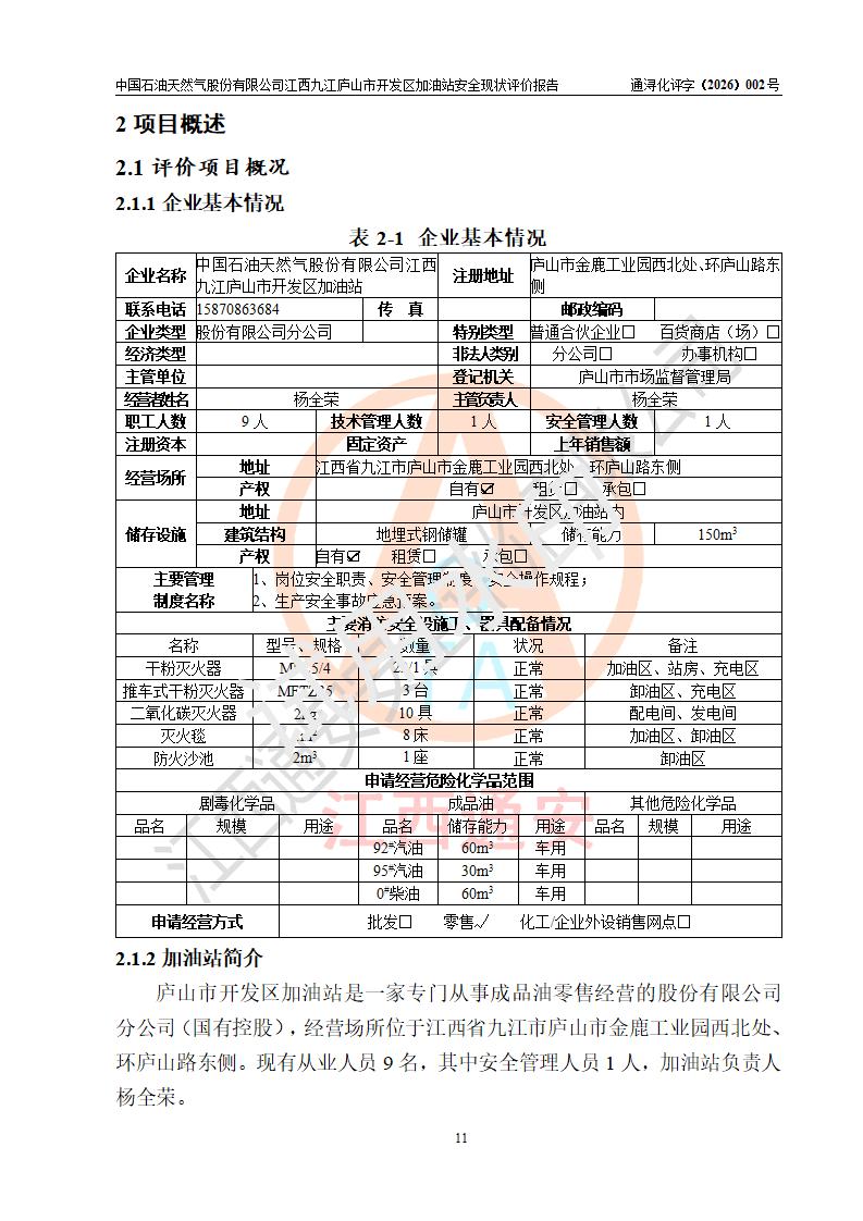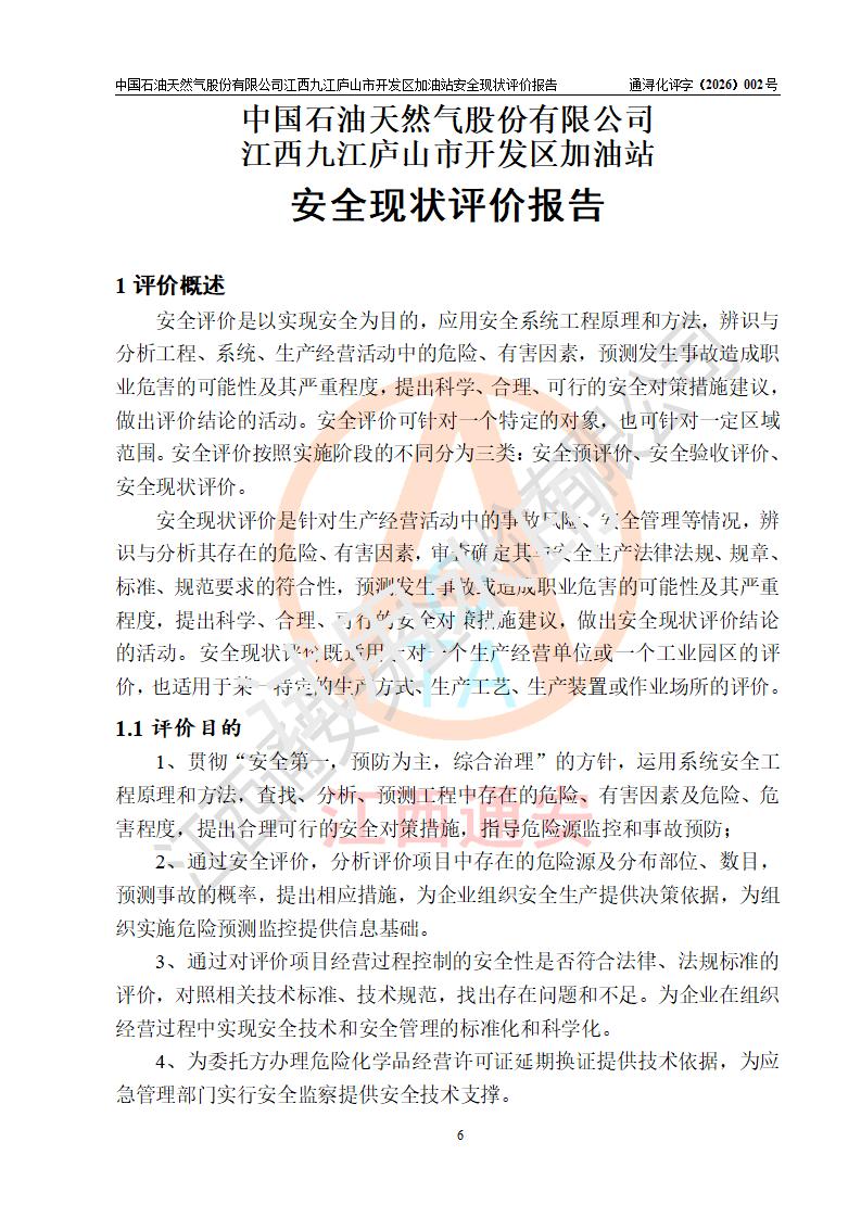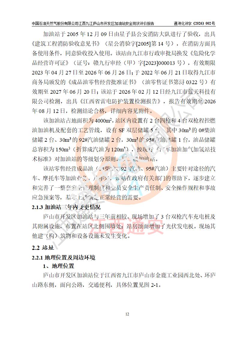 评价报告名称 | 中国石油天然气股份有限公司江西九江庐山市开发区加油站安全现状评价报告 | |||