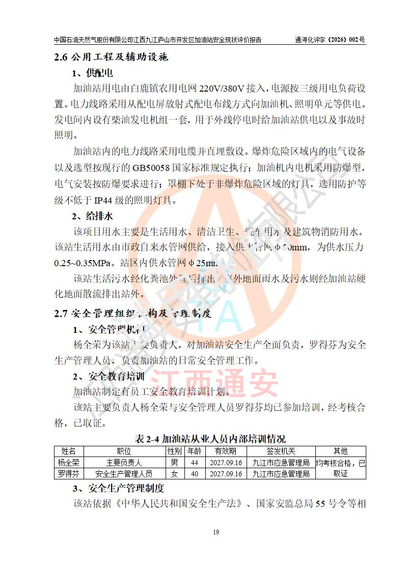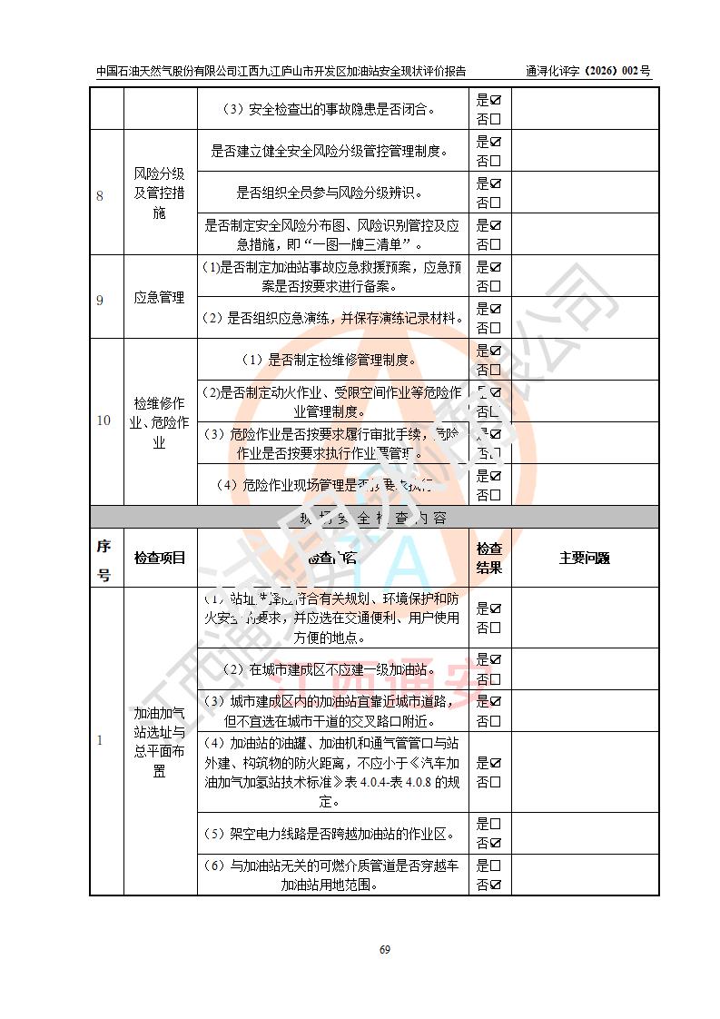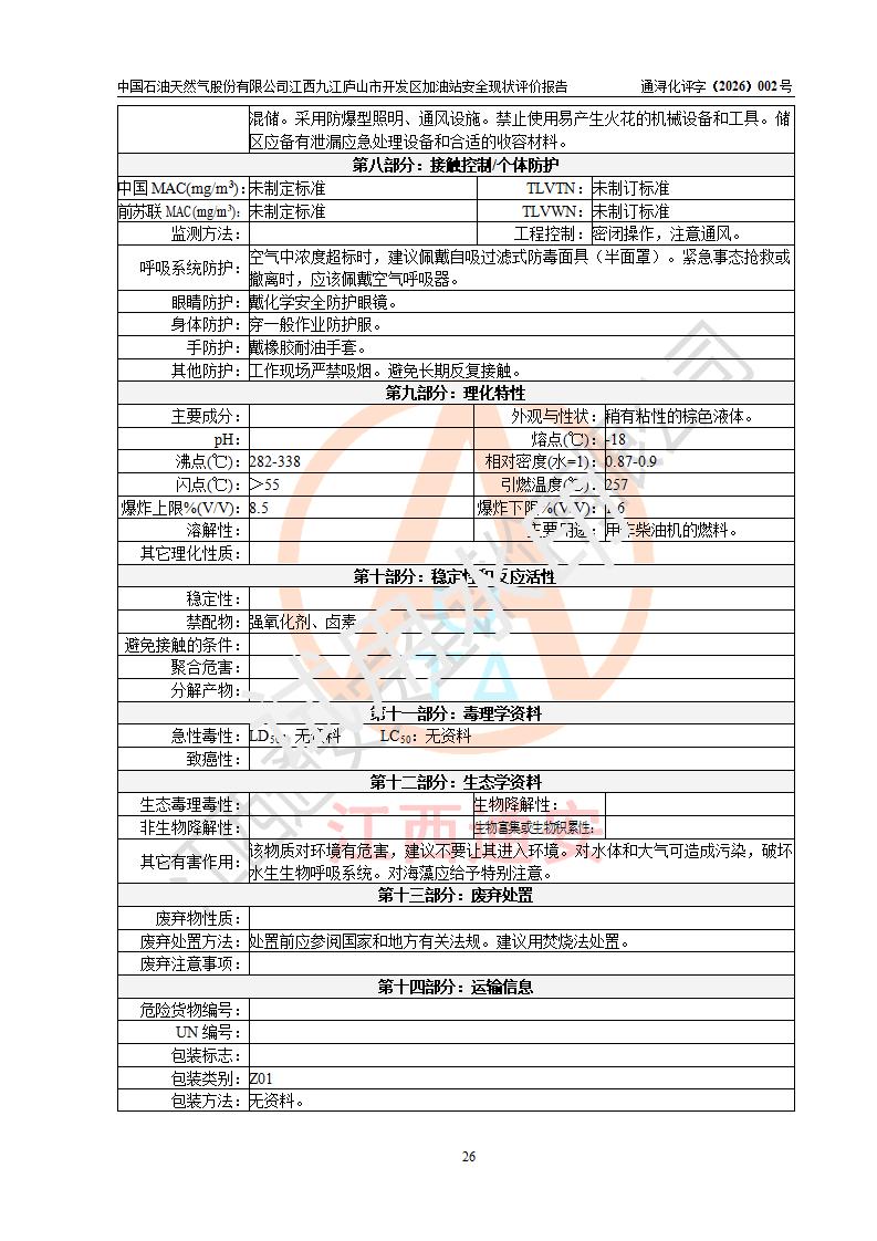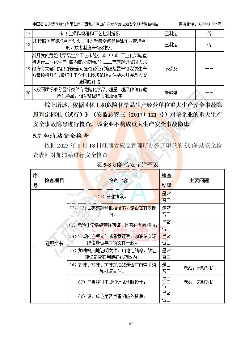 评价报告名称 | 中国石油天然气股份有限公司江西九江庐山市开发区加油站安全现状评价报告 | |||