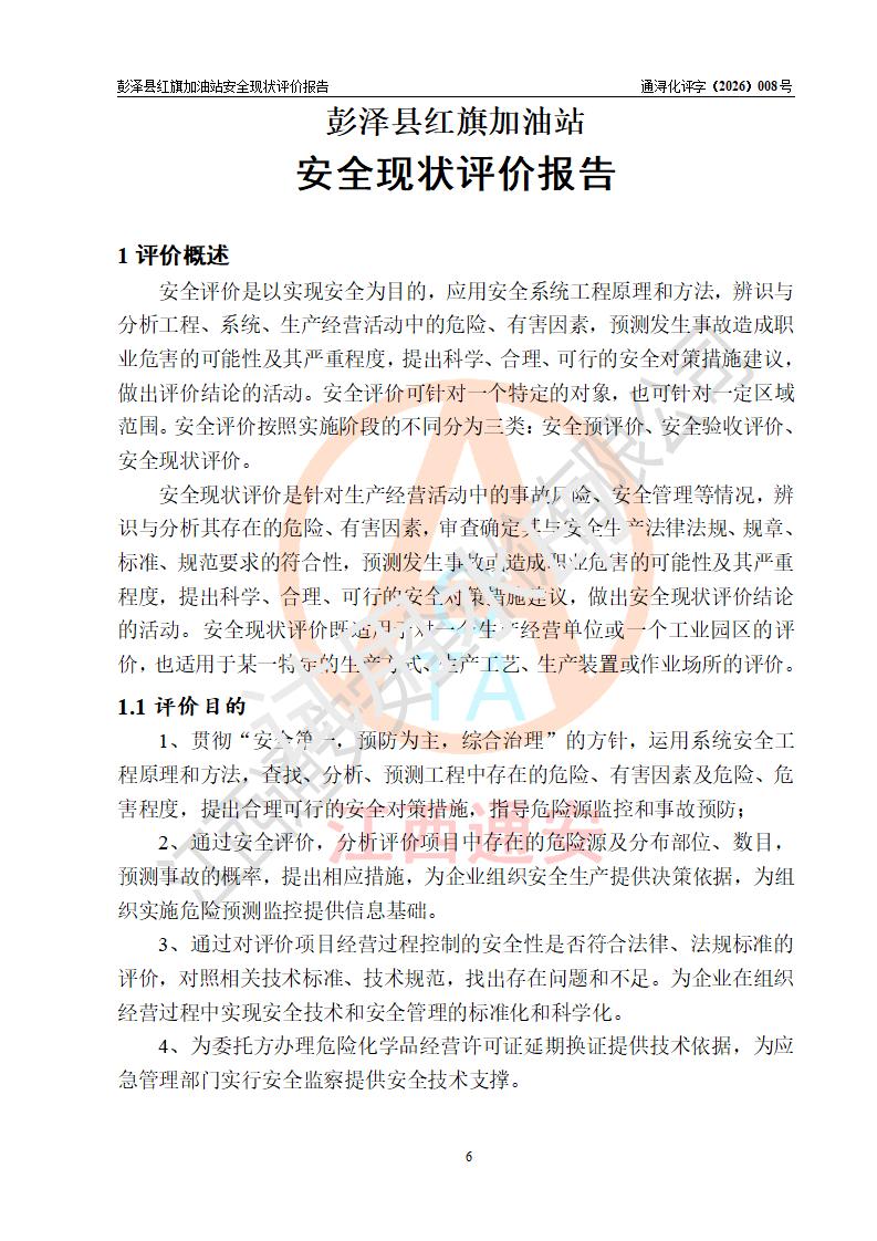 评价报告名称 | 彭泽县红旗加油站安全现状评价报告 | |||