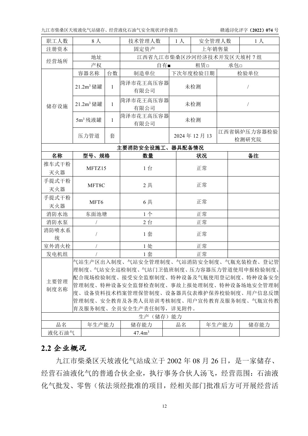 九江市柴桑区天坡液化气站~安全评价报告网上信息公开内容