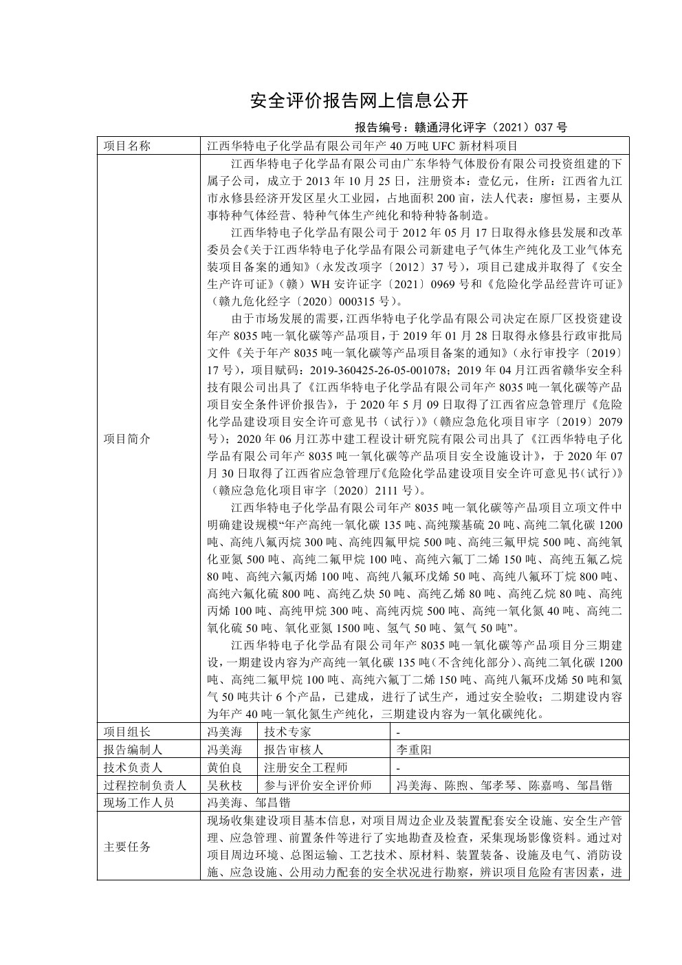 江西华特电子化学品有限公司年产40万吨UFC新材料项目