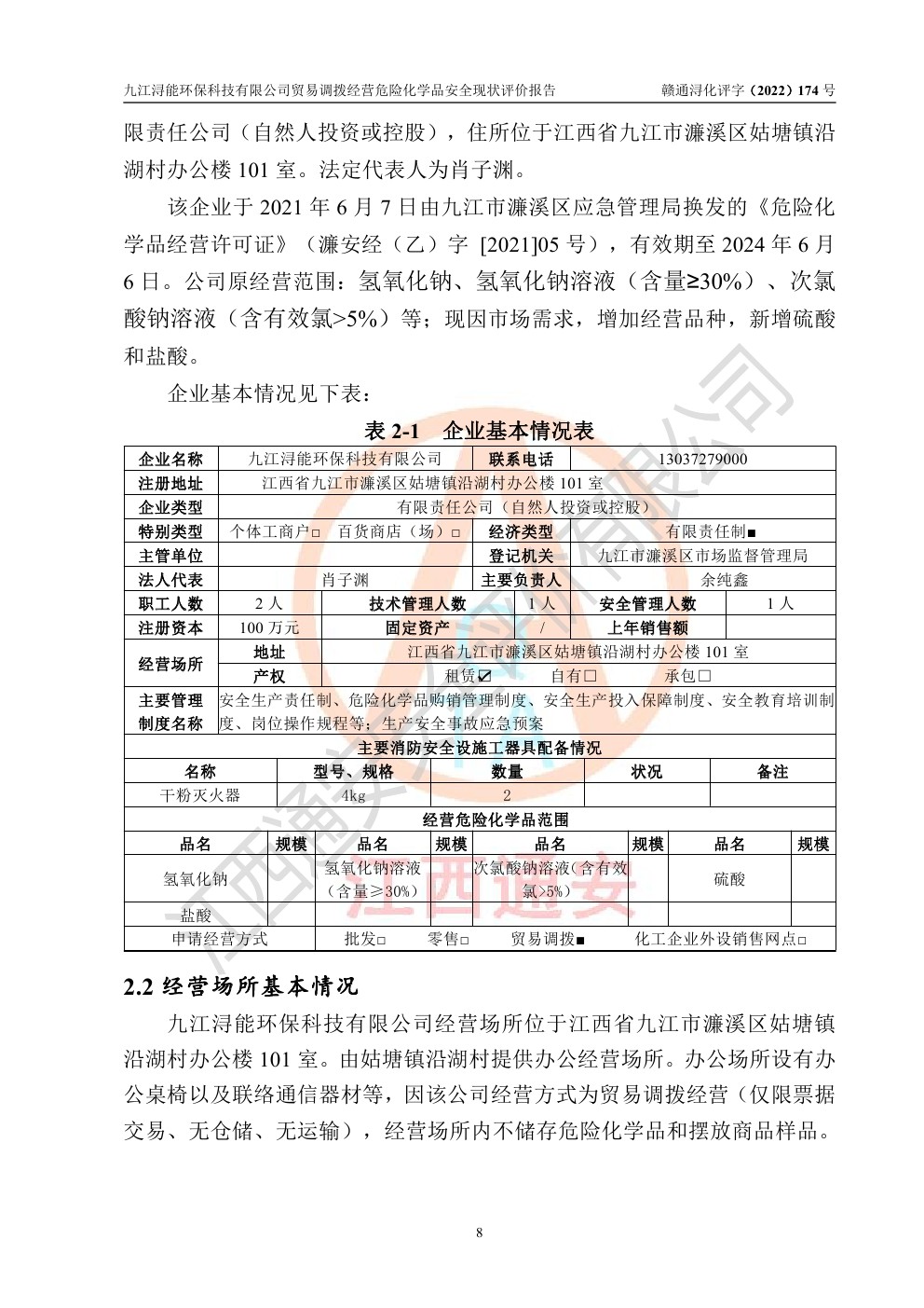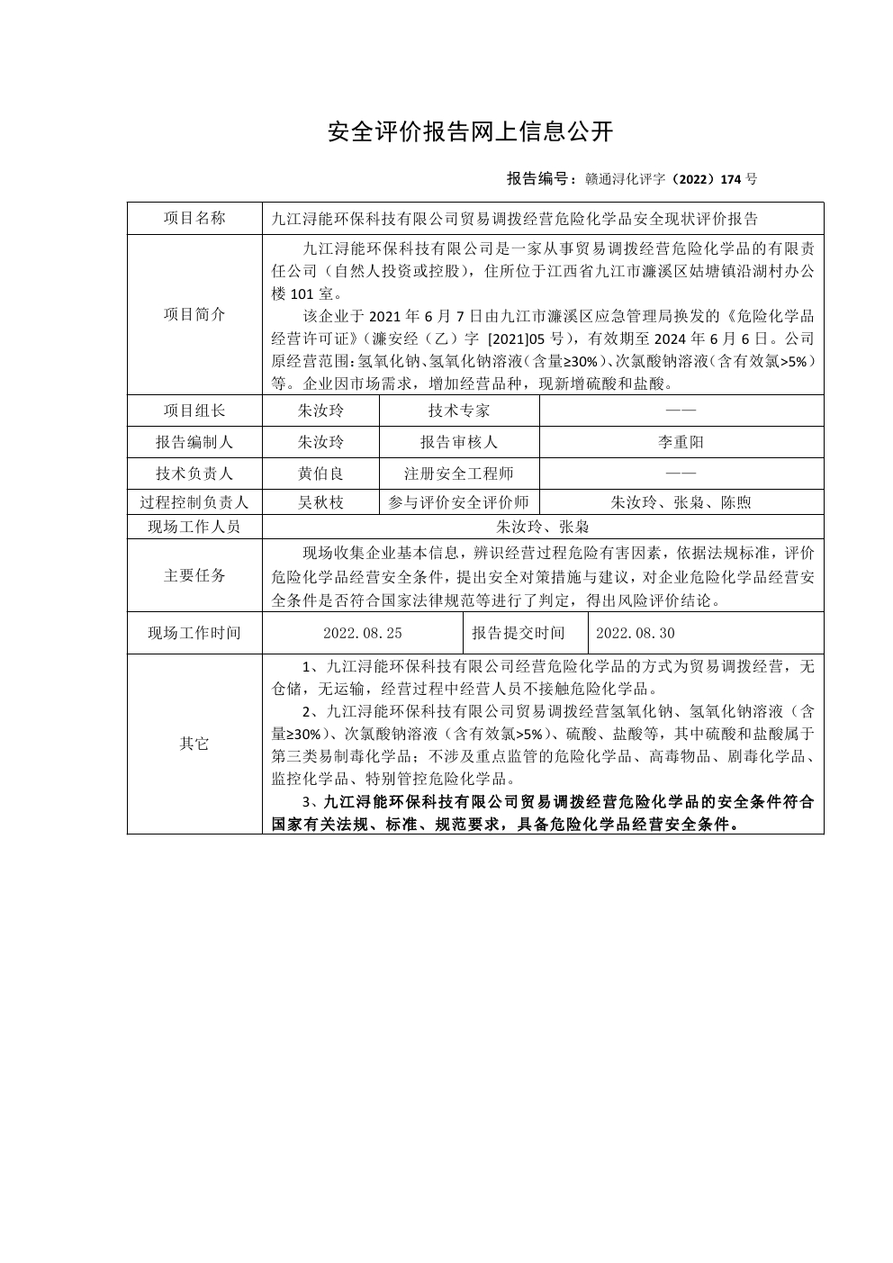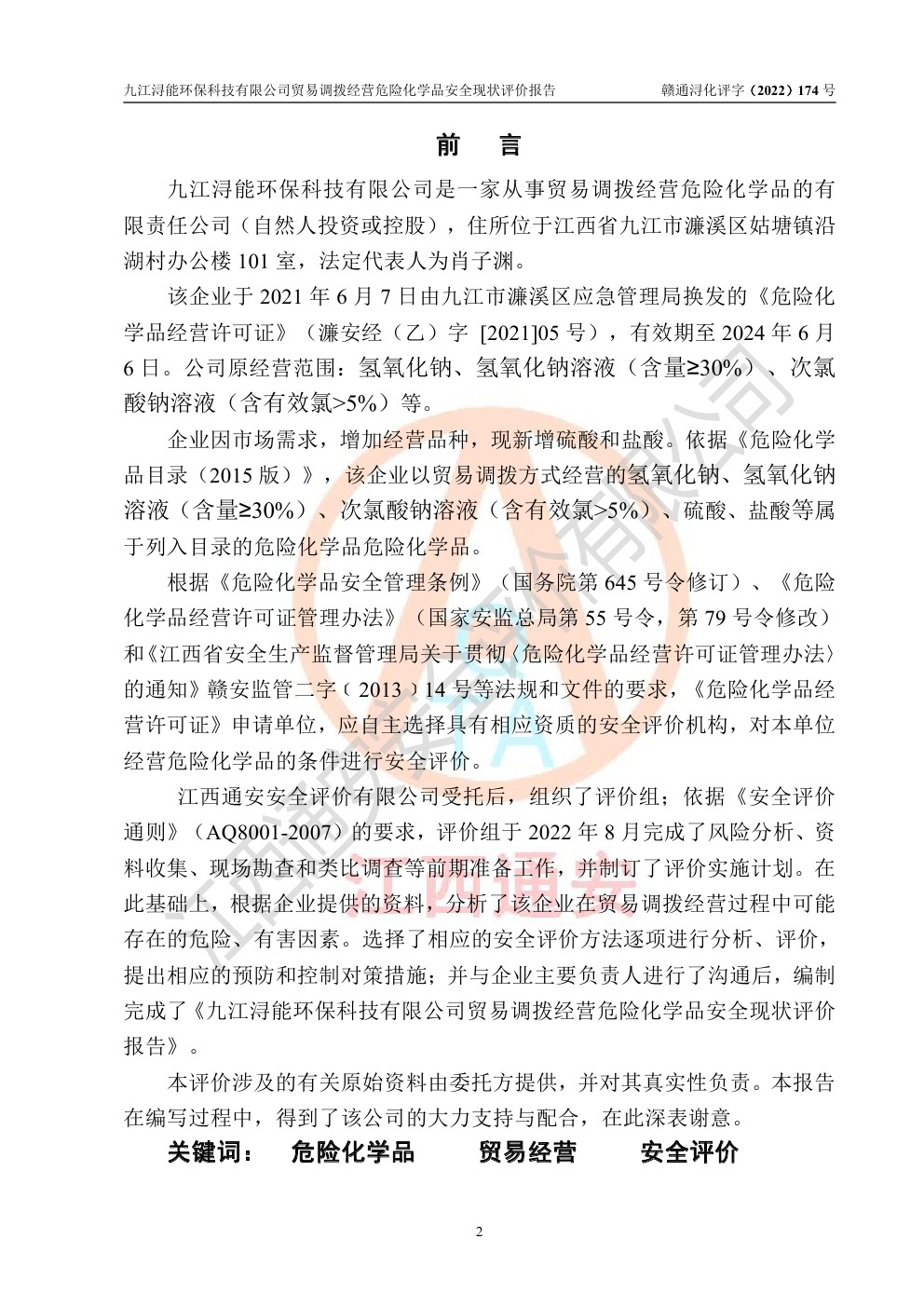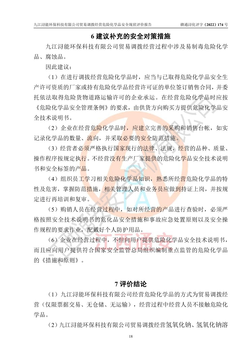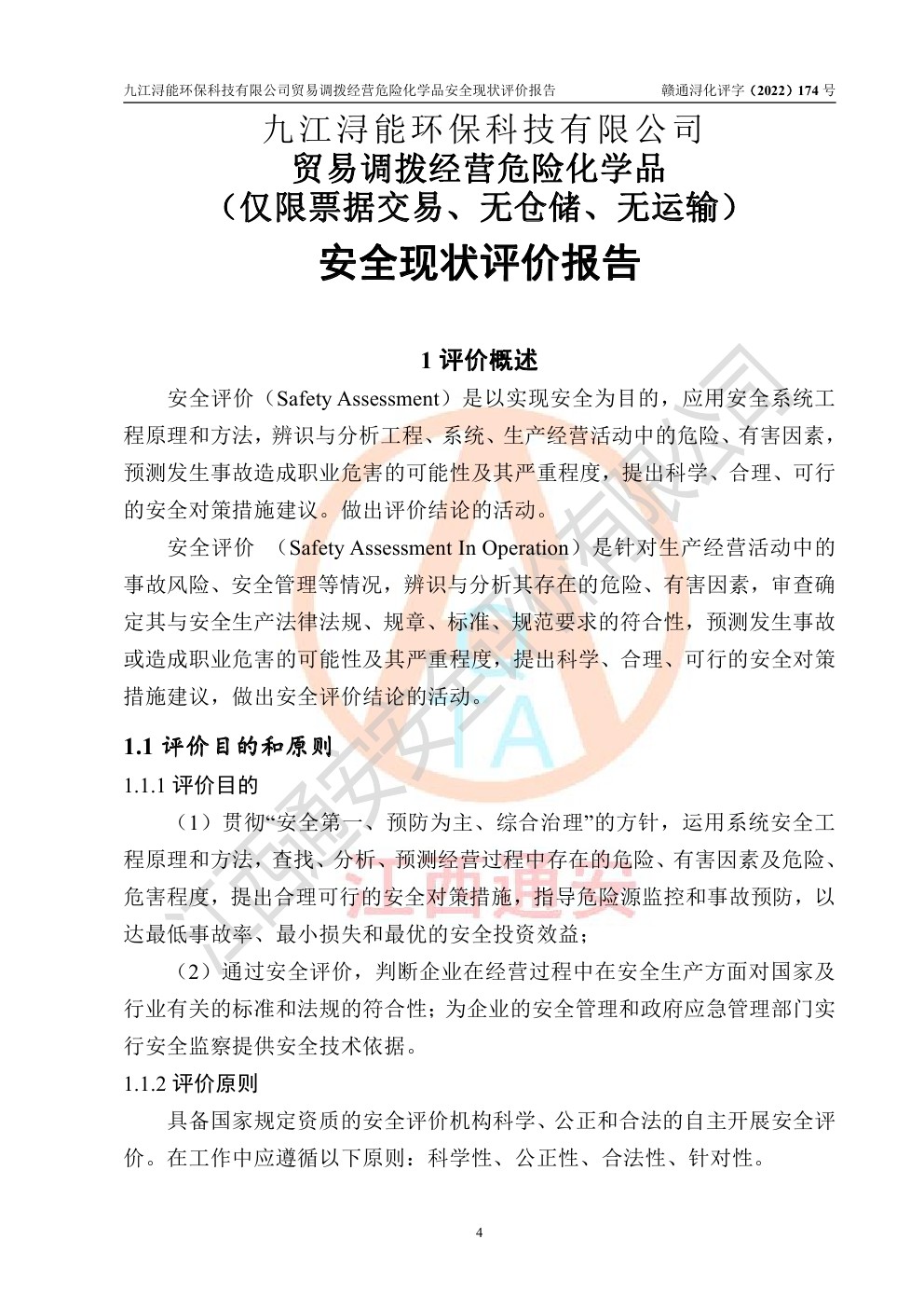 九江浔能**科技有限公司贸易调拨经营危险化学品安全现状评价报告