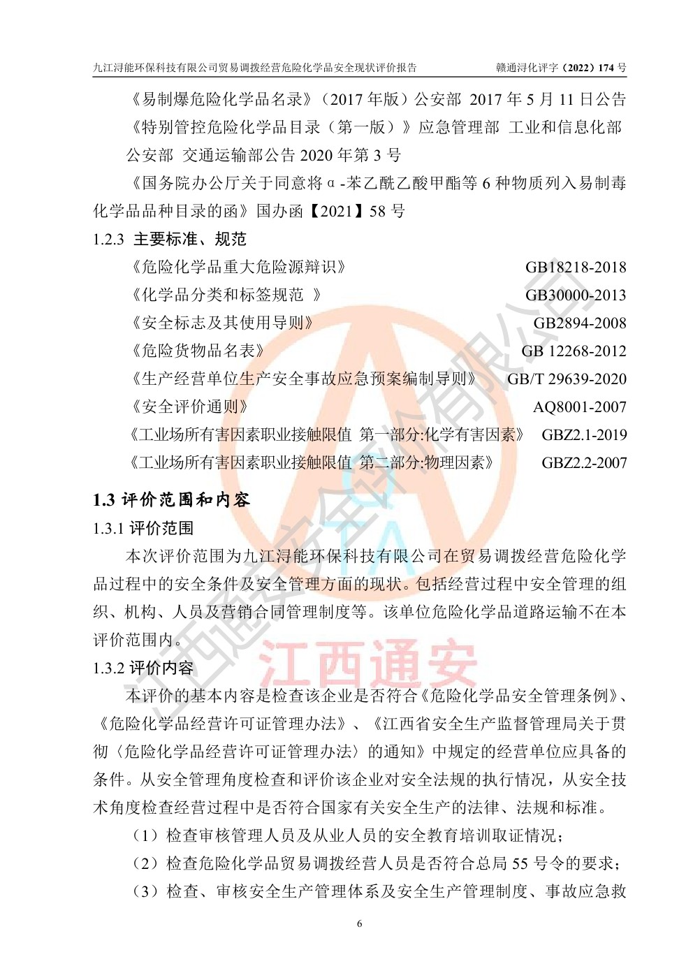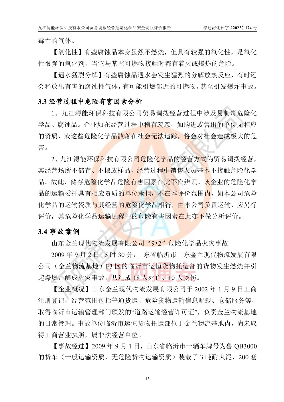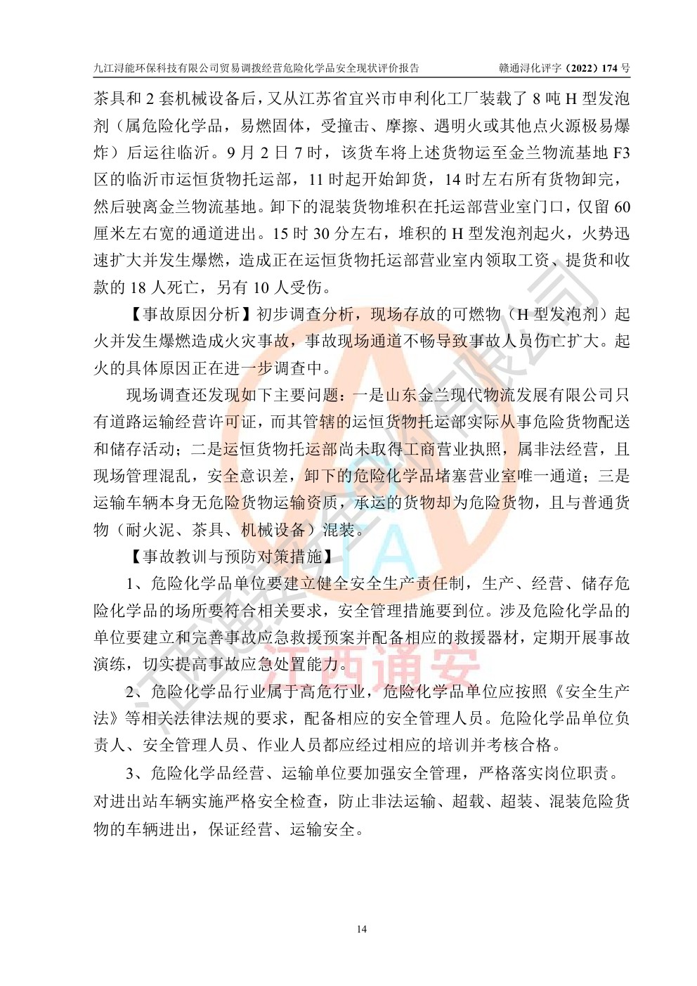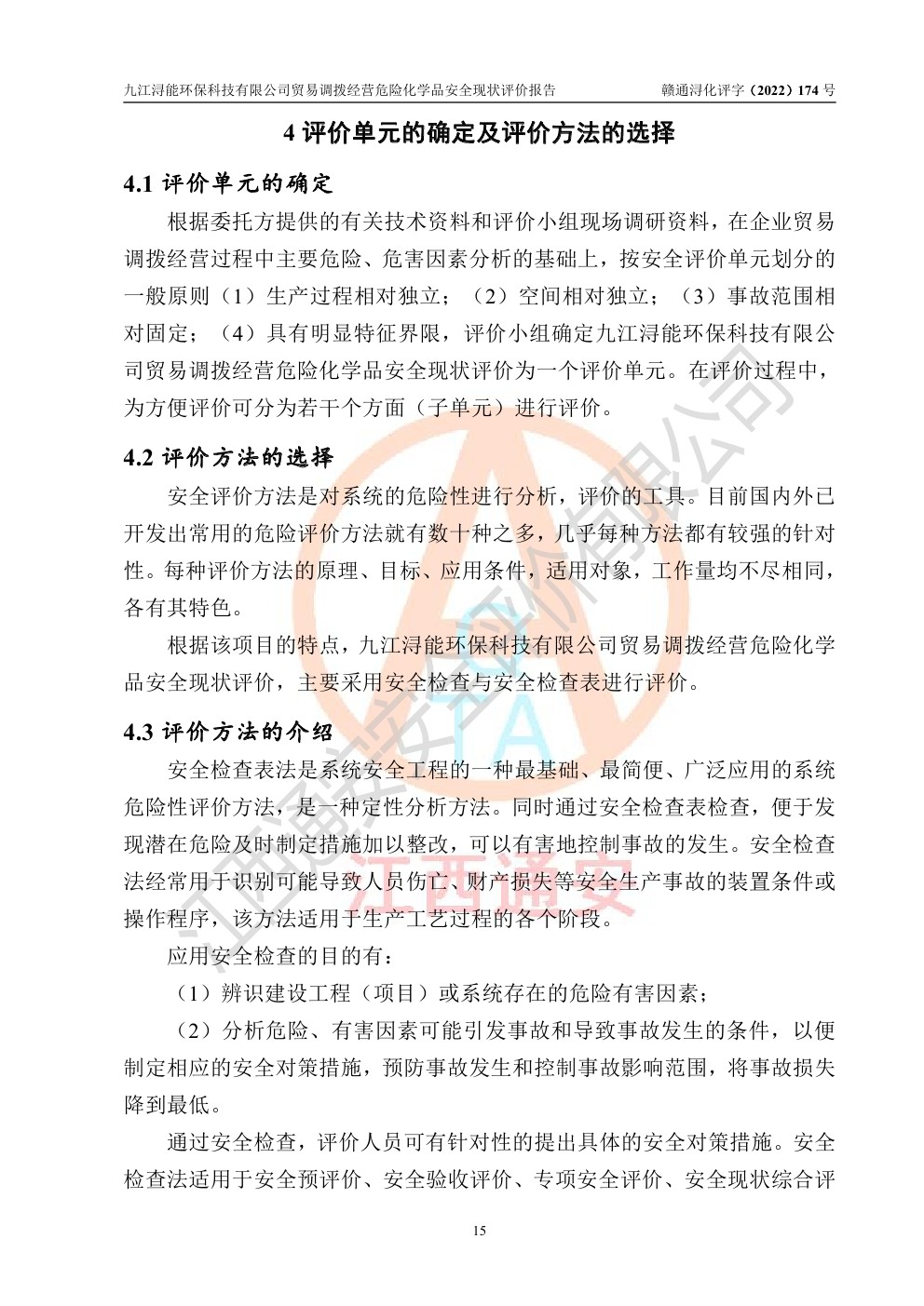 九江浔能**科技有限公司贸易调拨经营危险化学品安全现状评价报告