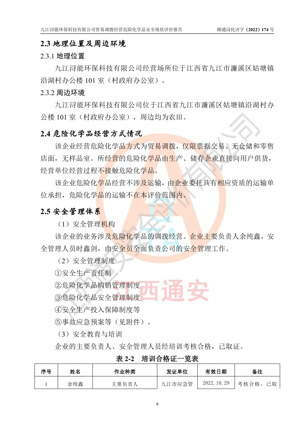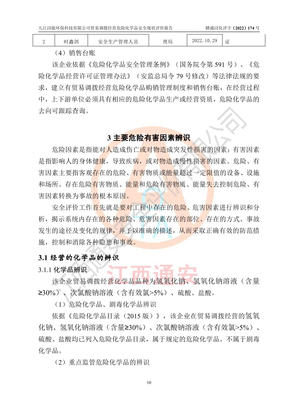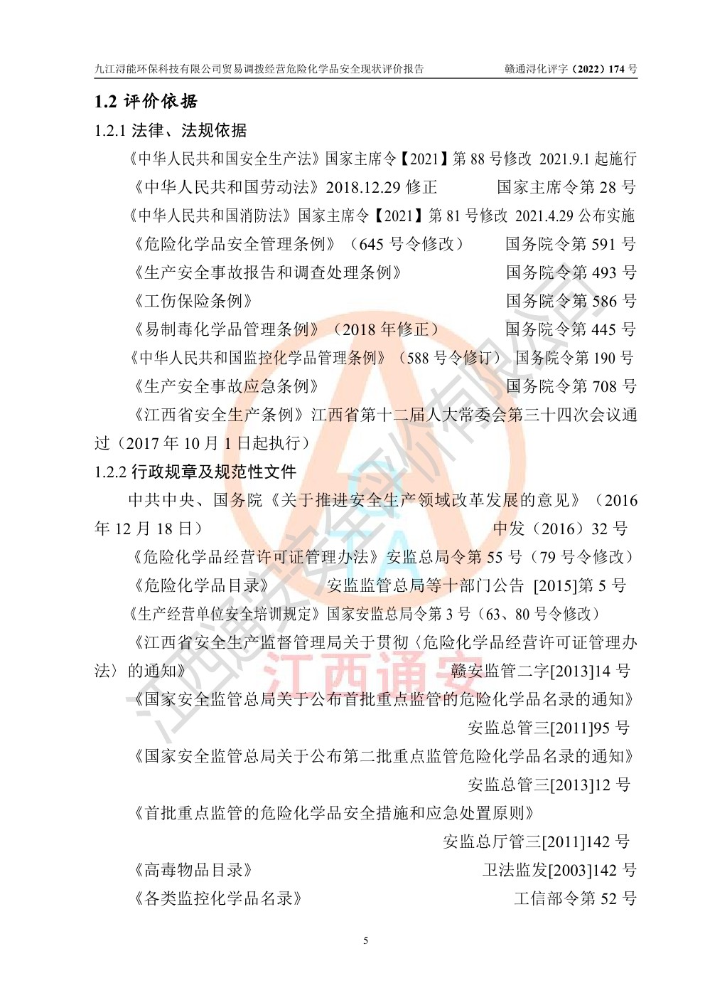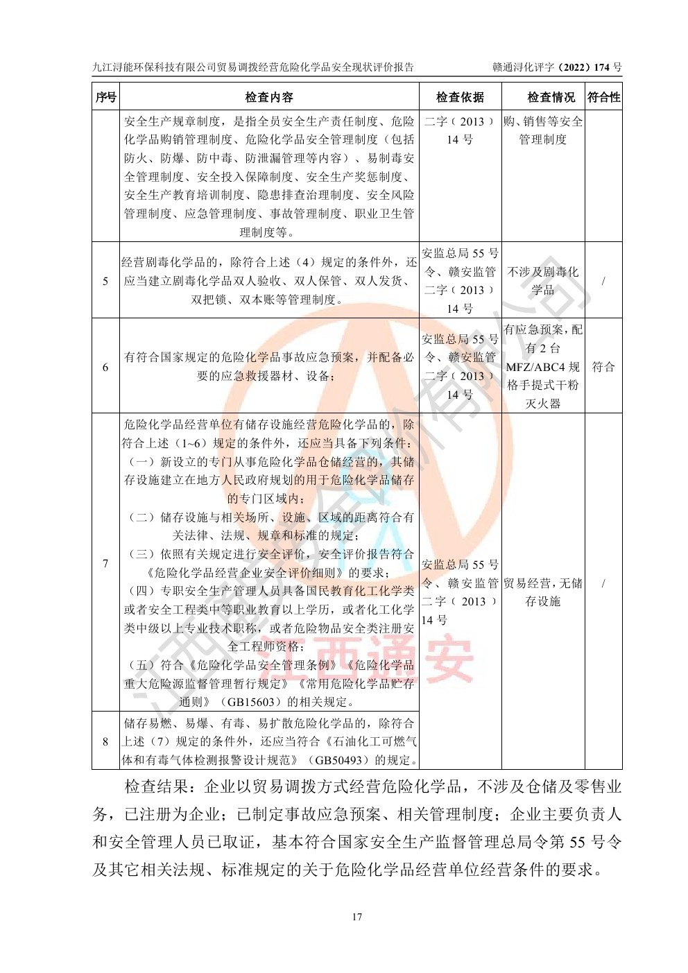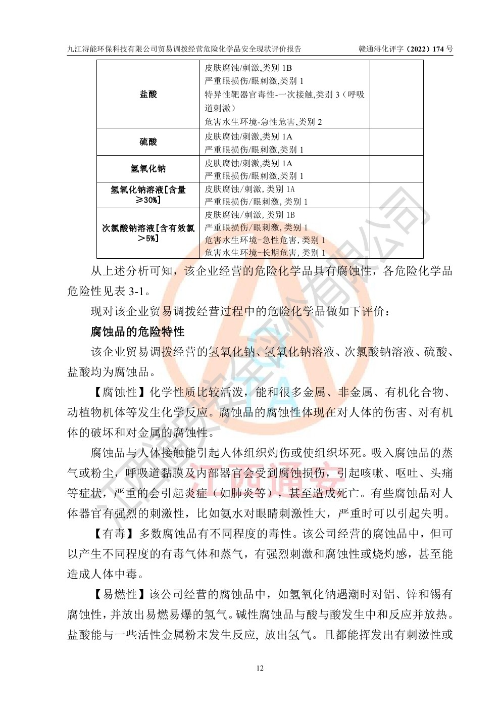 九江浔能**科技有限公司贸易调拨经营危险化学品安全现状评价报告