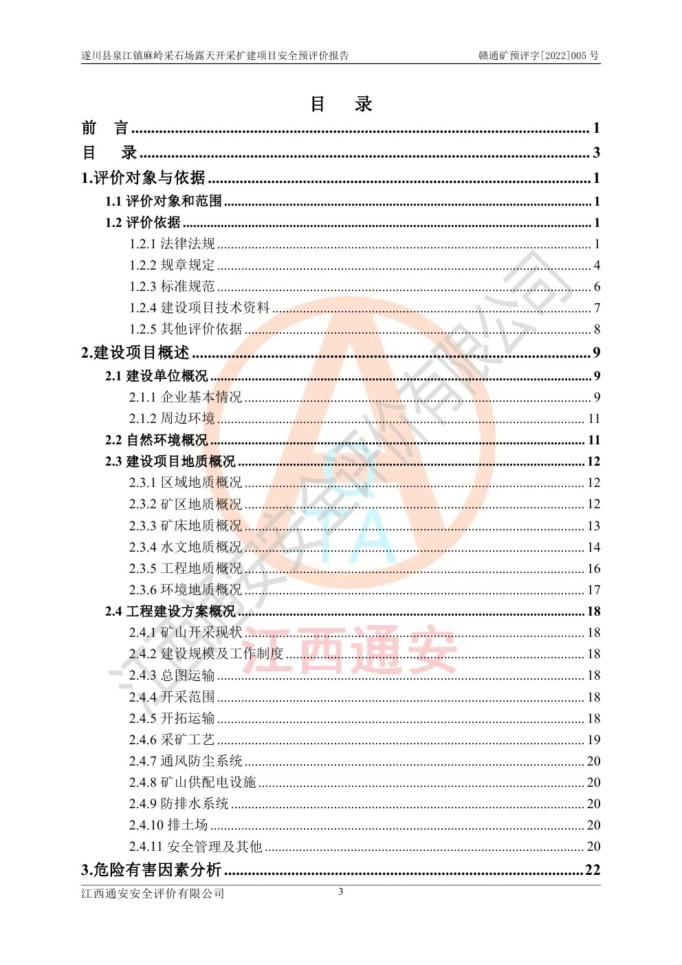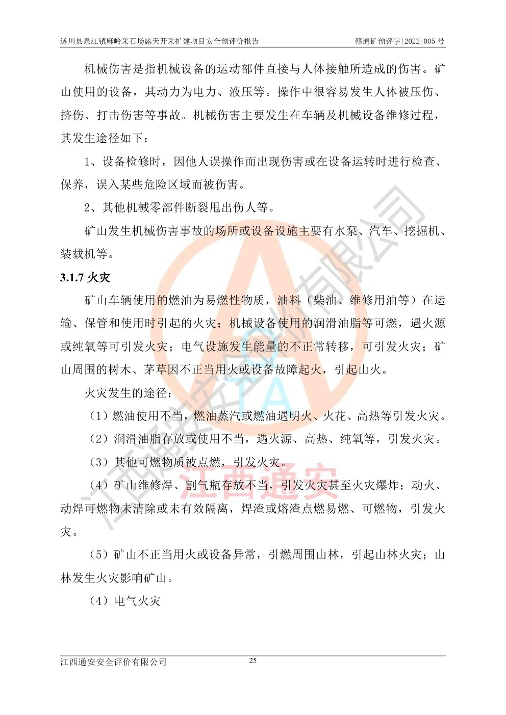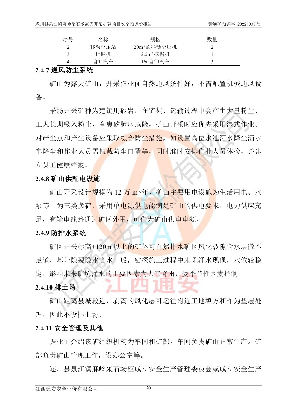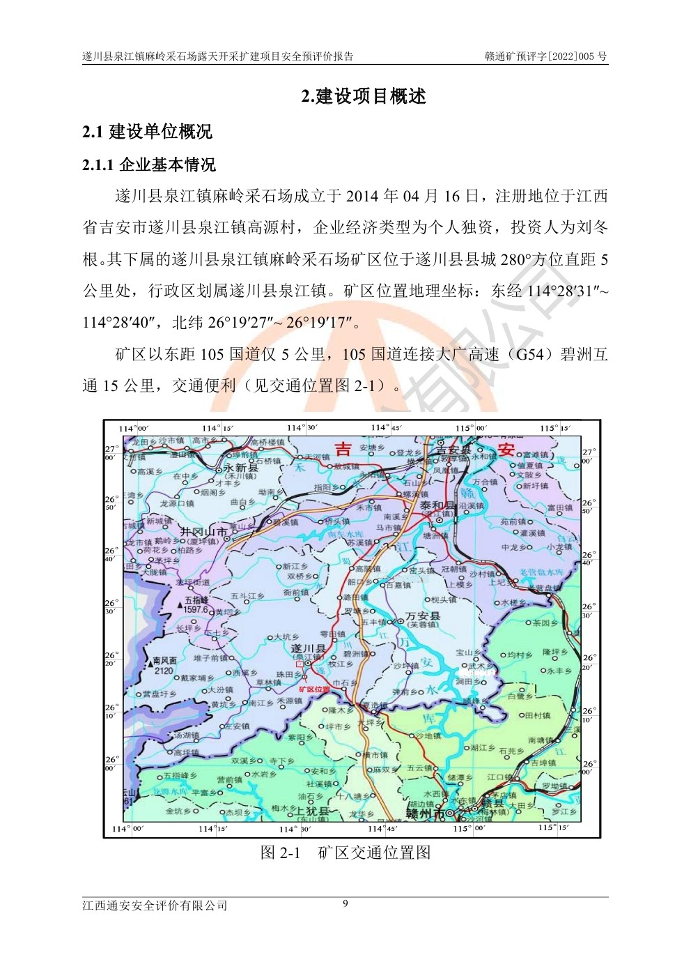 遂川县泉江镇麻岭采石场露天开采扩建项目安全预评价报告