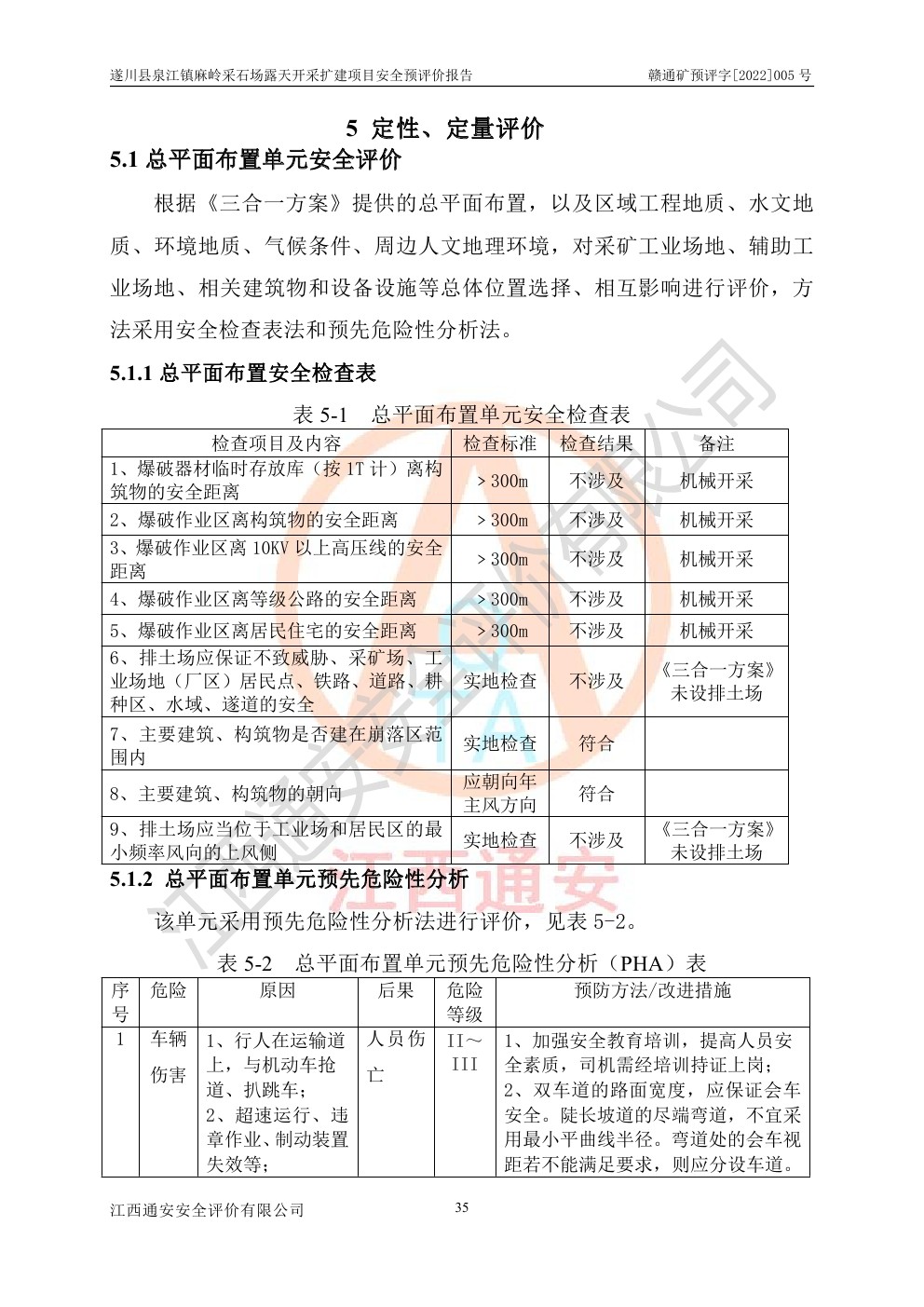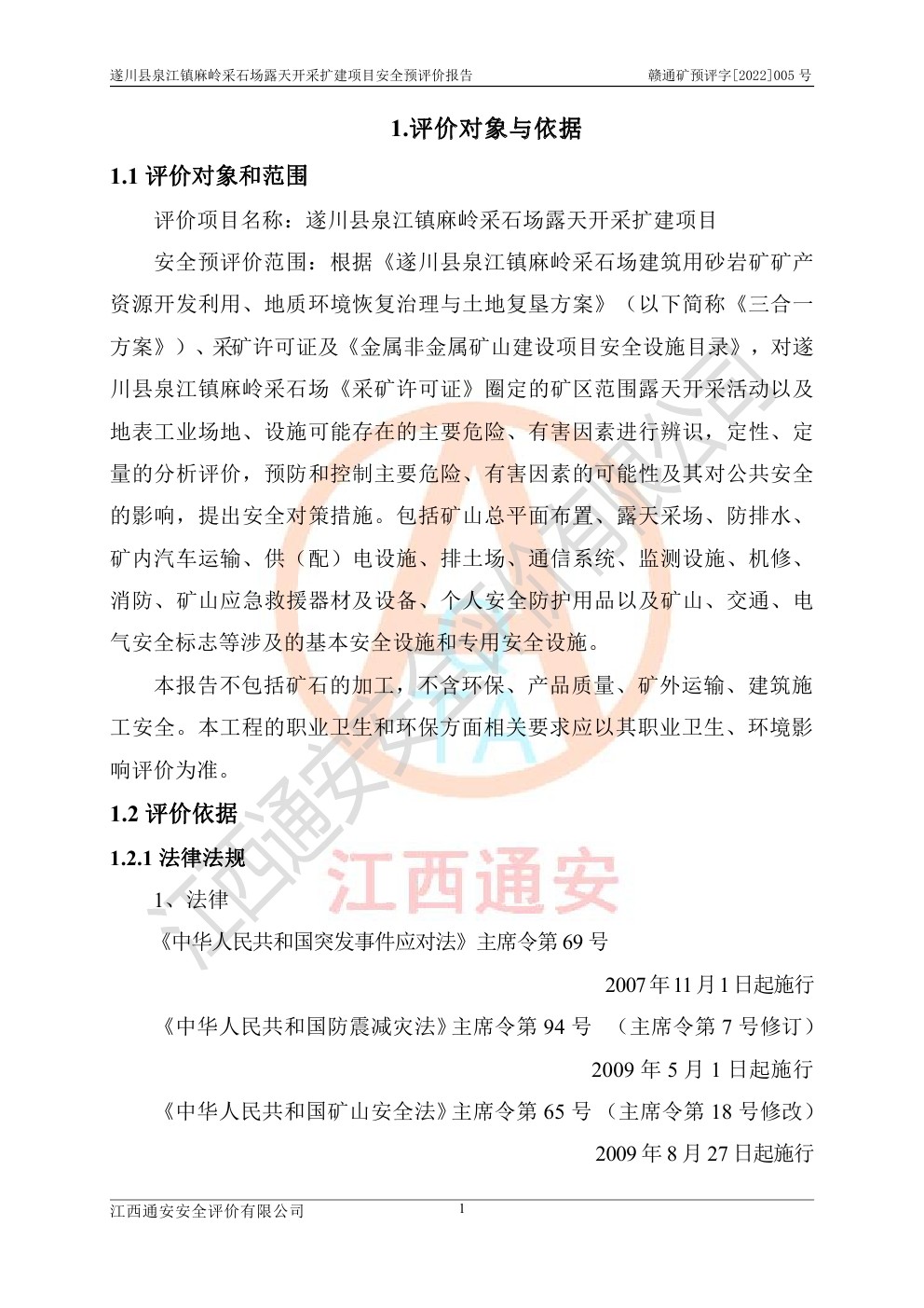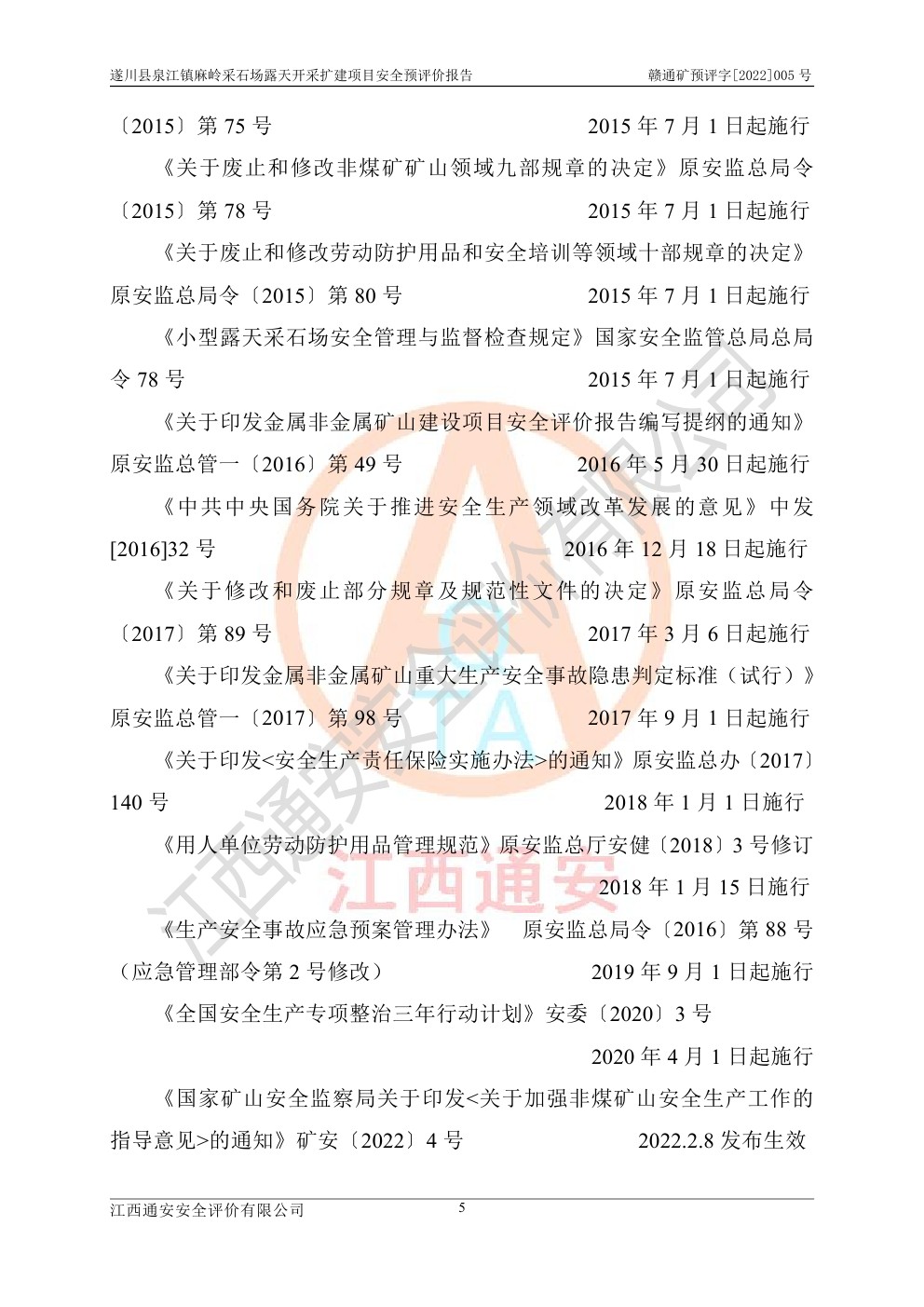遂川县泉江镇麻岭采石场露天开采扩建项目安全预评价报告