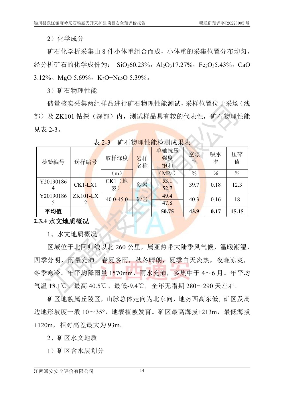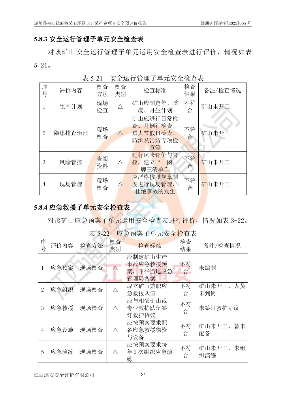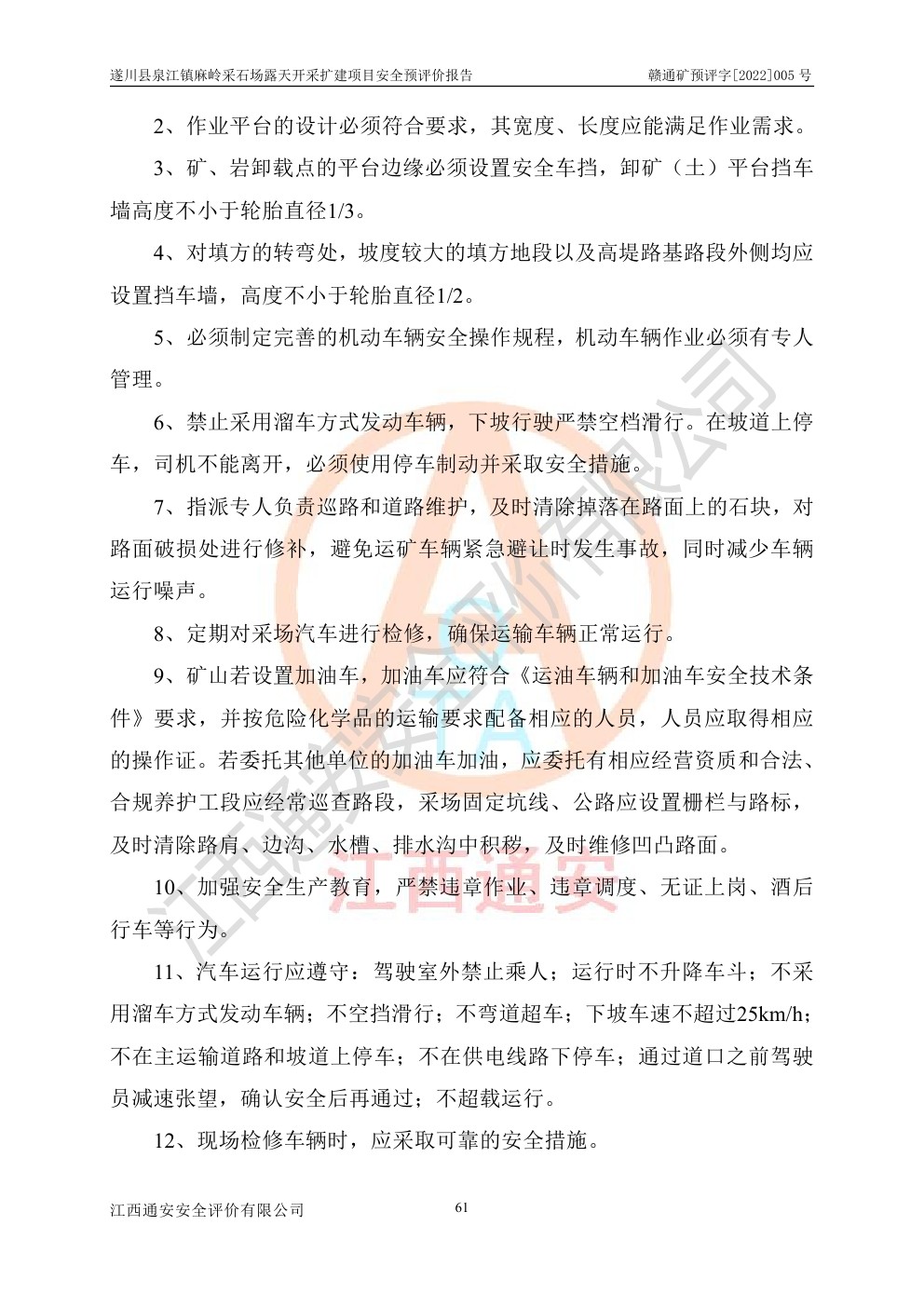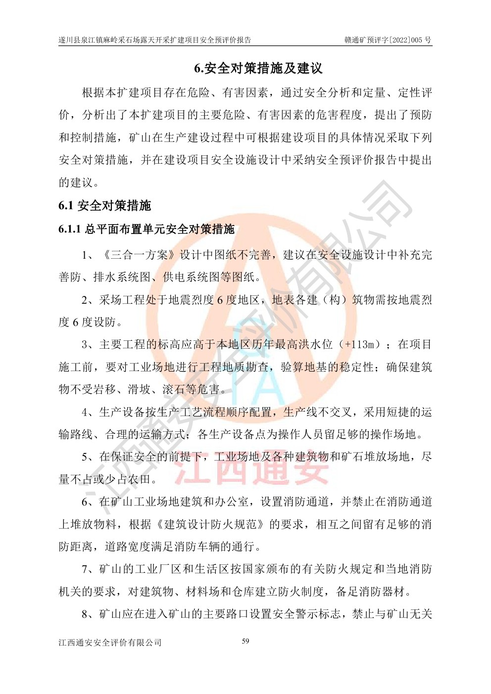 遂川县泉江镇麻岭采石场露天开采扩建项目安全预评价报告