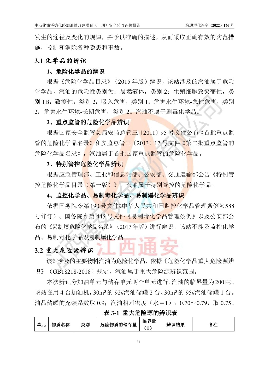 中国石化销售股份有限公司江西九江濂溪石油分公司德化路加油站改建项目(一期)安全验收评价报告