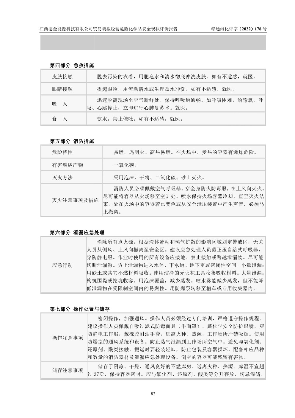 江西德金能源科技有限公司贸易调拨经营危险化学品安全现状评价报告
