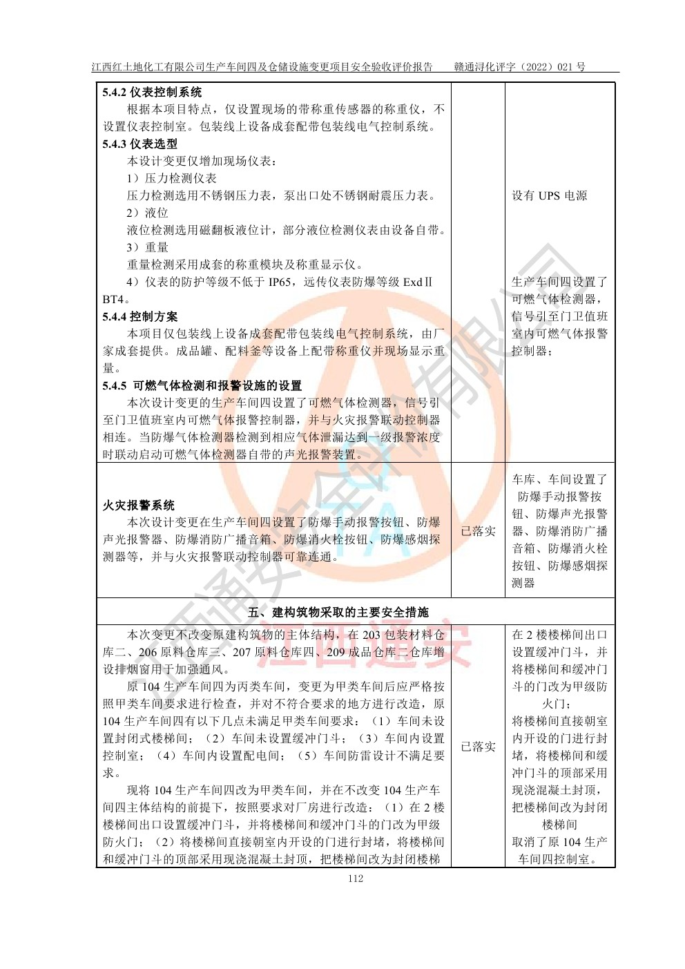 江西红土地化工有限公司生产车间四及仓储设施变更项目安全验收评价报告