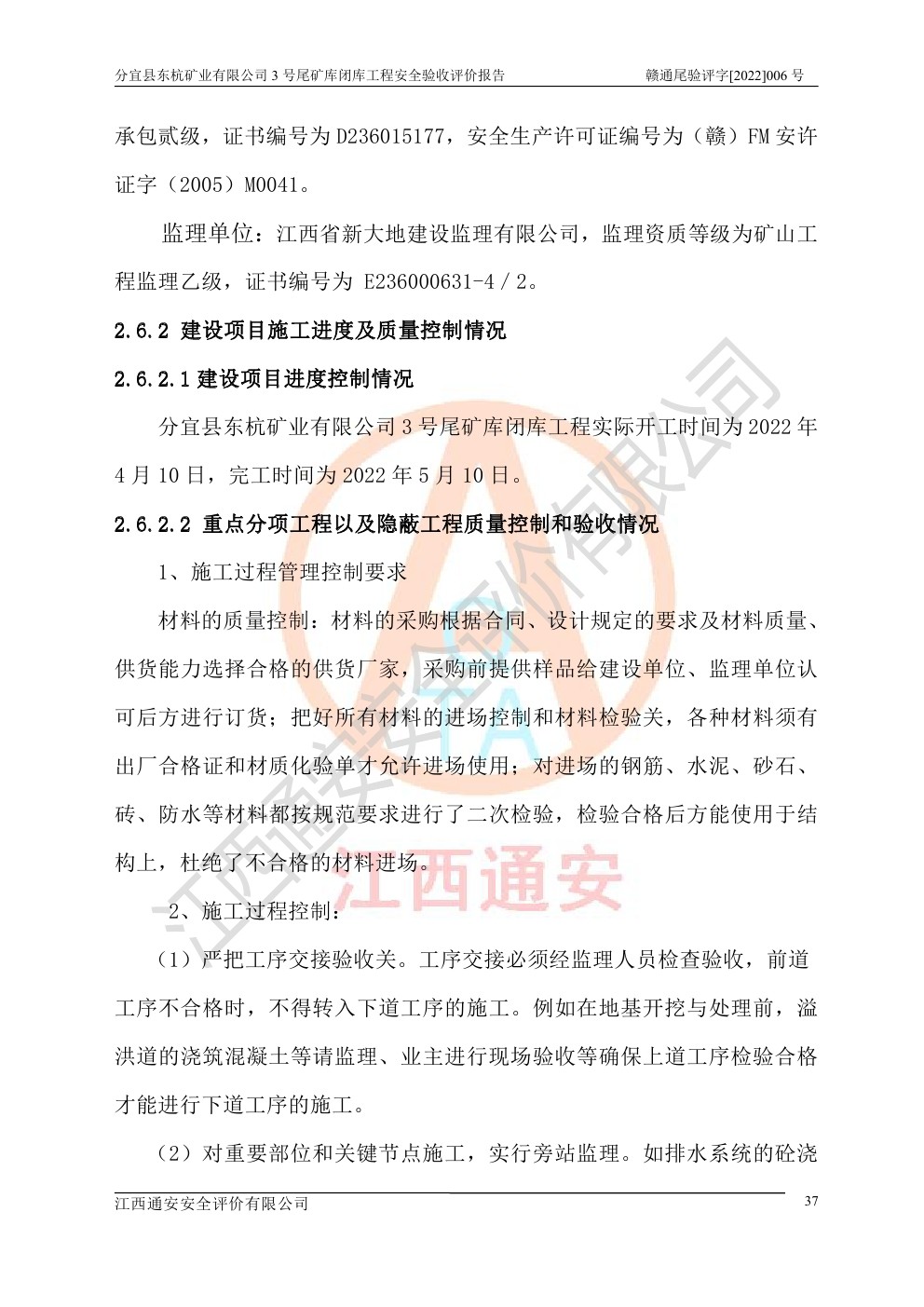 分宜县东杭矿业有限公司3号尾矿库闭库工程安全验收评价报告