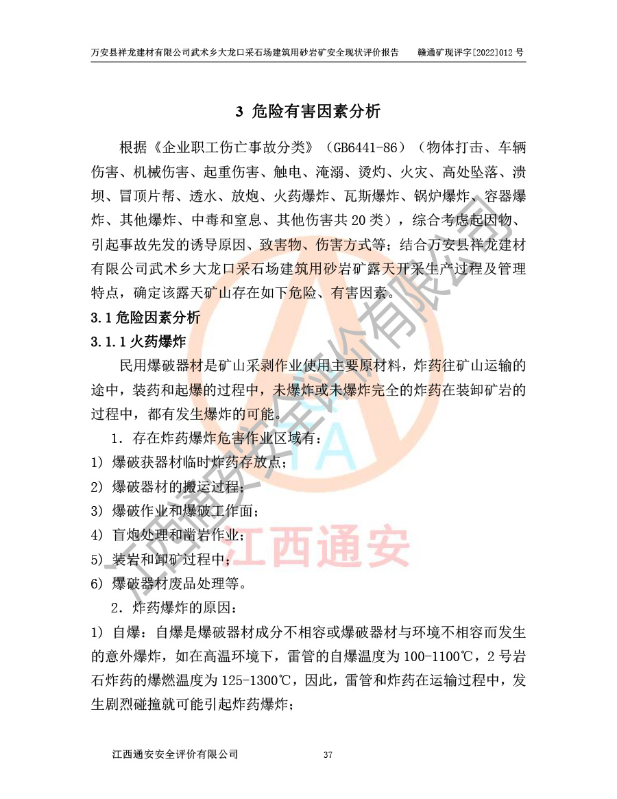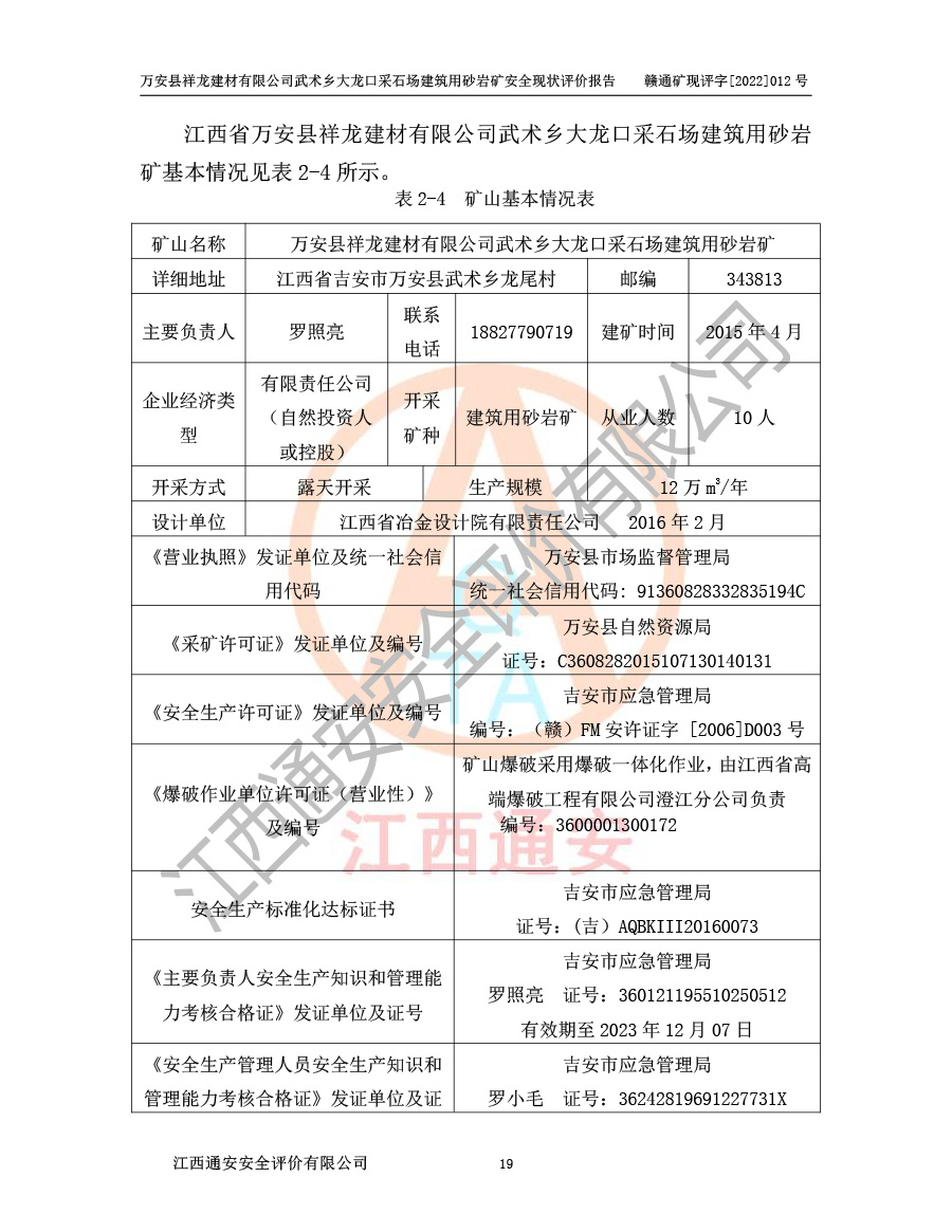 万安县武术乡大龙口采石场安全现状评价报告公示